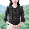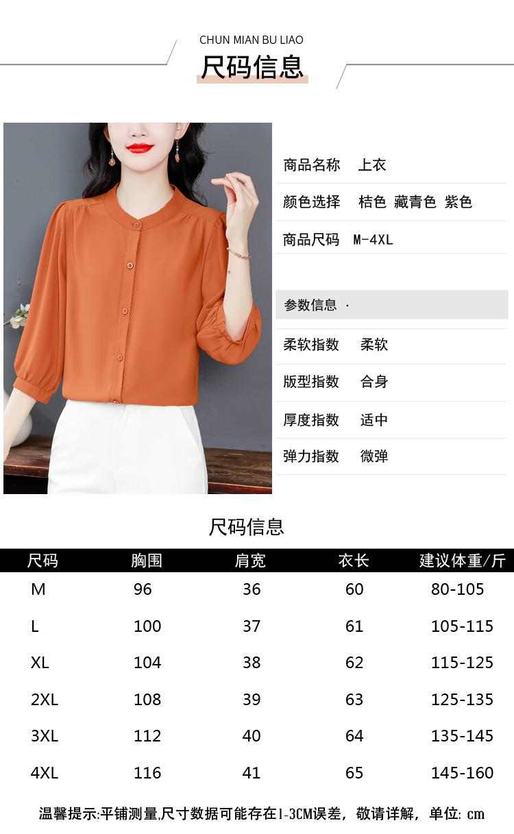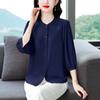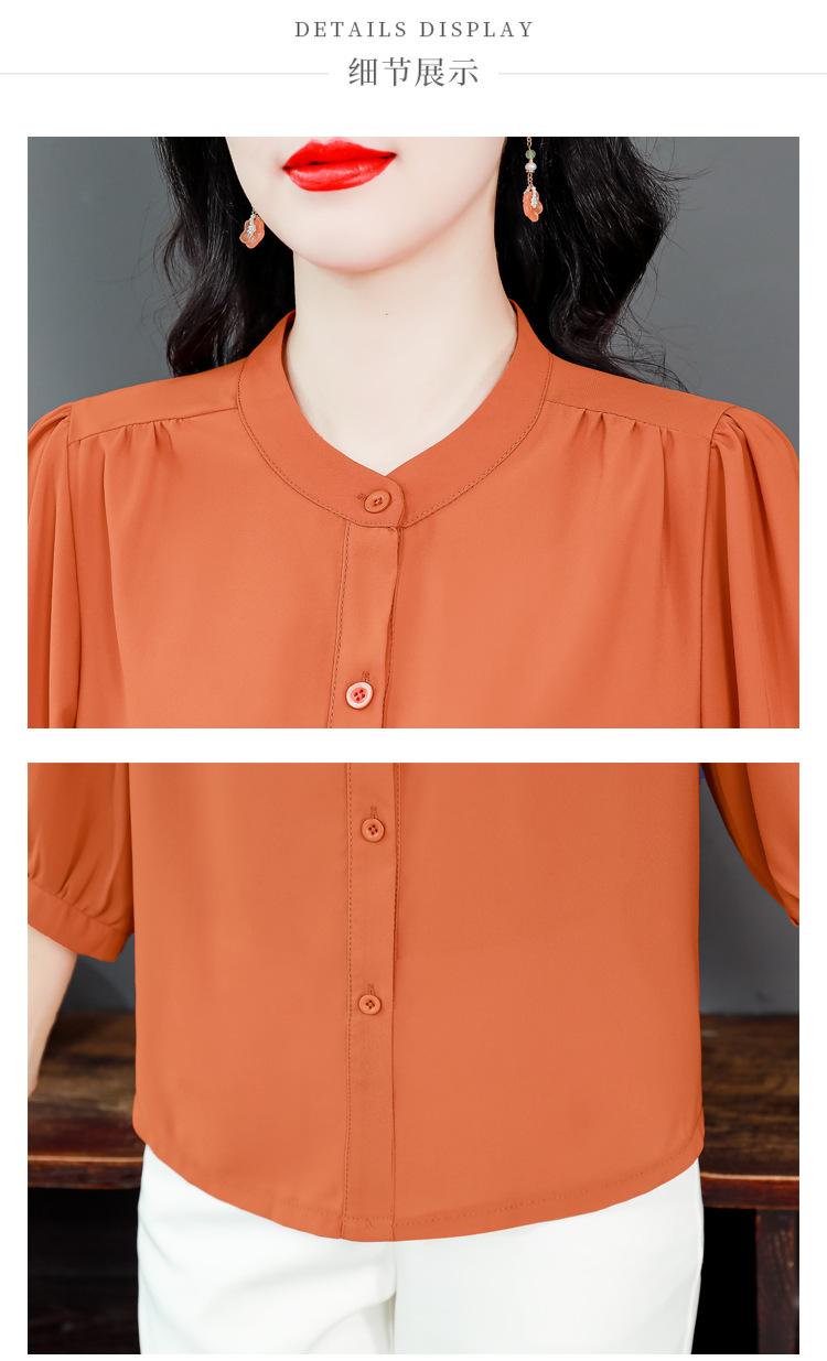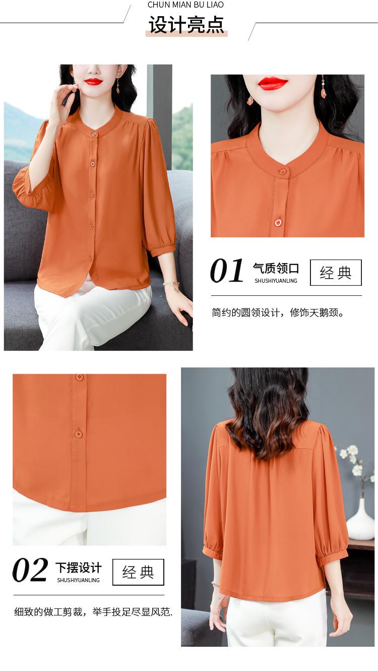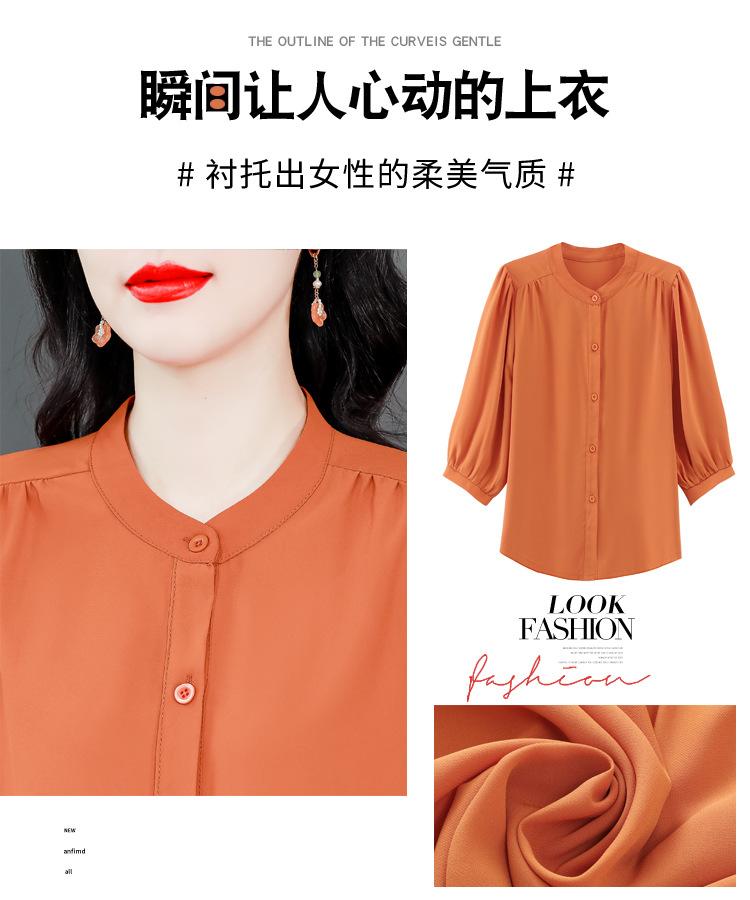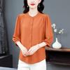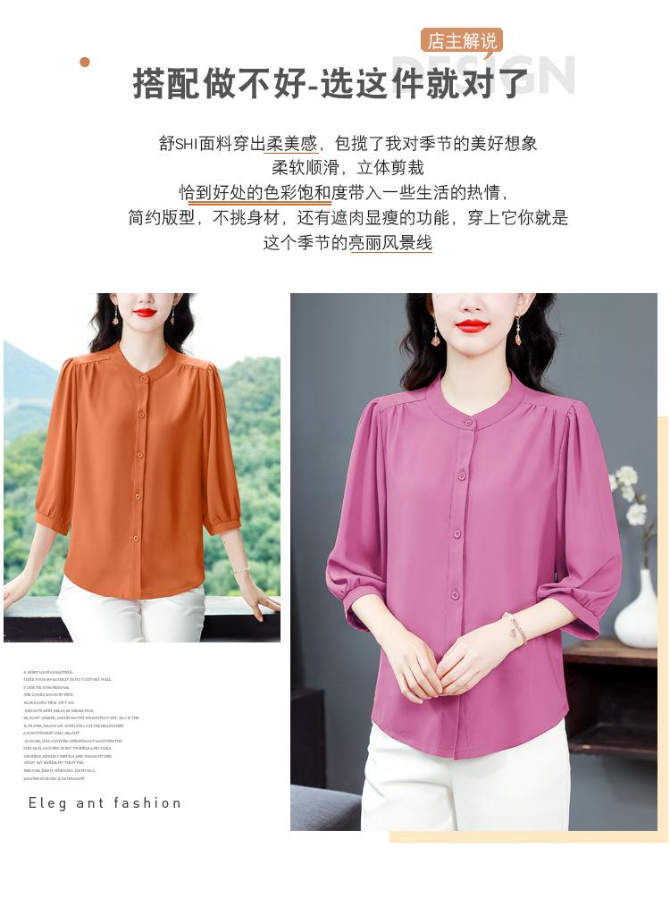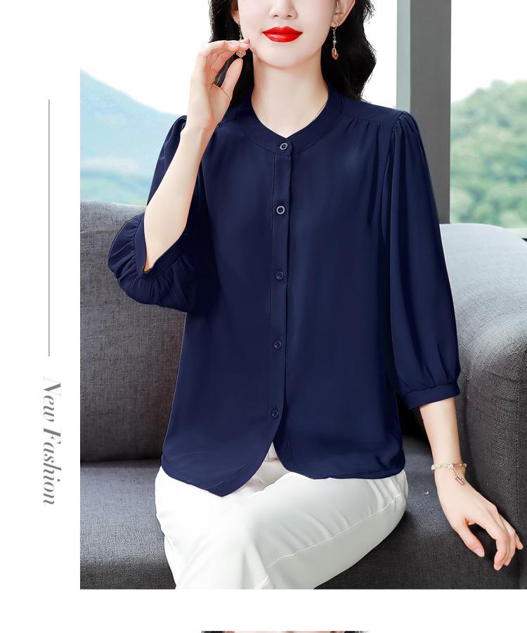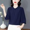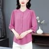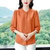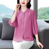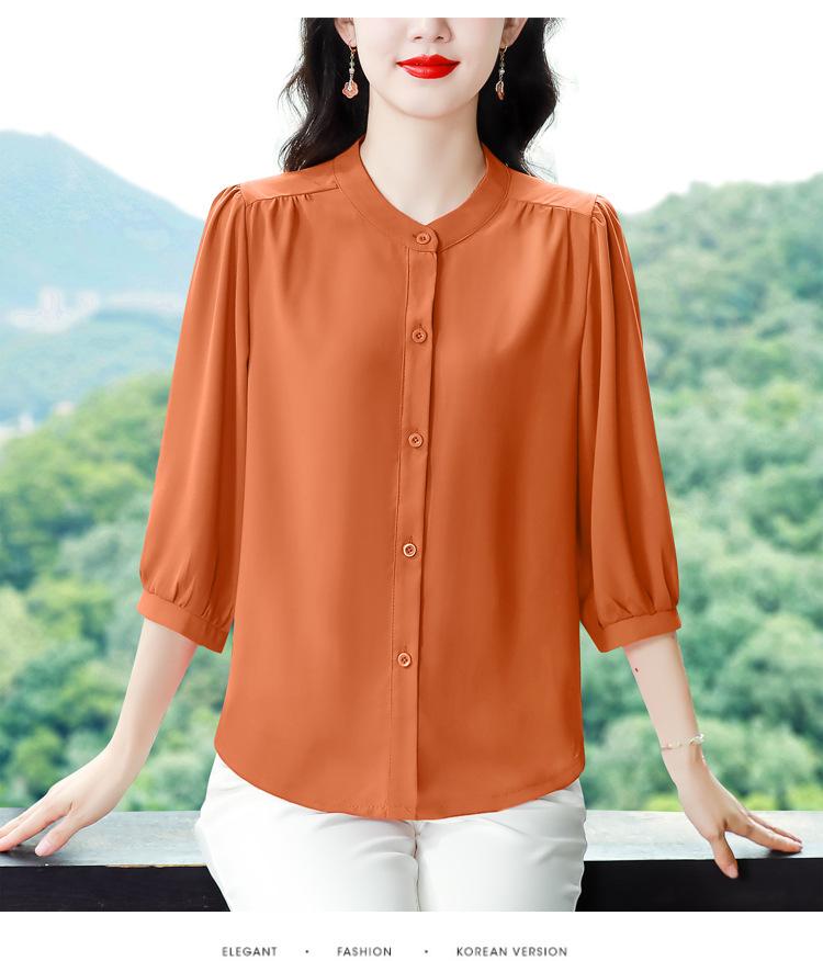 Camisa de Chifón de Manga Tres Cuartos con Cuello Mao para Mujer Verano 2024 Nuevo Diseño Versátil de Top de Media Manga Camisa Estilo Occidental