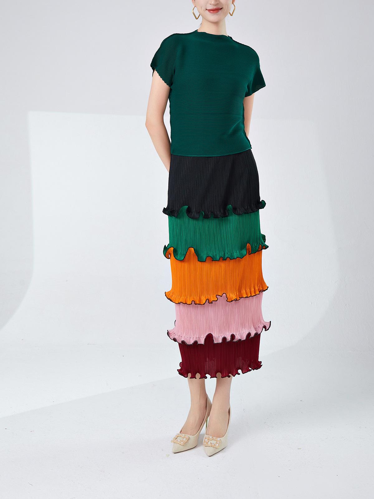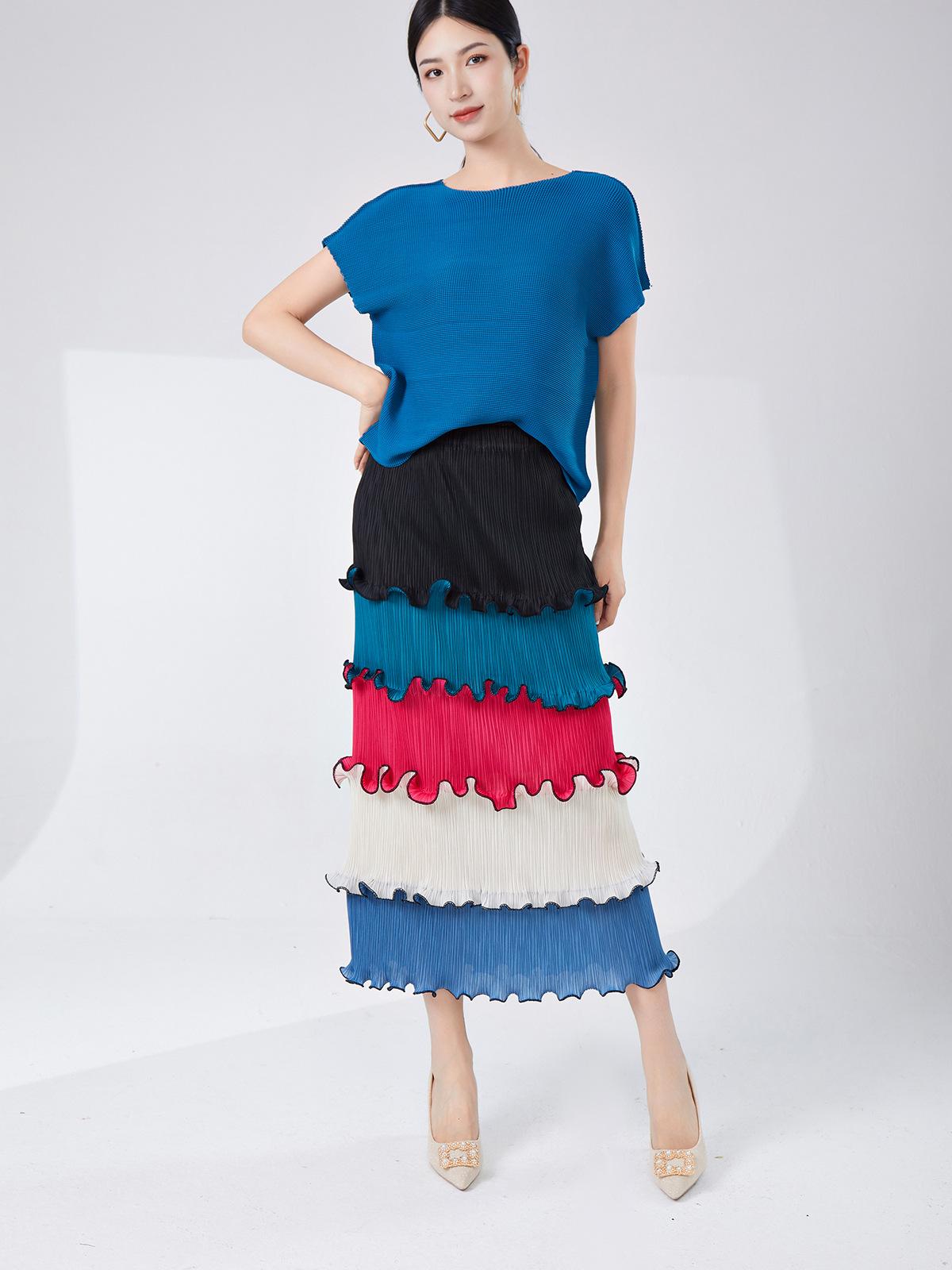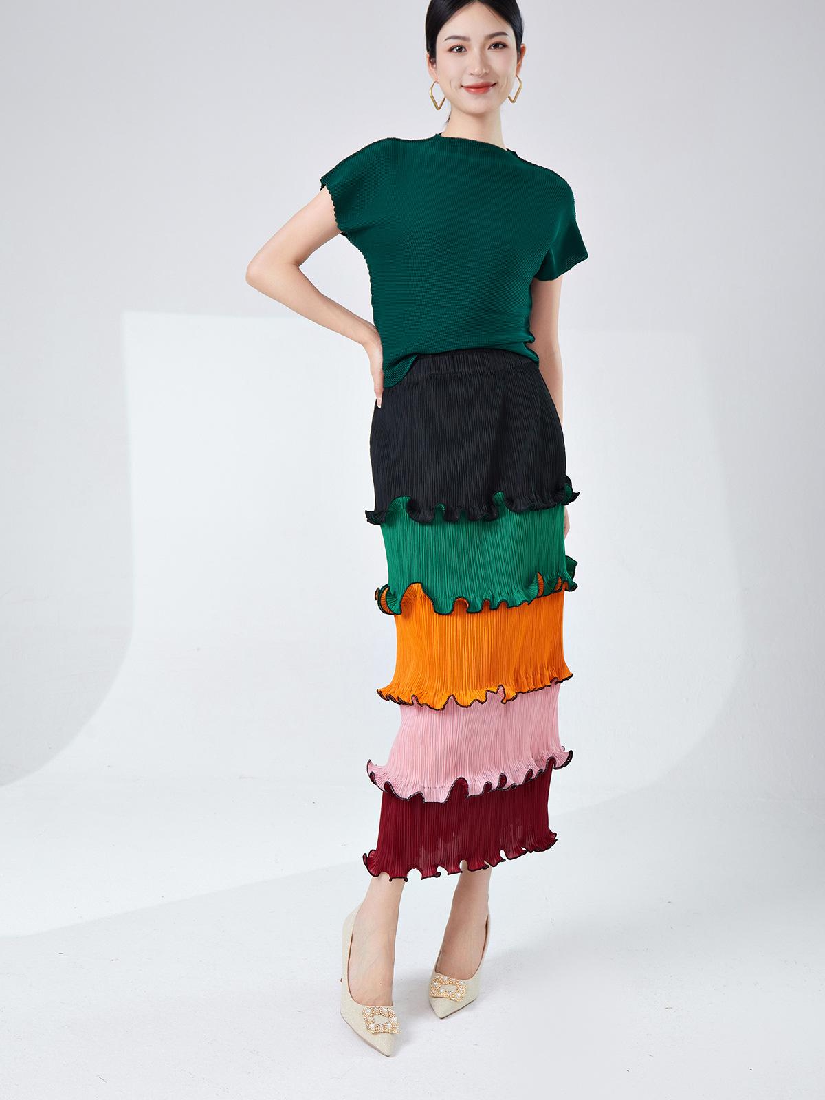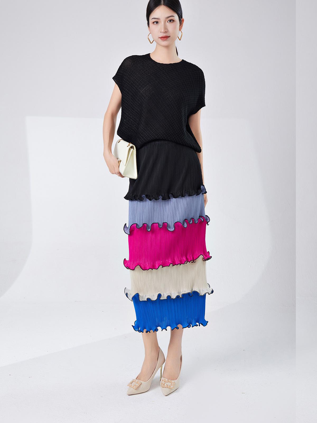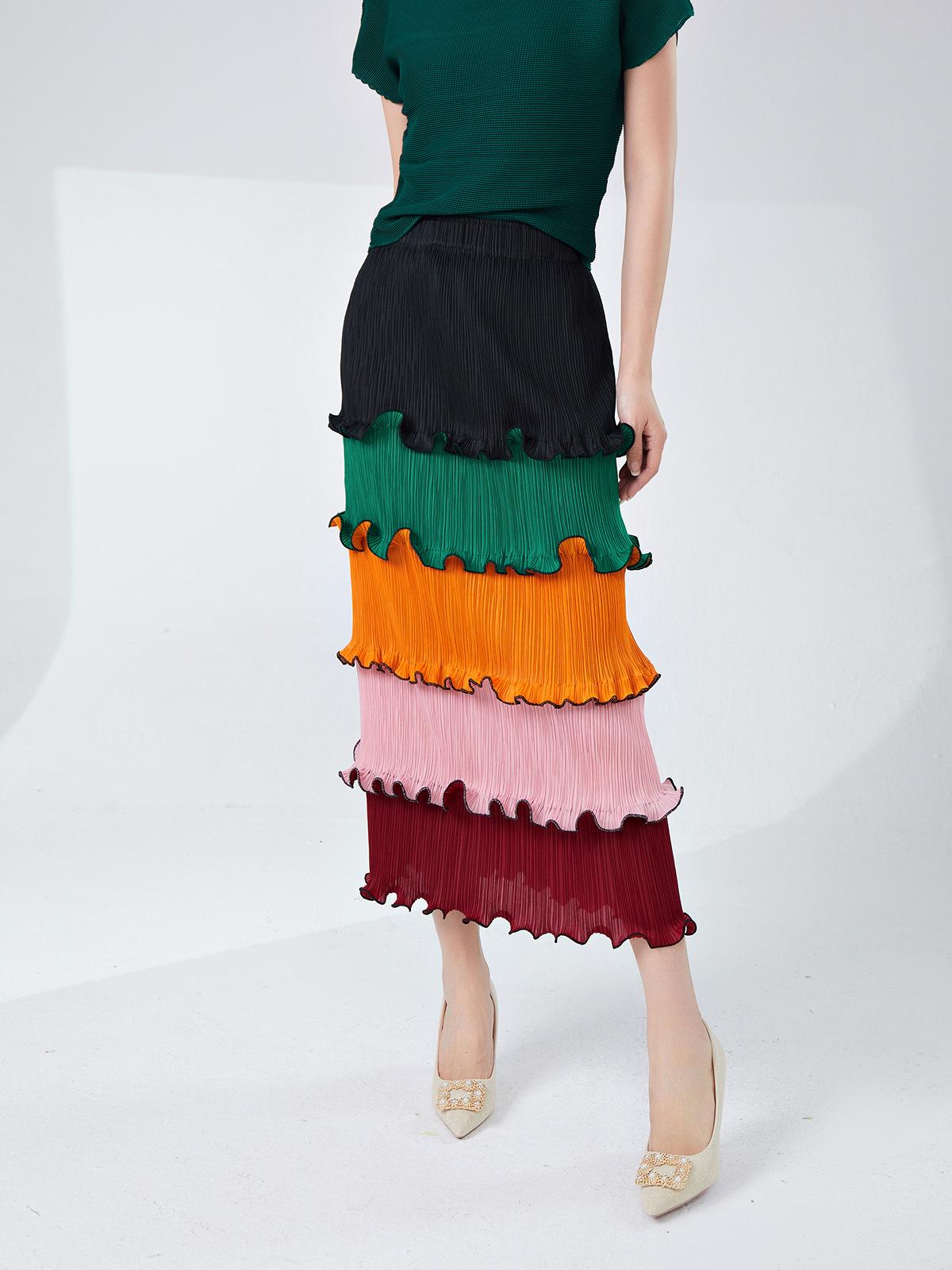 Falda plisada Media longitud Diseño de verano de alta gama Nicho Sin orejas Contraste Falda de pastel Moderna Combinable Falda de cadera
