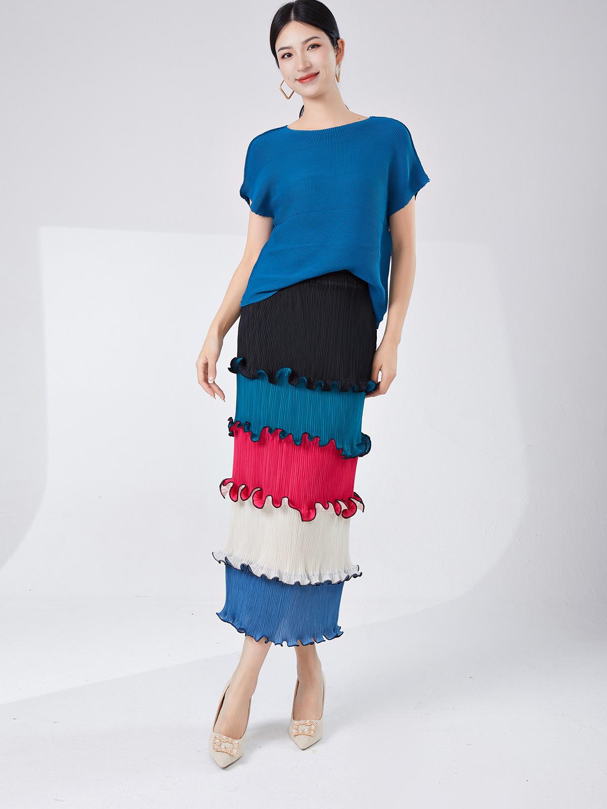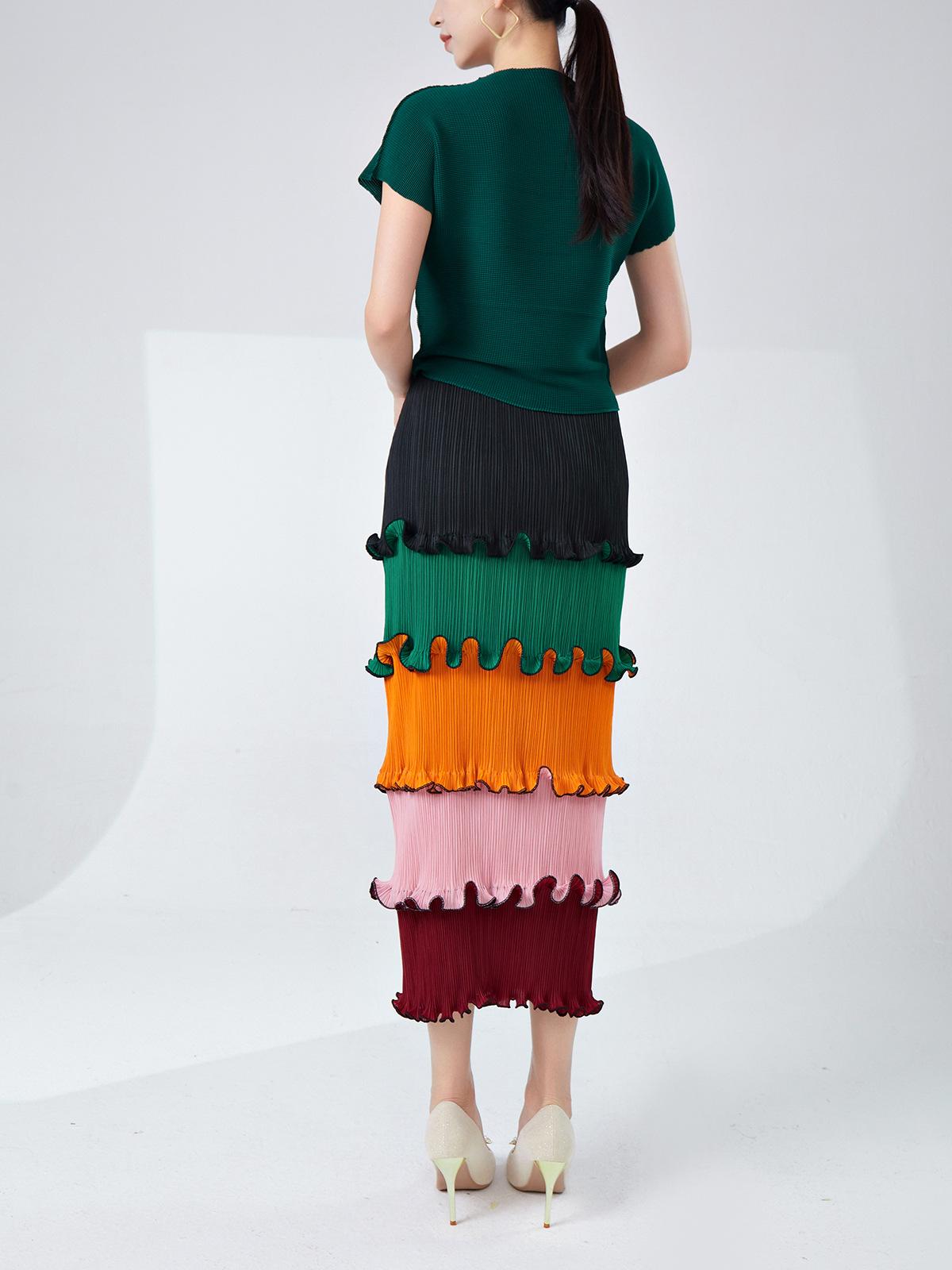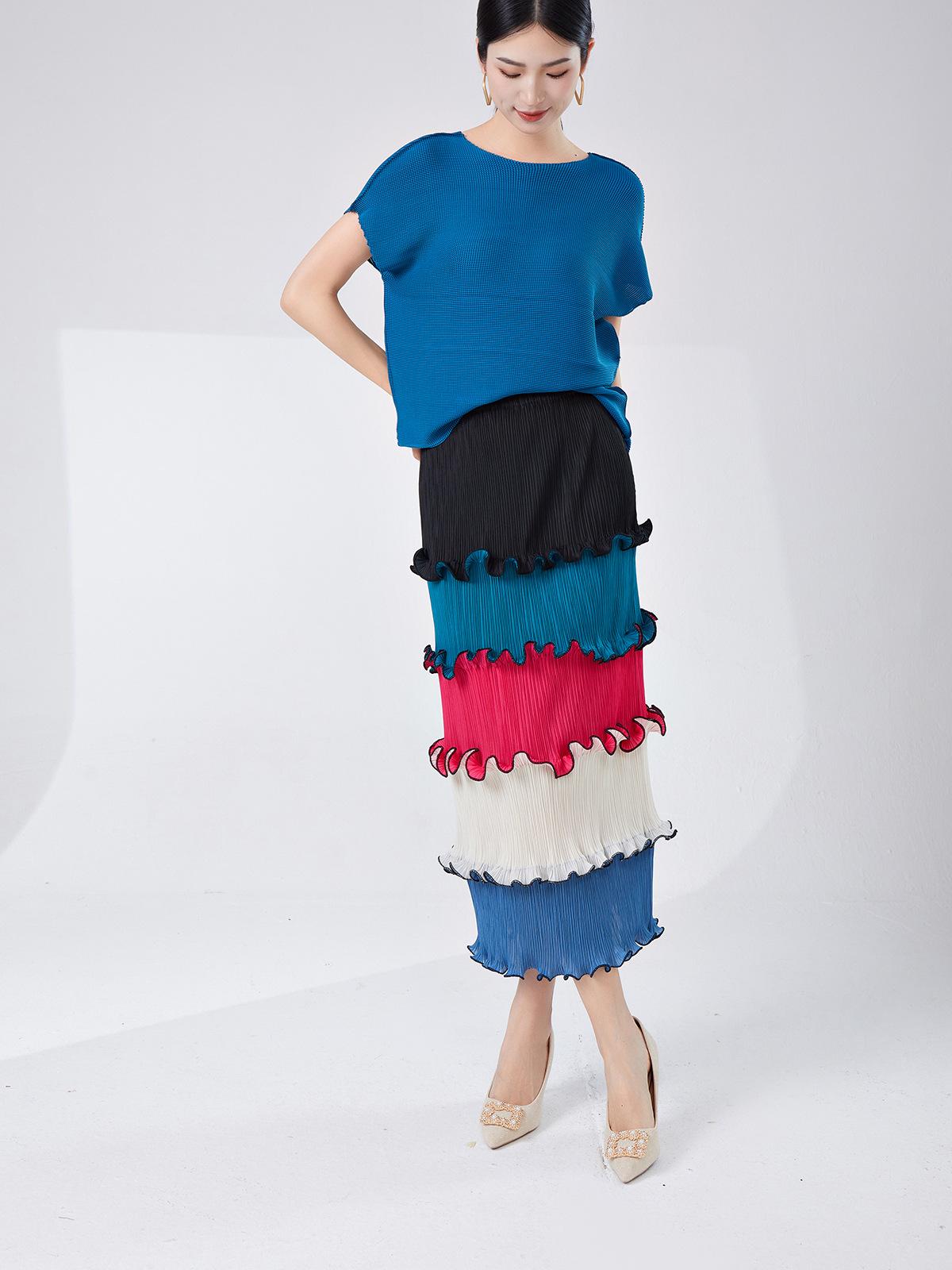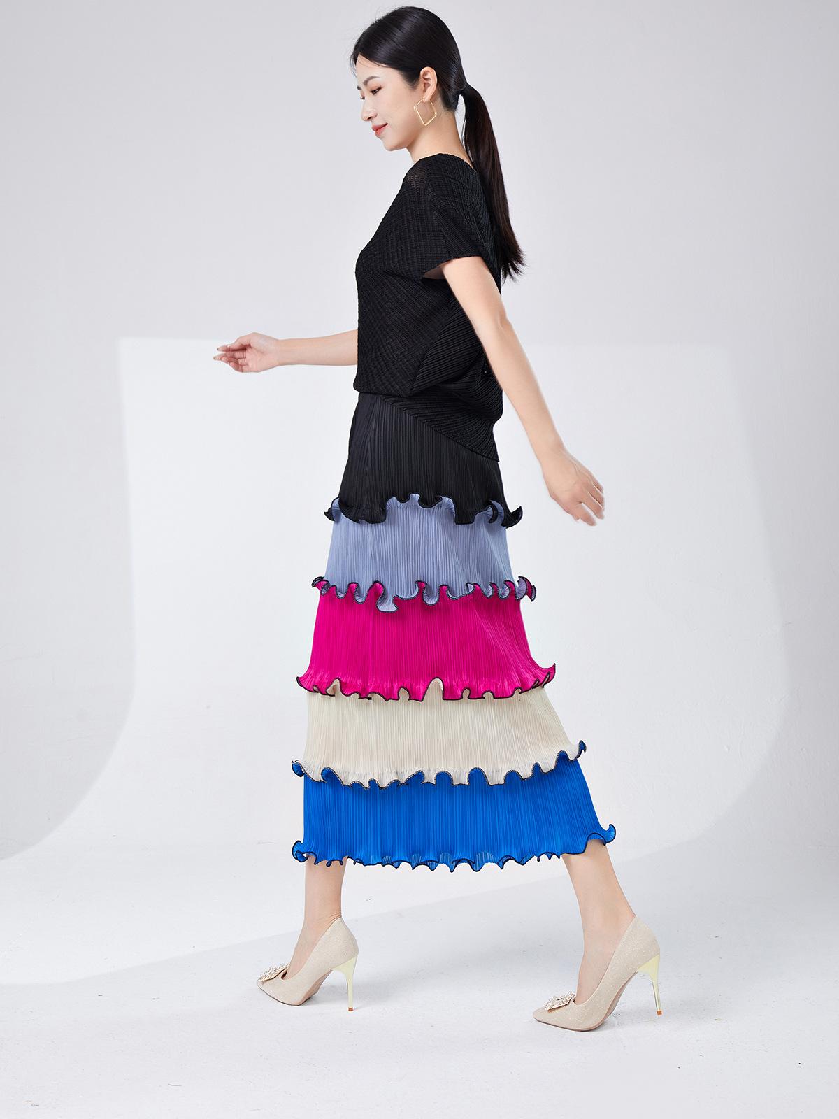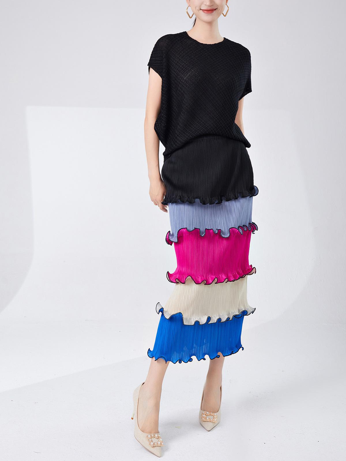 Falda plisada Media longitud Diseño de verano de alta gama Nicho Sin orejas Contraste Falda de pastel Moderna Combinable Falda de cadera