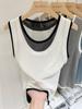 Camisola de punto para mujer, prenda exterior de verano, diseño con contraste de colores, parte inferior, estilo occidental de moda, única, sin mangas, blusa falsa de dos piezas