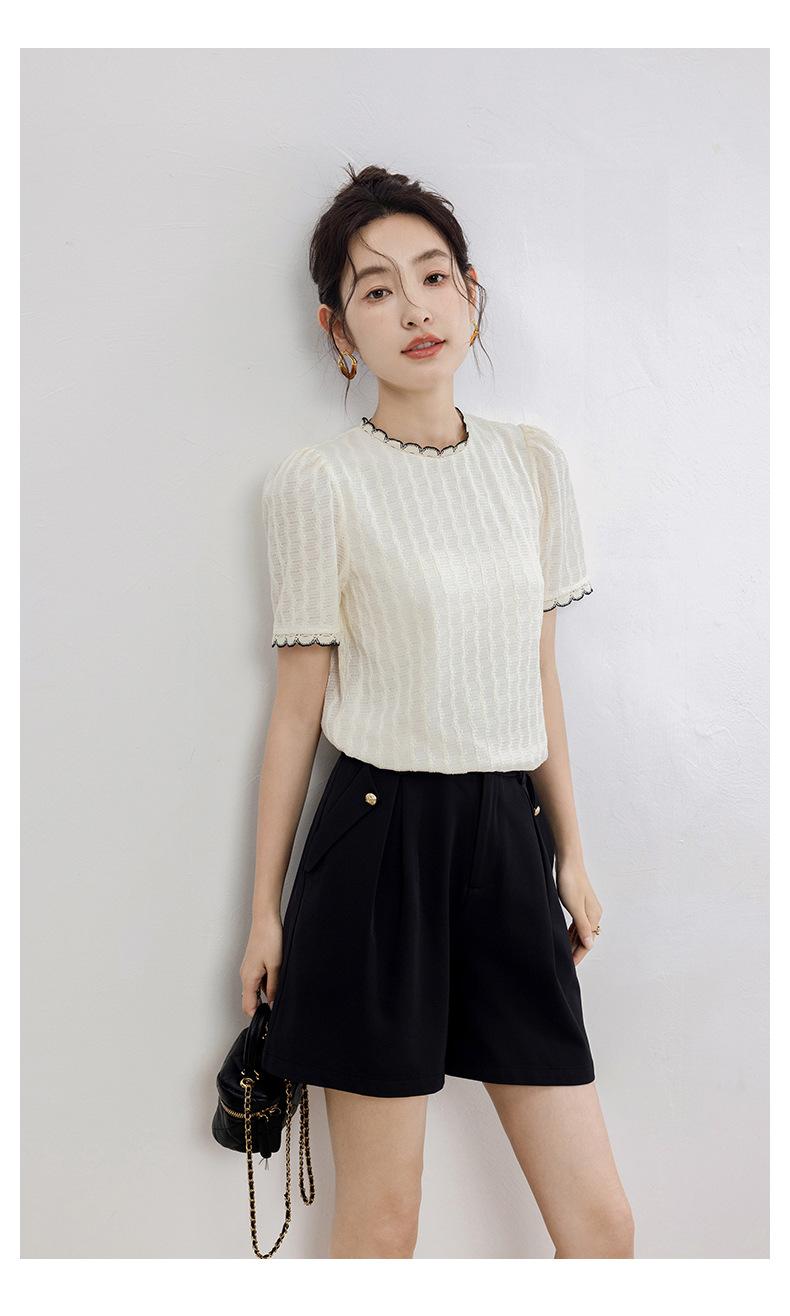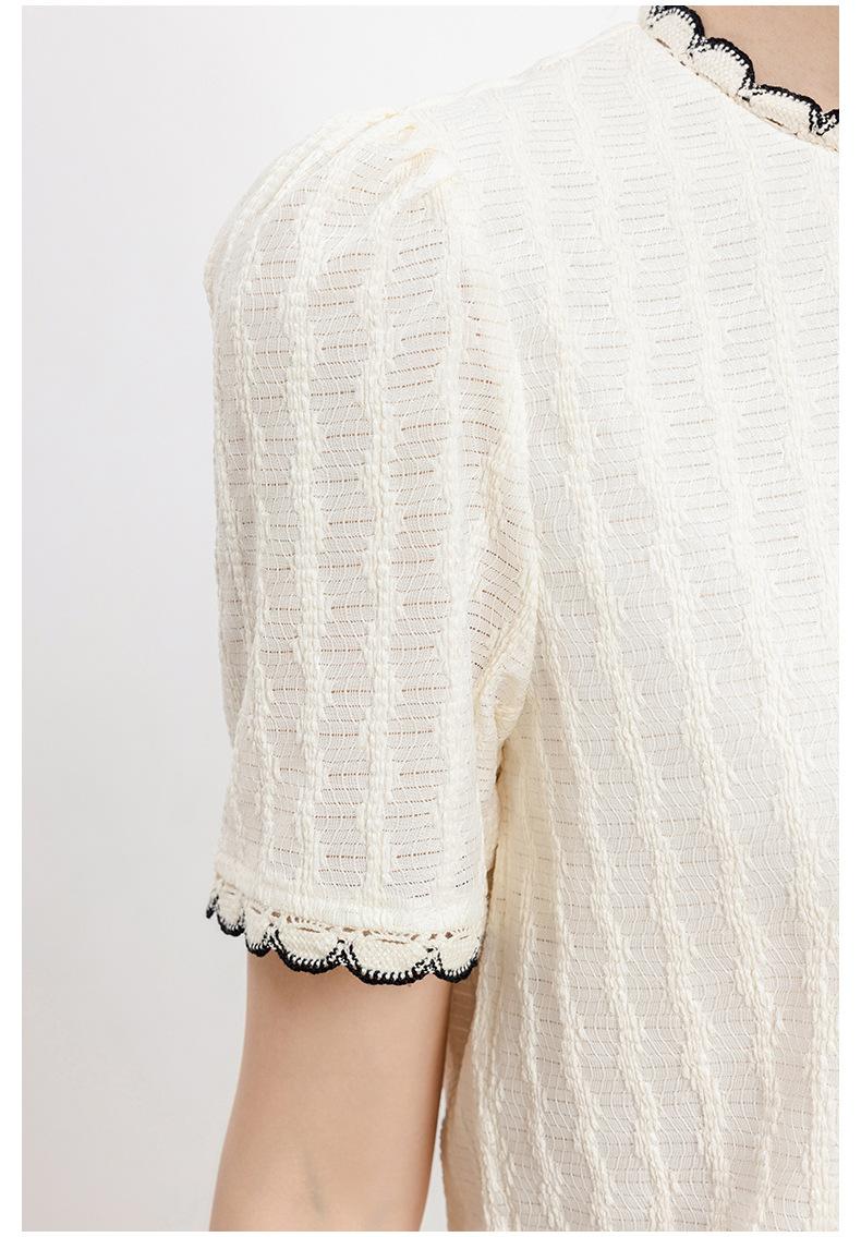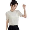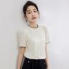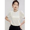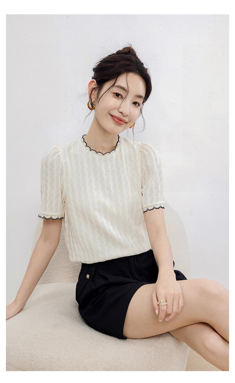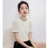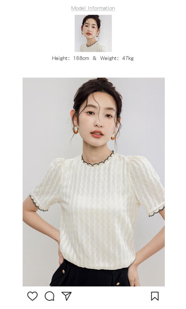 Camiseta elegante de estilo francés con mangas abullonadas a rayas para mujer, fina, de verano, con diseño occidental a la moda, con hombros descubiertos y manga corta.