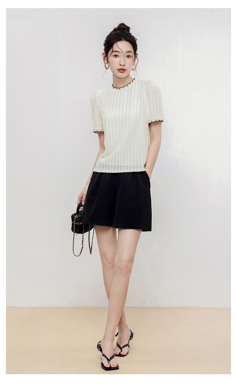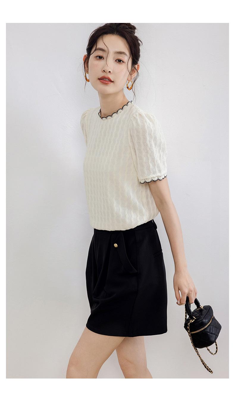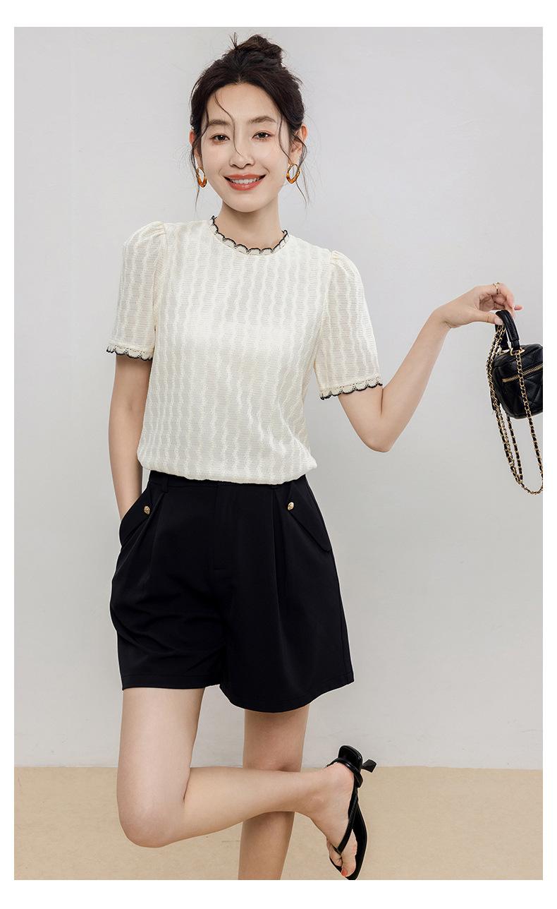 Camiseta elegante de estilo francés con mangas abullonadas a rayas para mujer, fina, de verano, con diseño occidental a la moda, con hombros descubiertos y manga corta.