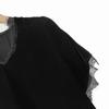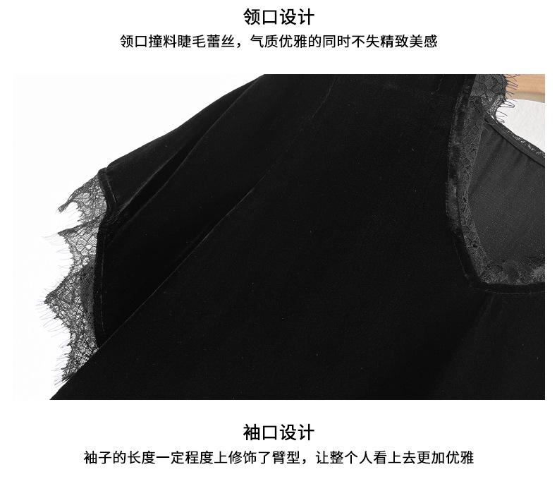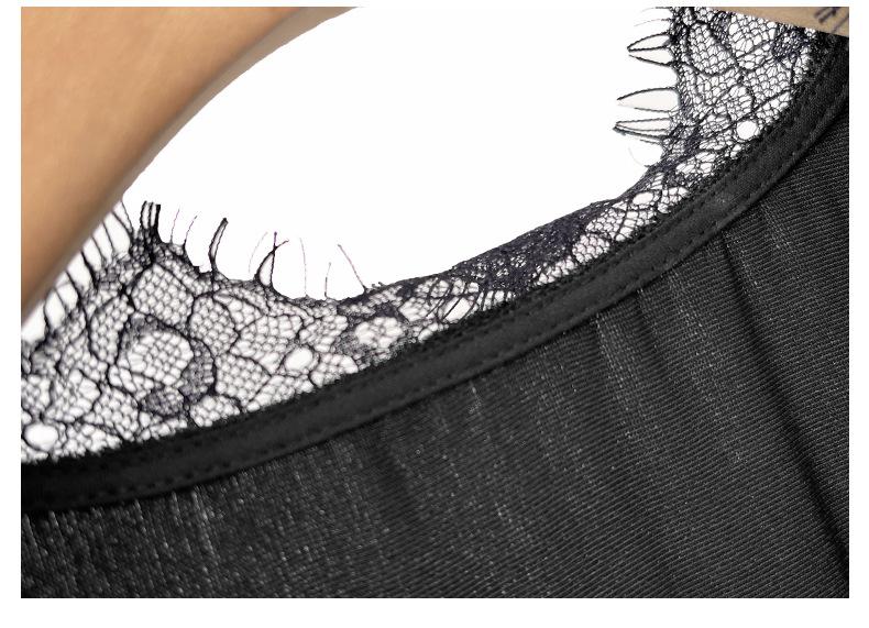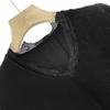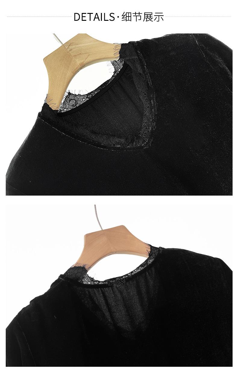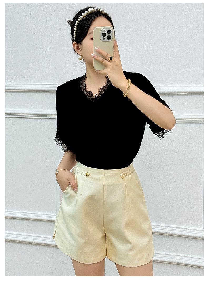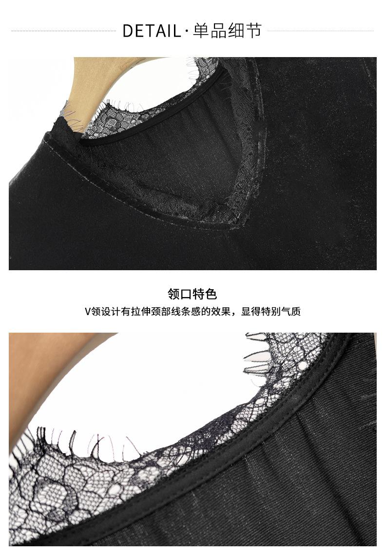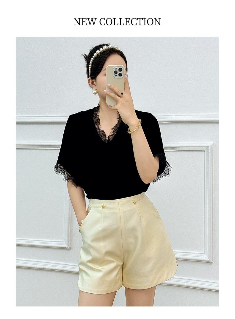 2418205-Top de Terciopelo de Seda Estilo Francés Elegante Calidad Encaje Empalmado Seda de Morera Camiseta de Verano para Mujer