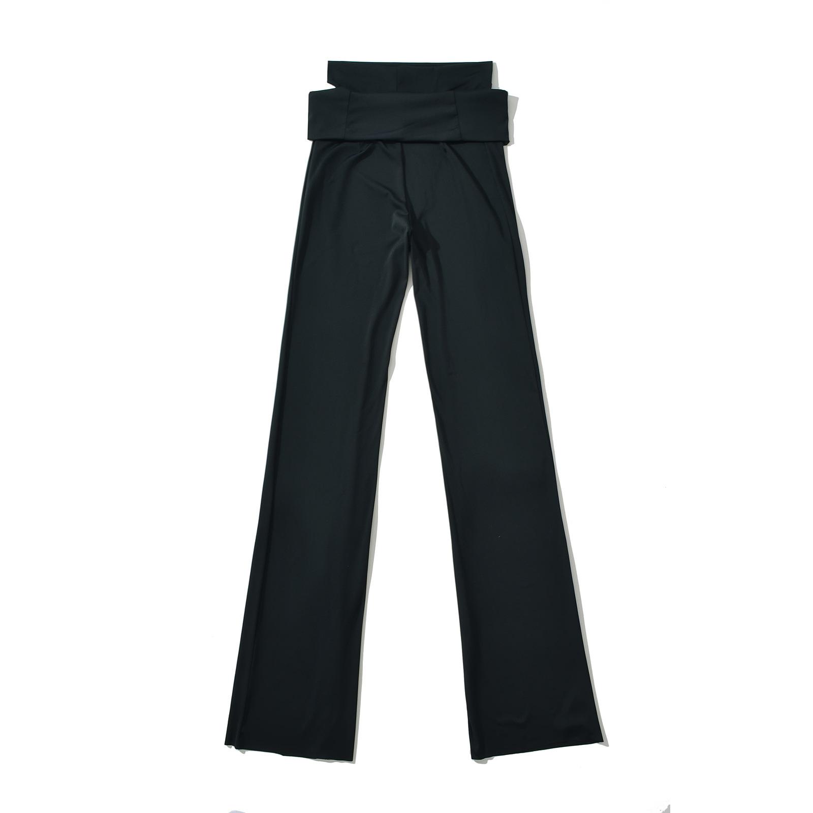 24068-24 Pantalones casuales de verano nuevos de estilo europeo y americano, de cintura alta, con corte calado y elástico alto.
