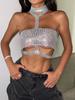 Nuevo Top Metálico con Pedrería para Mujer Europea y Americana Transfronterizo Sexy Chaleco de Cuello