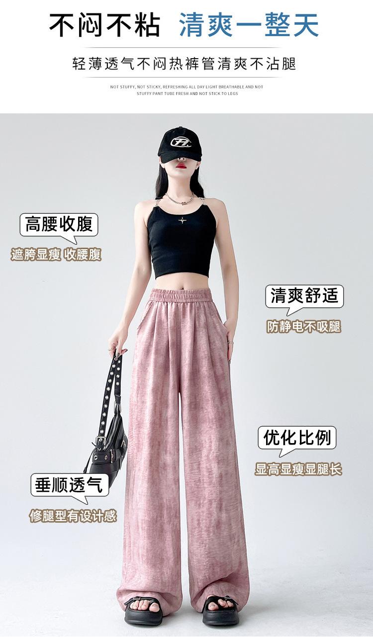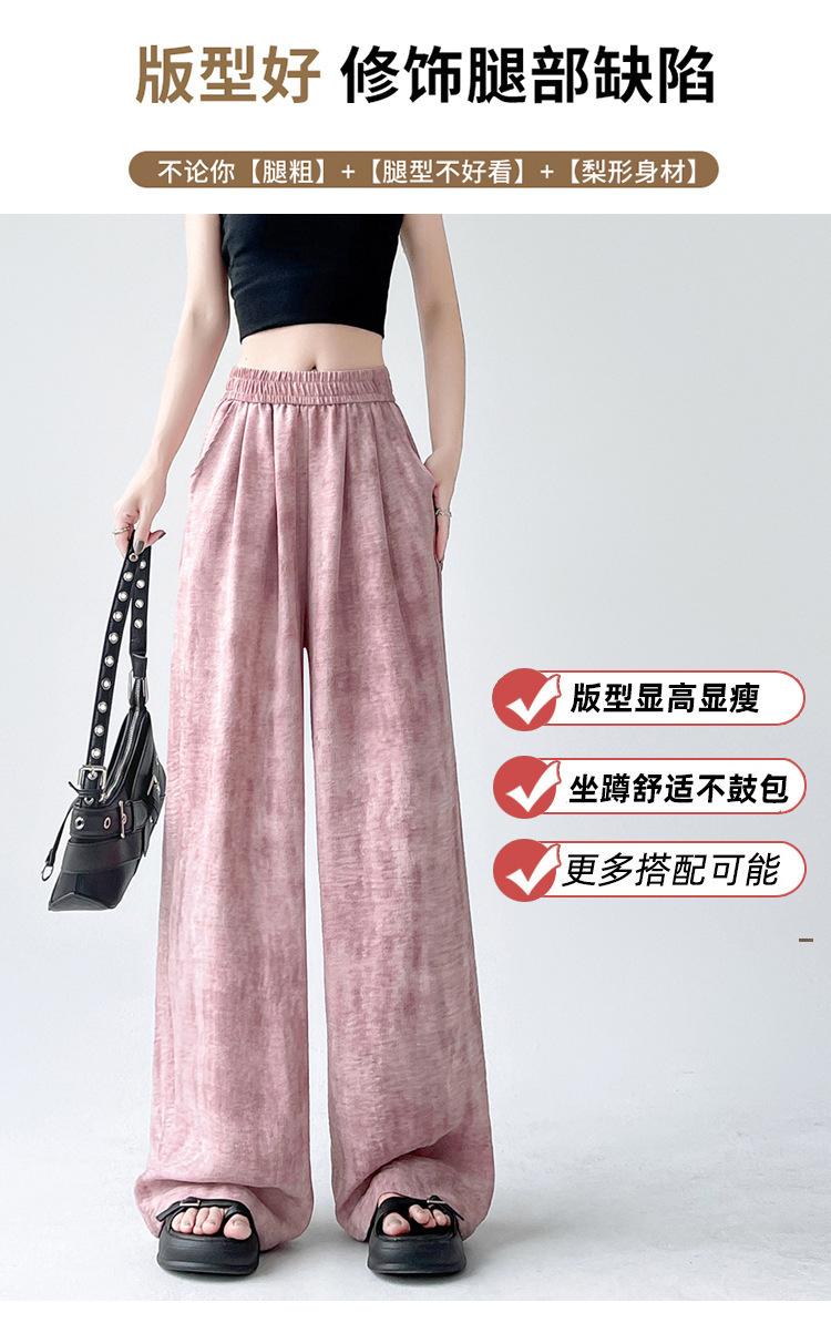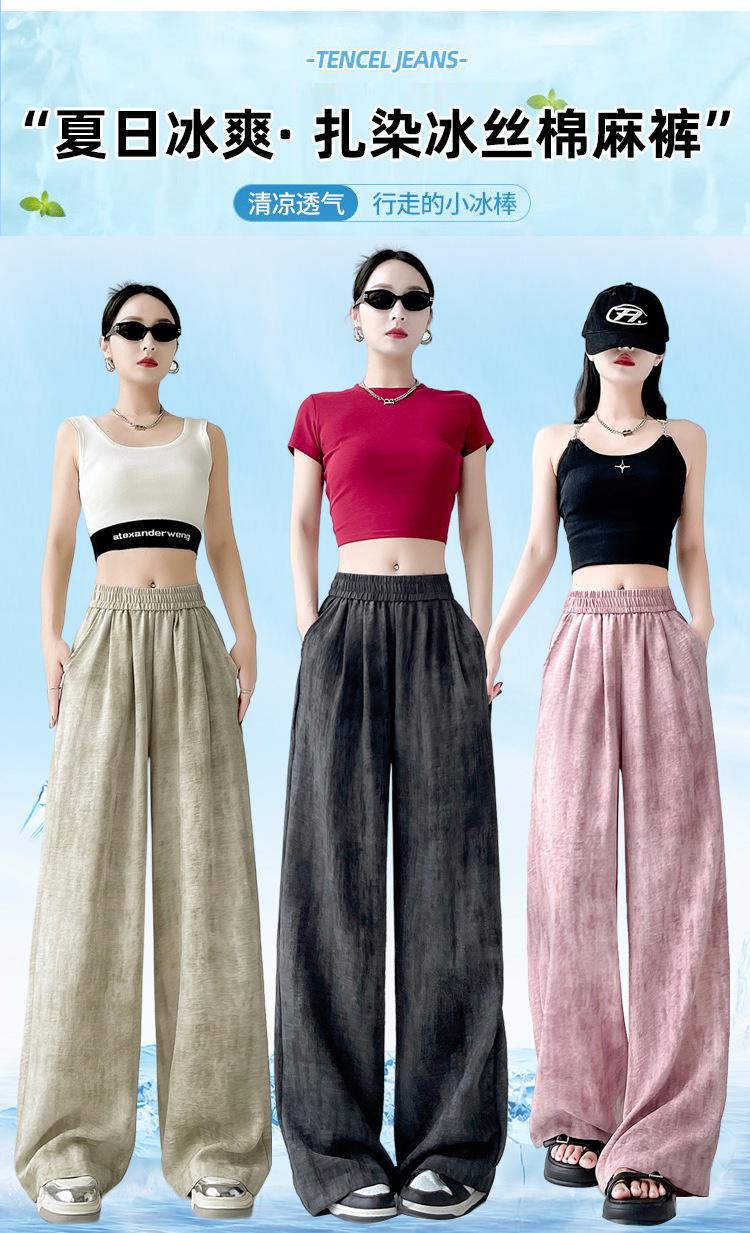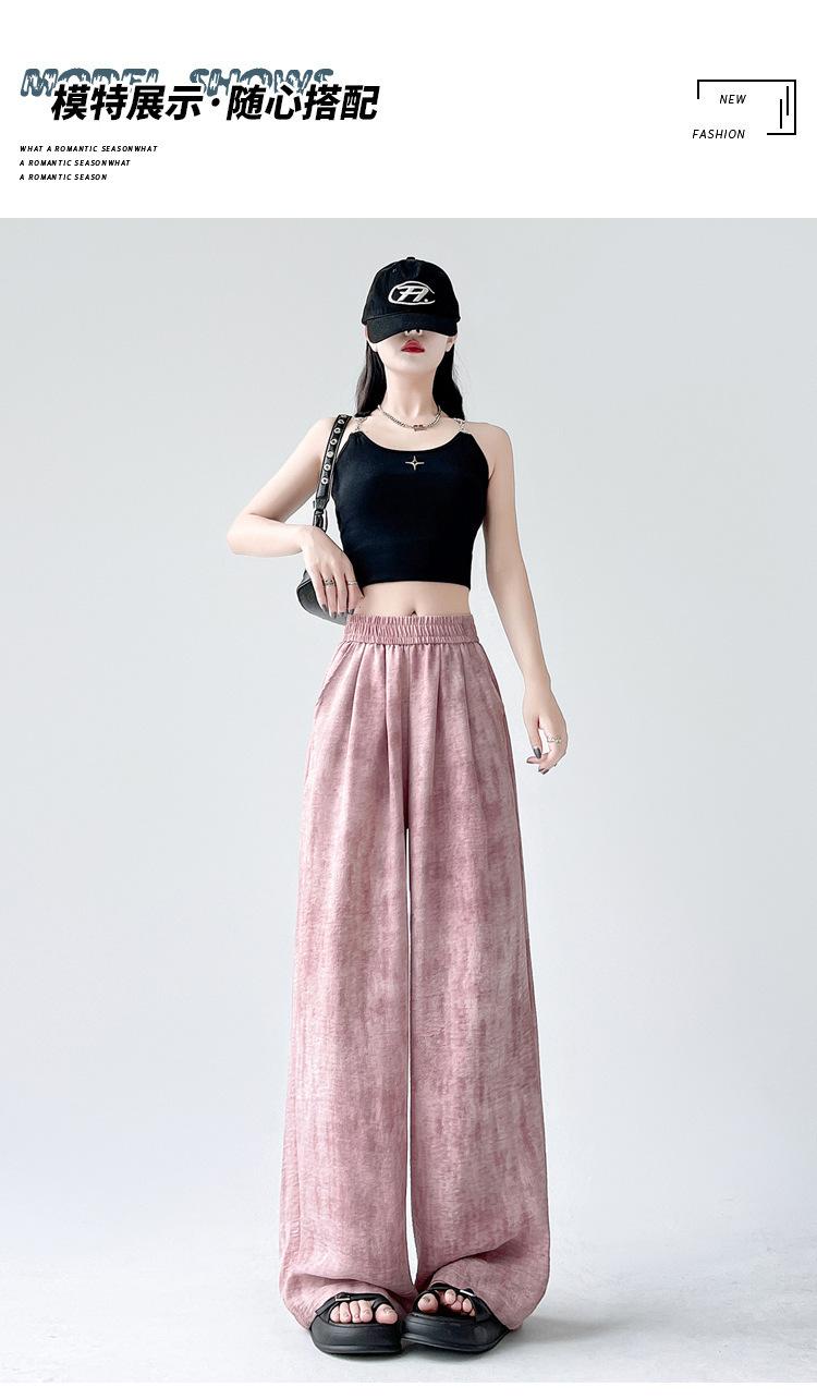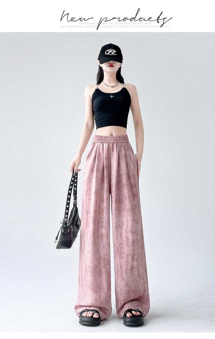 Pantalones de Pierna Ancha Tie-Dye de Algodón y Lino Seda de Hielo para Mujer en Otoño Finos Protección Solar Pantalones Frescos Casuales de Cintura Alta Drapeados Hasta el Piso