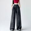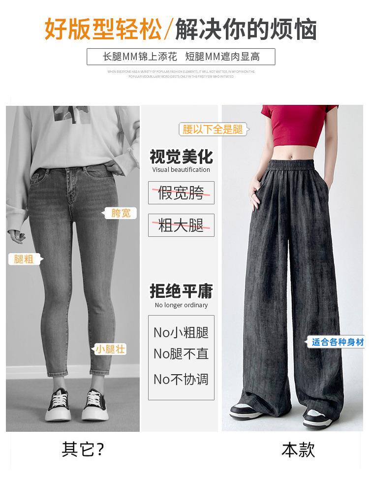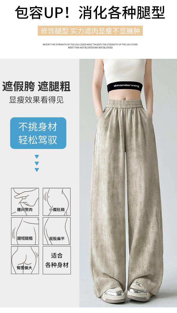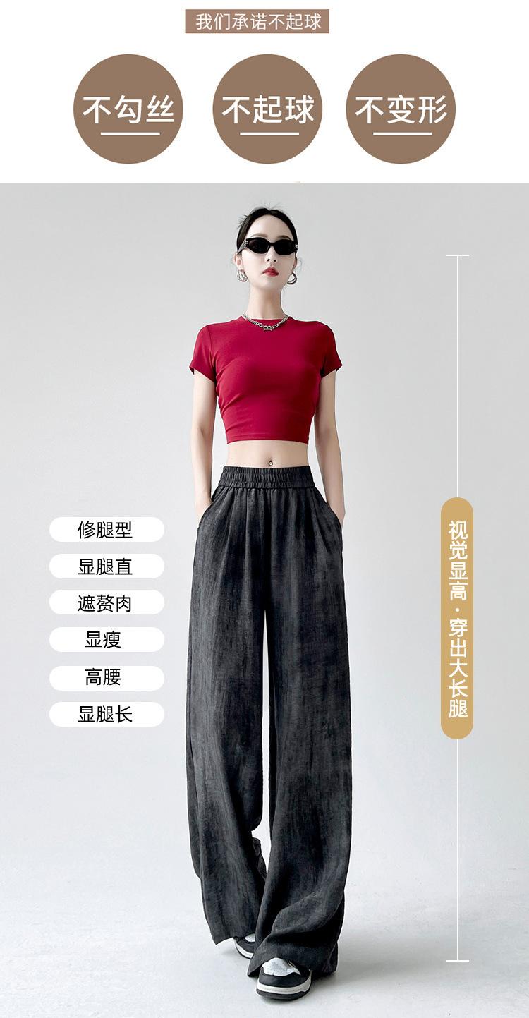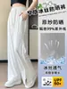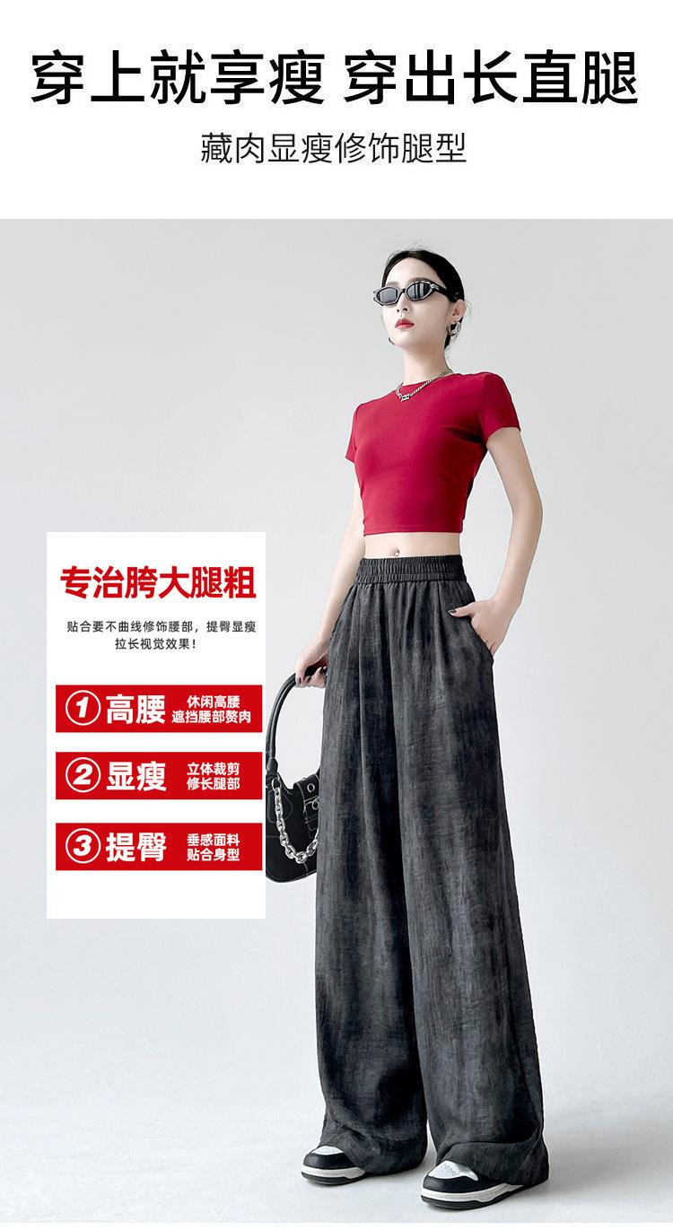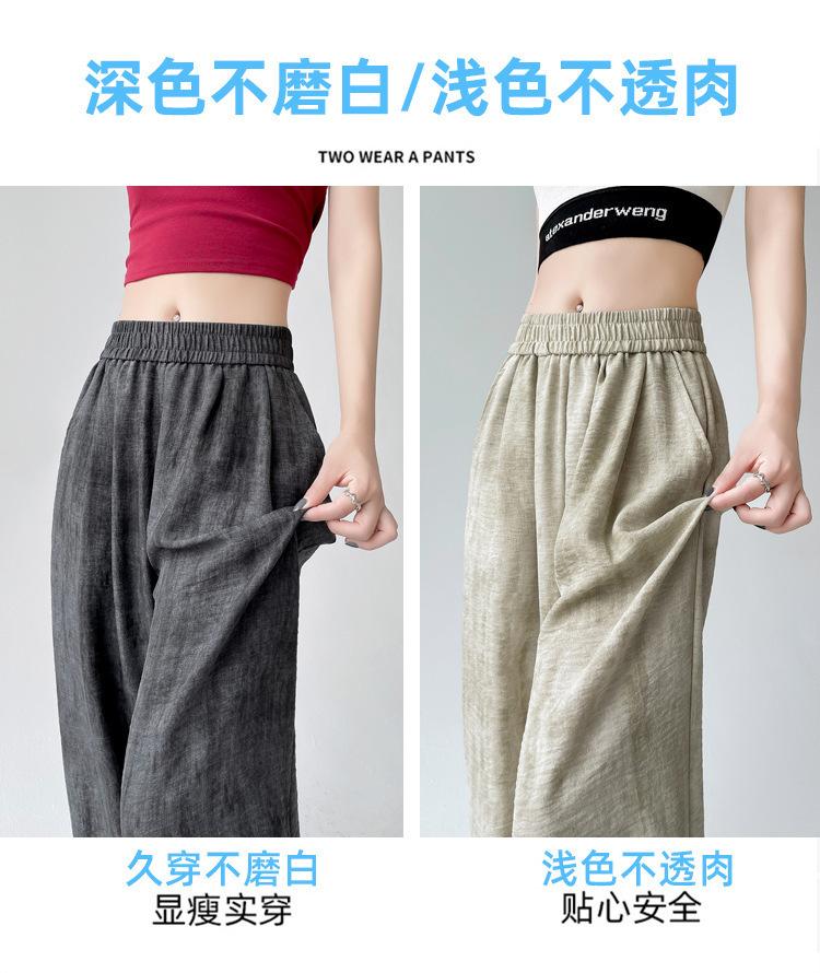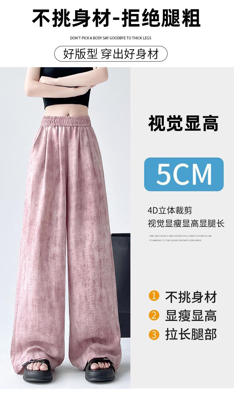 Pantalones de Pierna Ancha Tie-Dye de Algodón y Lino Seda de Hielo para Mujer en Otoño Finos Protección Solar Pantalones Frescos Casuales de Cintura Alta Drapeados Hasta el Piso
