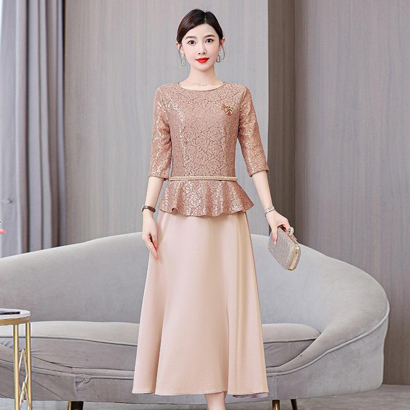 Vestido de novia para suegra Xi, vestido tostado, verano 2024, nueva moda, elegante vestido bordado ajustado.