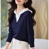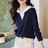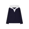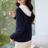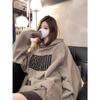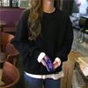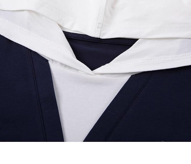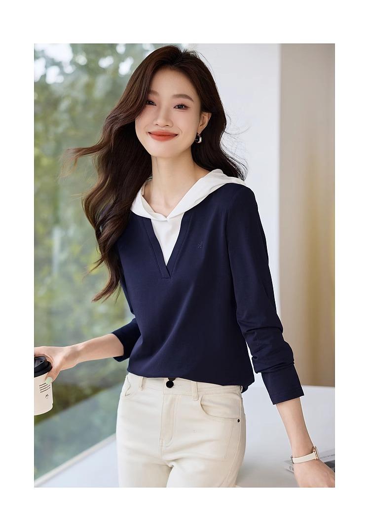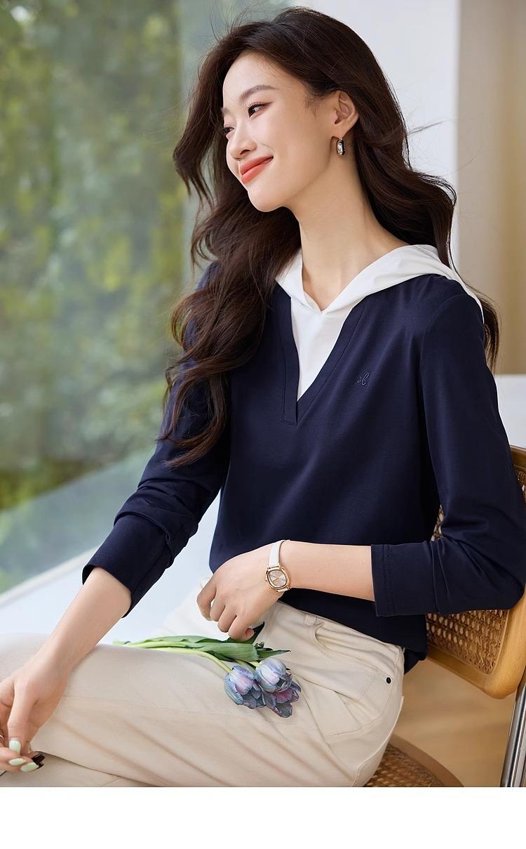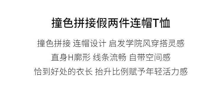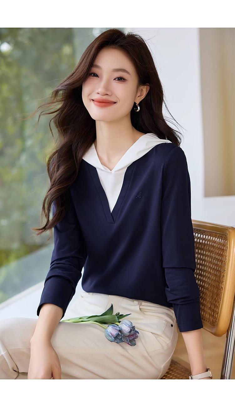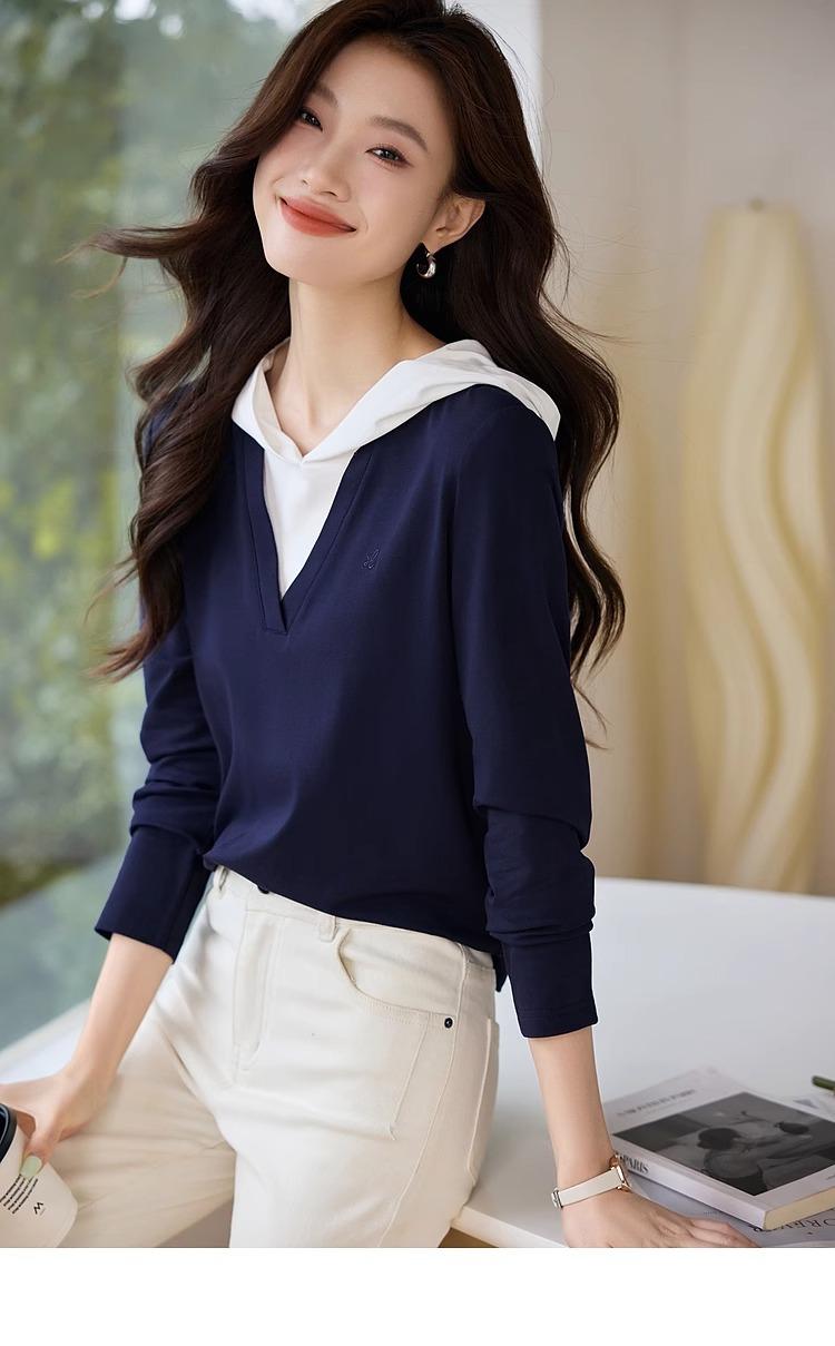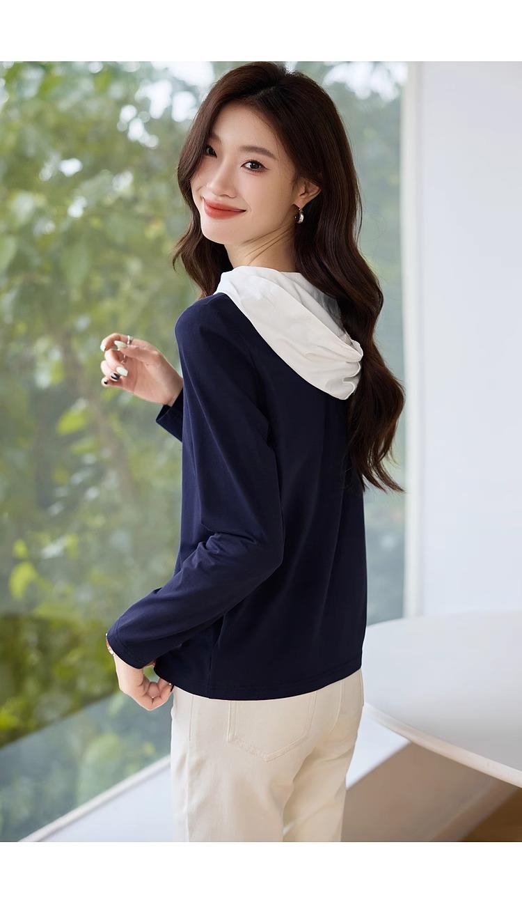 Camiseta de dos piezas con capucha y costuras de color en contraste, otoño 2024, diseño informal, holgada, combinable, de manga larga para mujer
