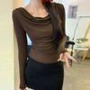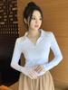 Xinge Camiseta de Manga Larga con Estampado Digital Irregular Otoño Nuevo Diseño Nicho Sentido Abertura Slim Camiseta Base Top