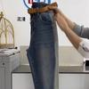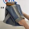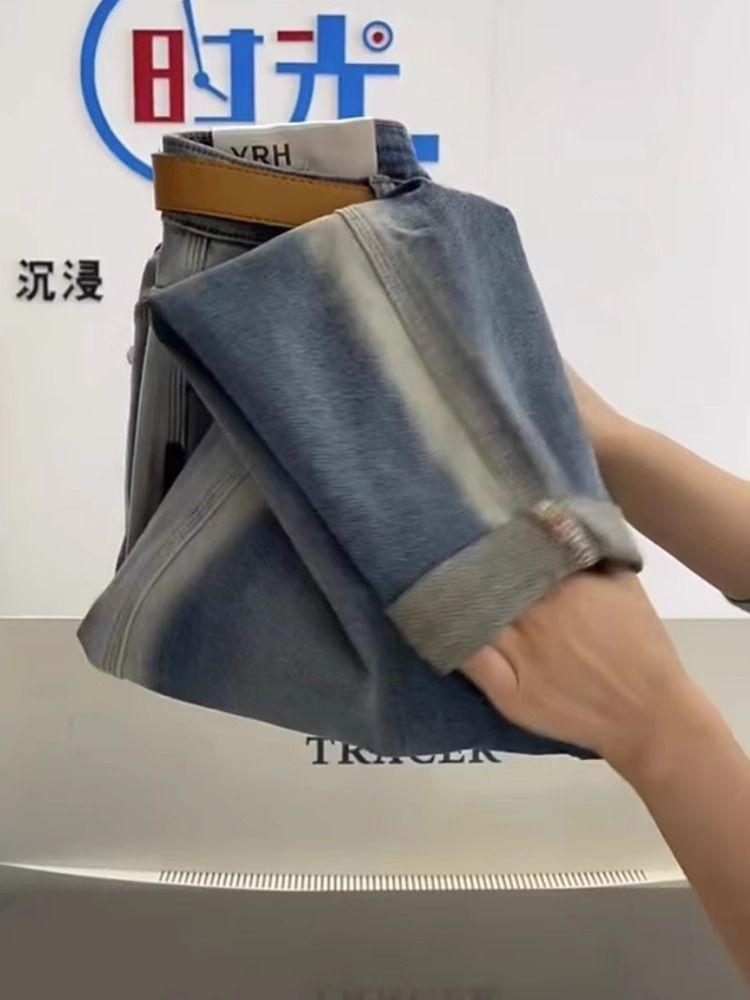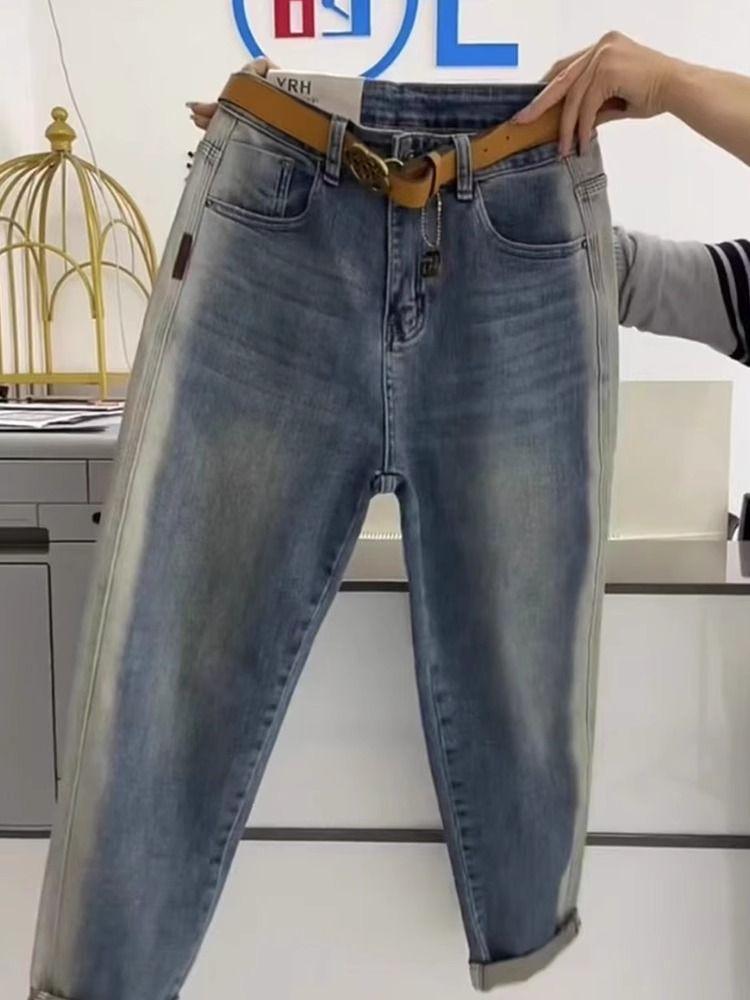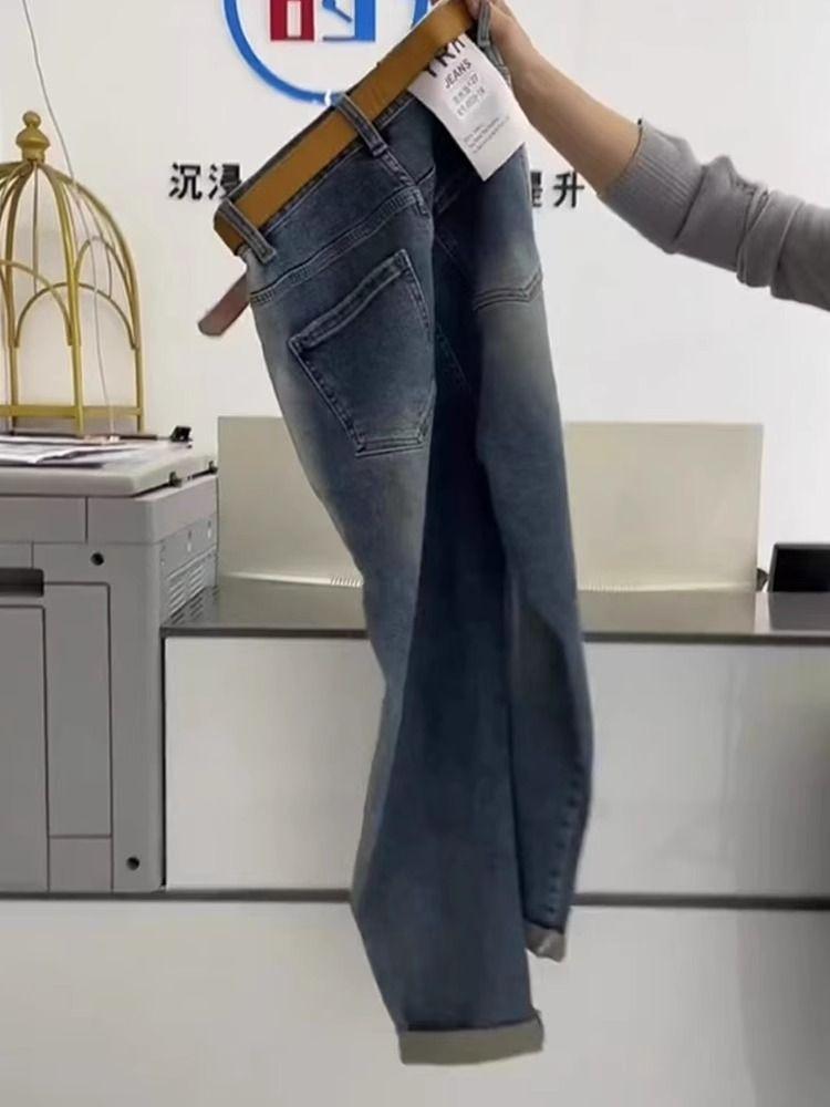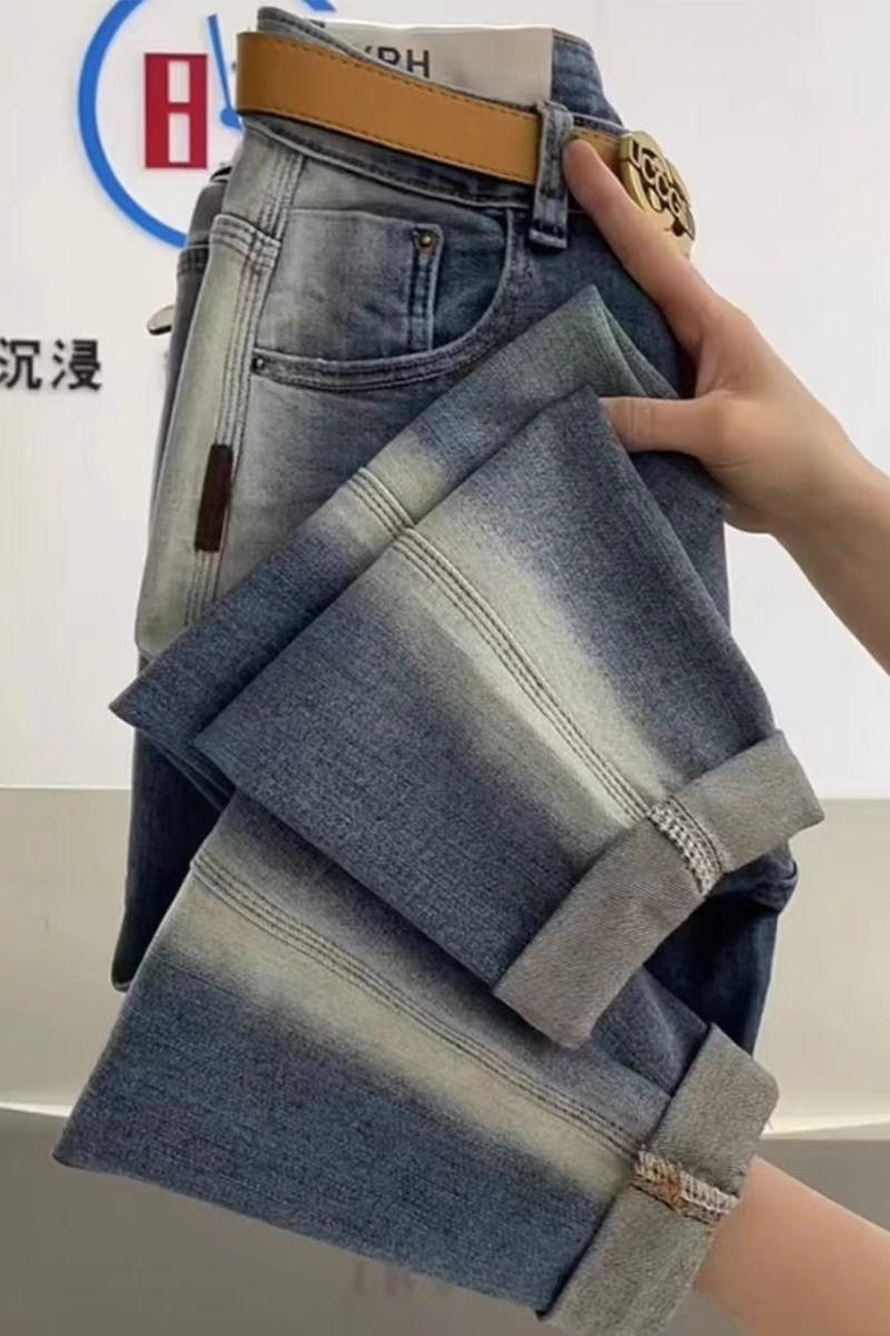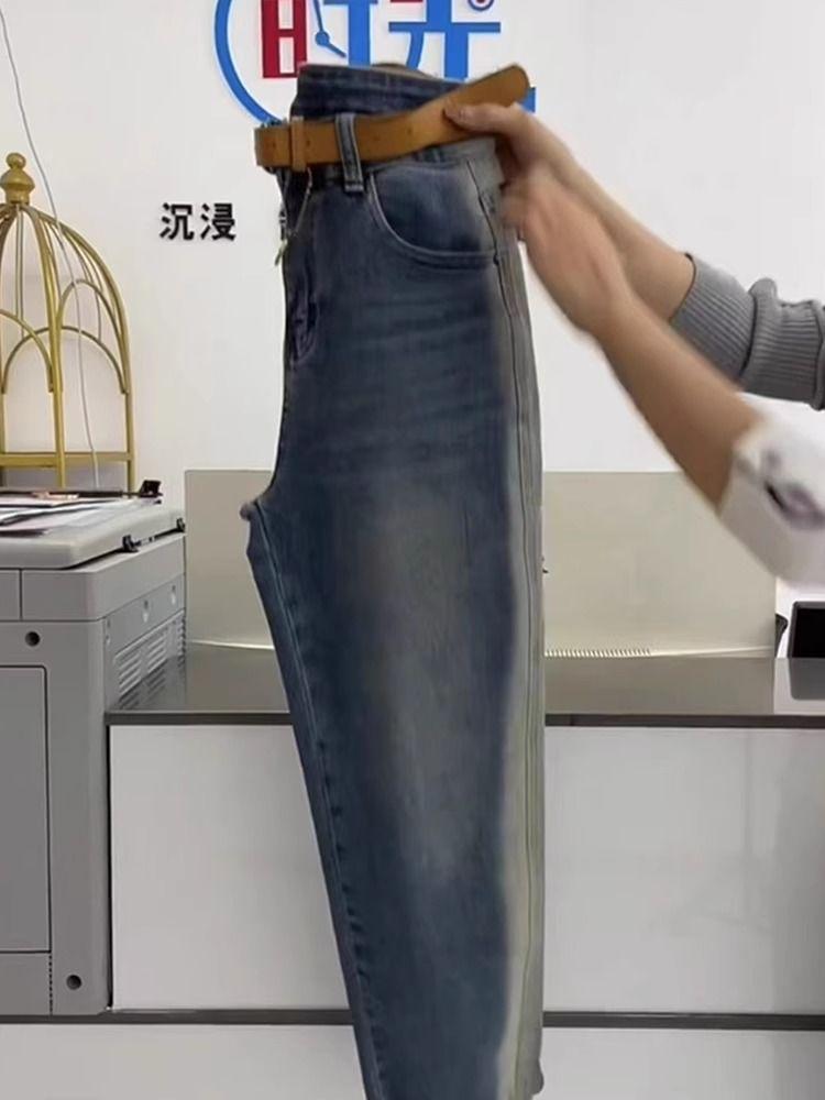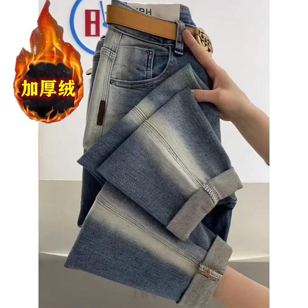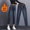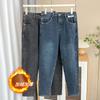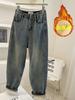 Pantalones vaqueros retro de nicho con forro polar grueso para mujer, de talla grande, para chica gordita, informales, versátiles, adelgazantes, para otoño e invierno, color rábano