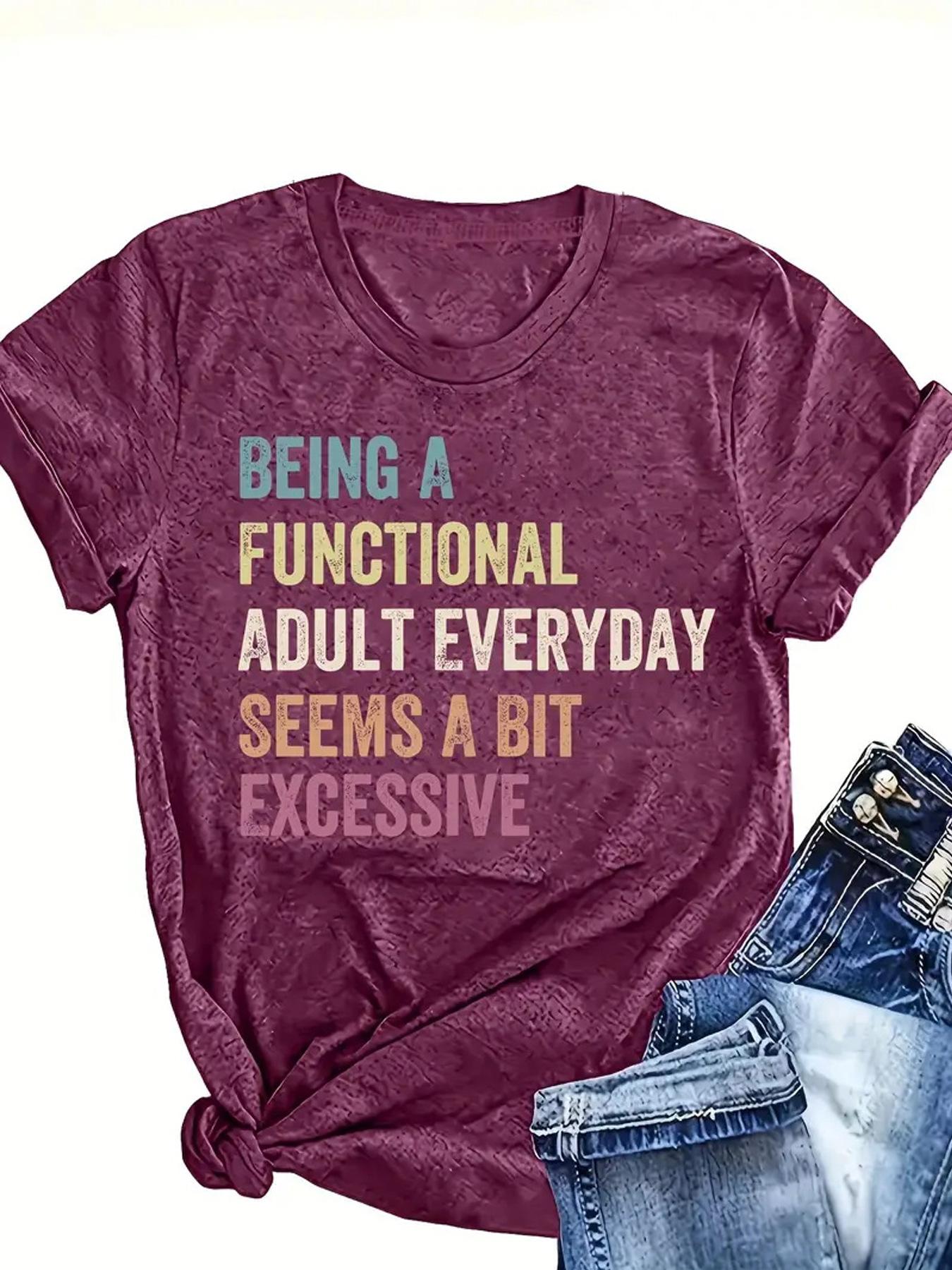 Camiseta de verano con estampado de letras para mujer de Amazon, de manga corta y cuello redondo, informal, de moda explosiva, de comercio exterior transfronterizo estadounidense