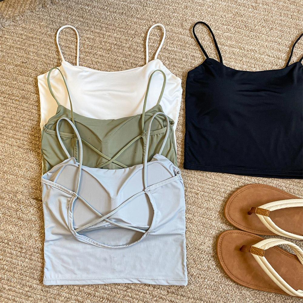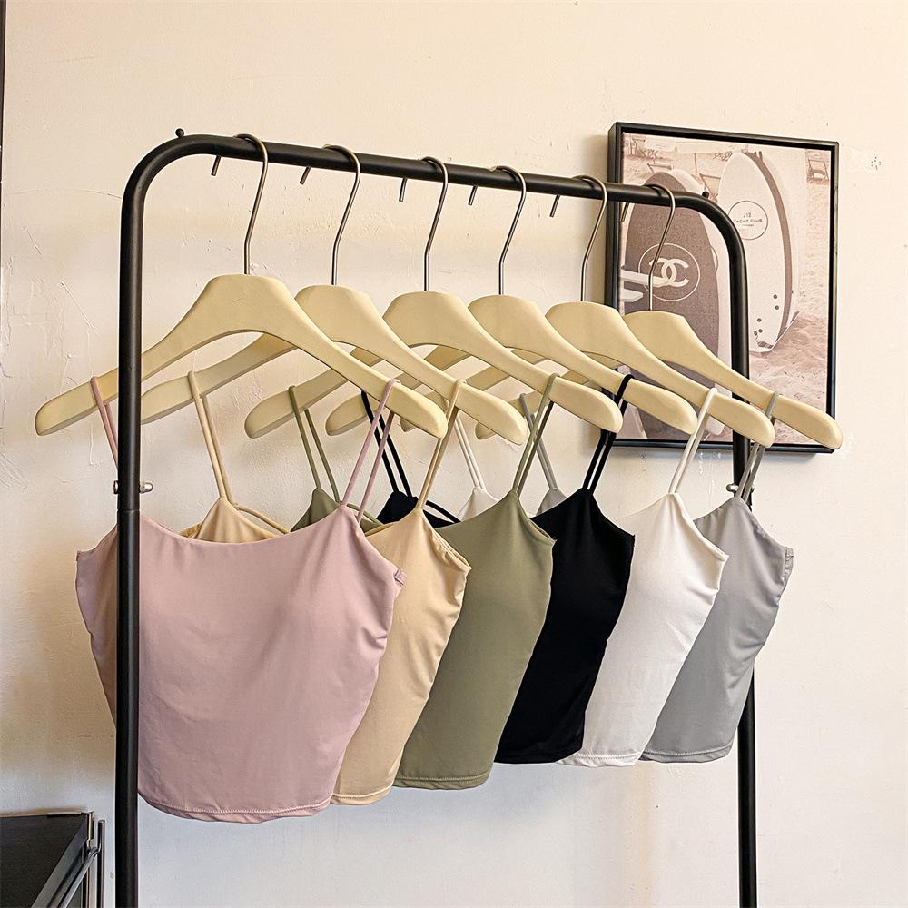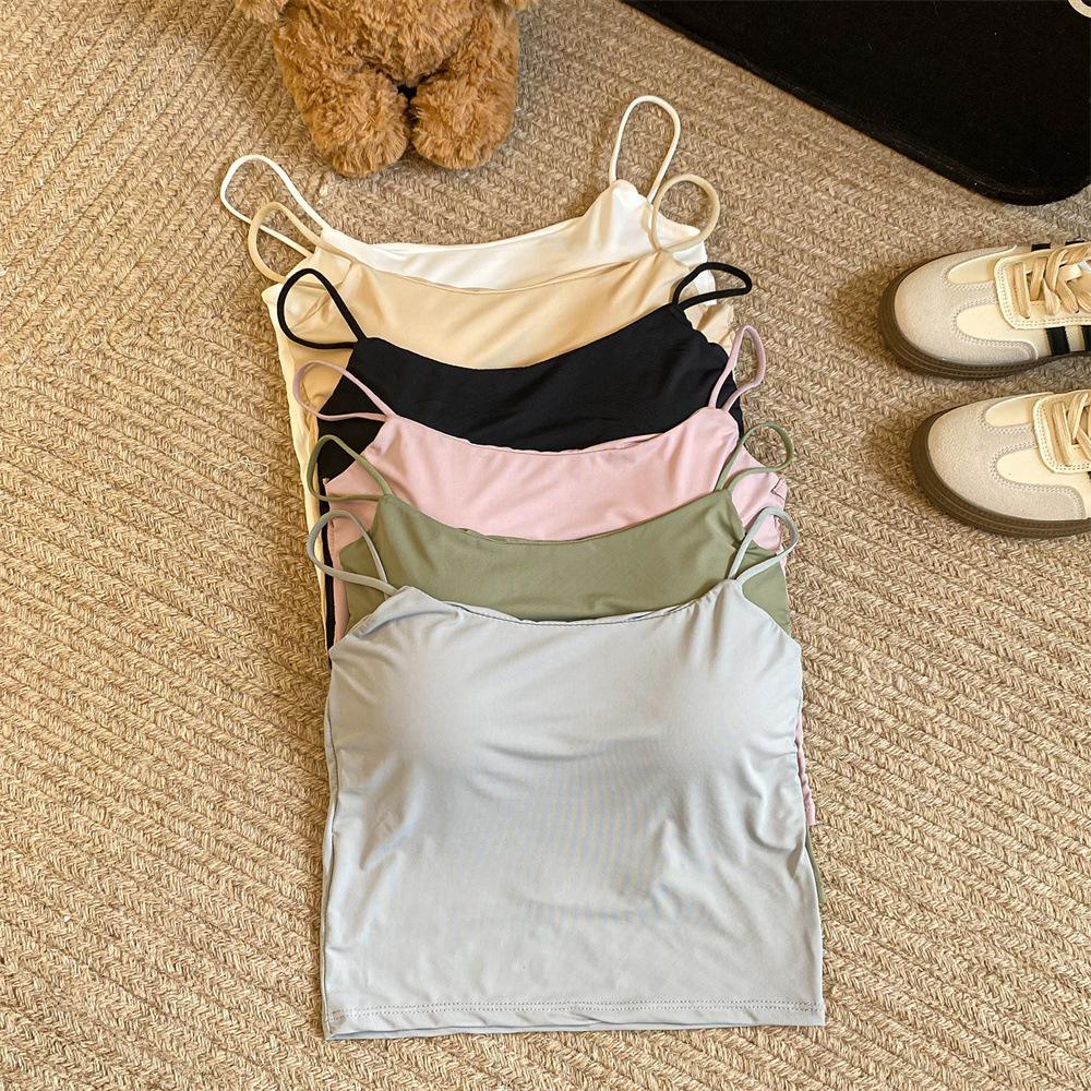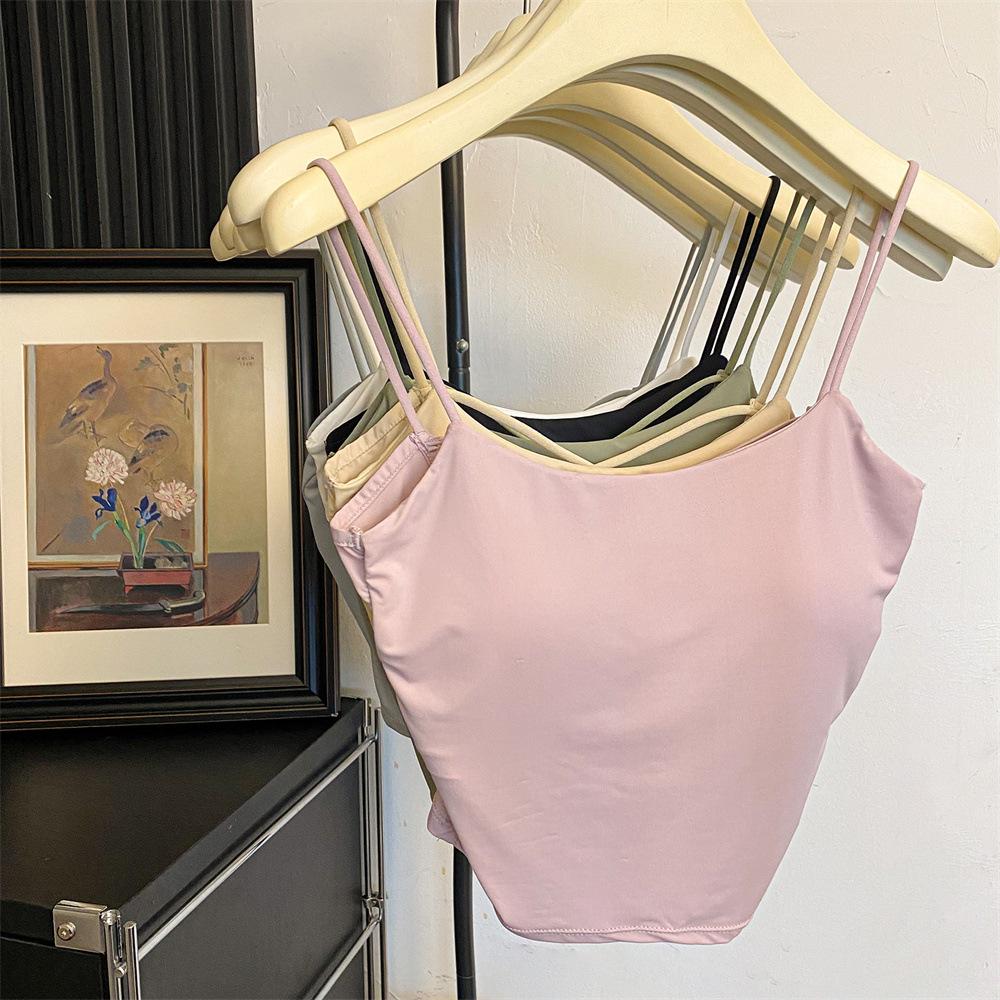 Camisola de seda helada de diseño coreano de verano para mujer, prenda exterior con espalda cruzada y almohadilla integrada en el pecho.