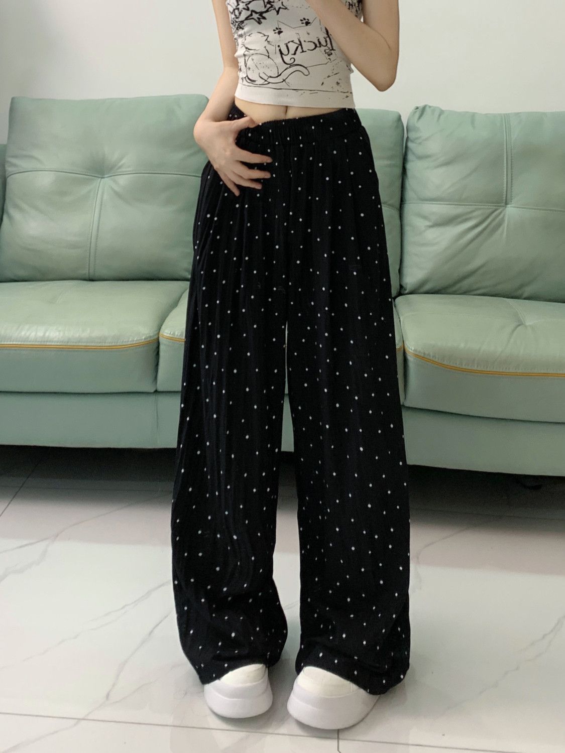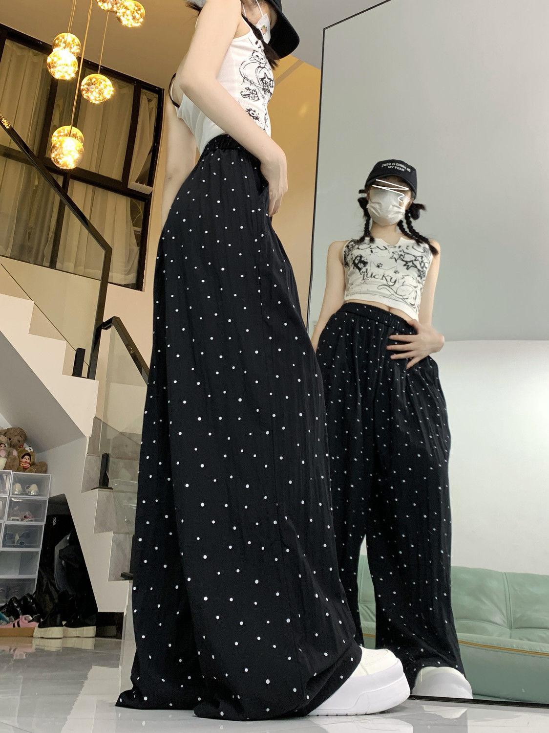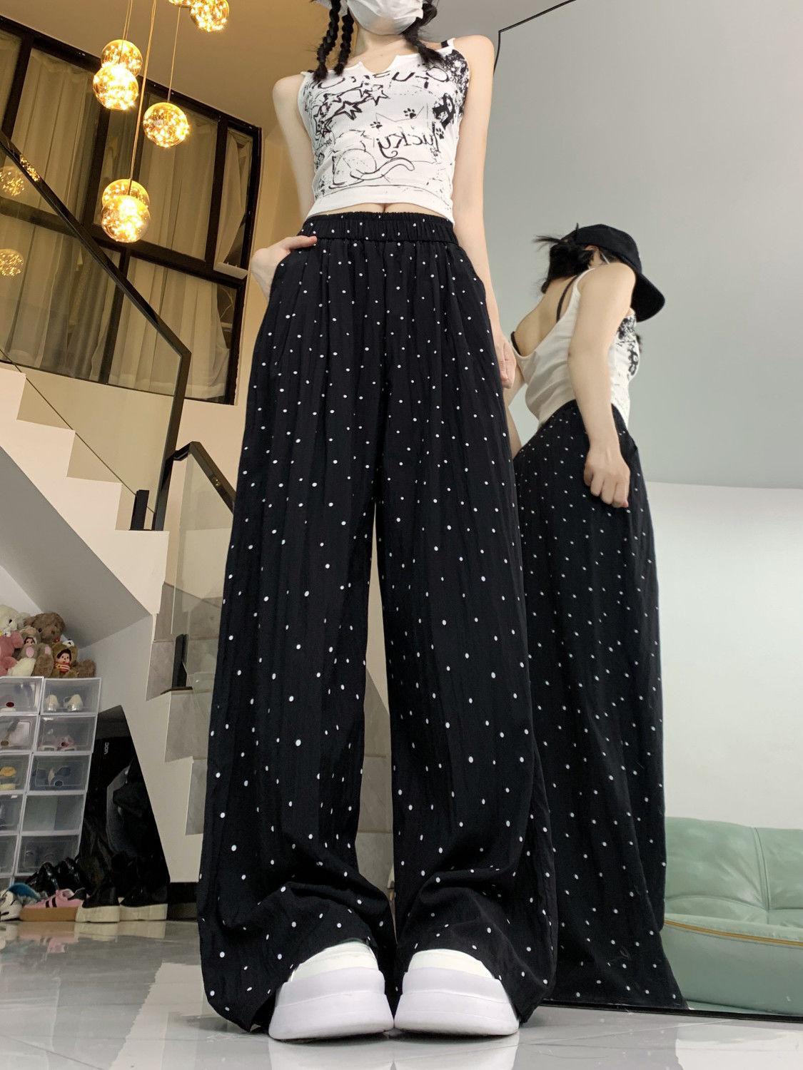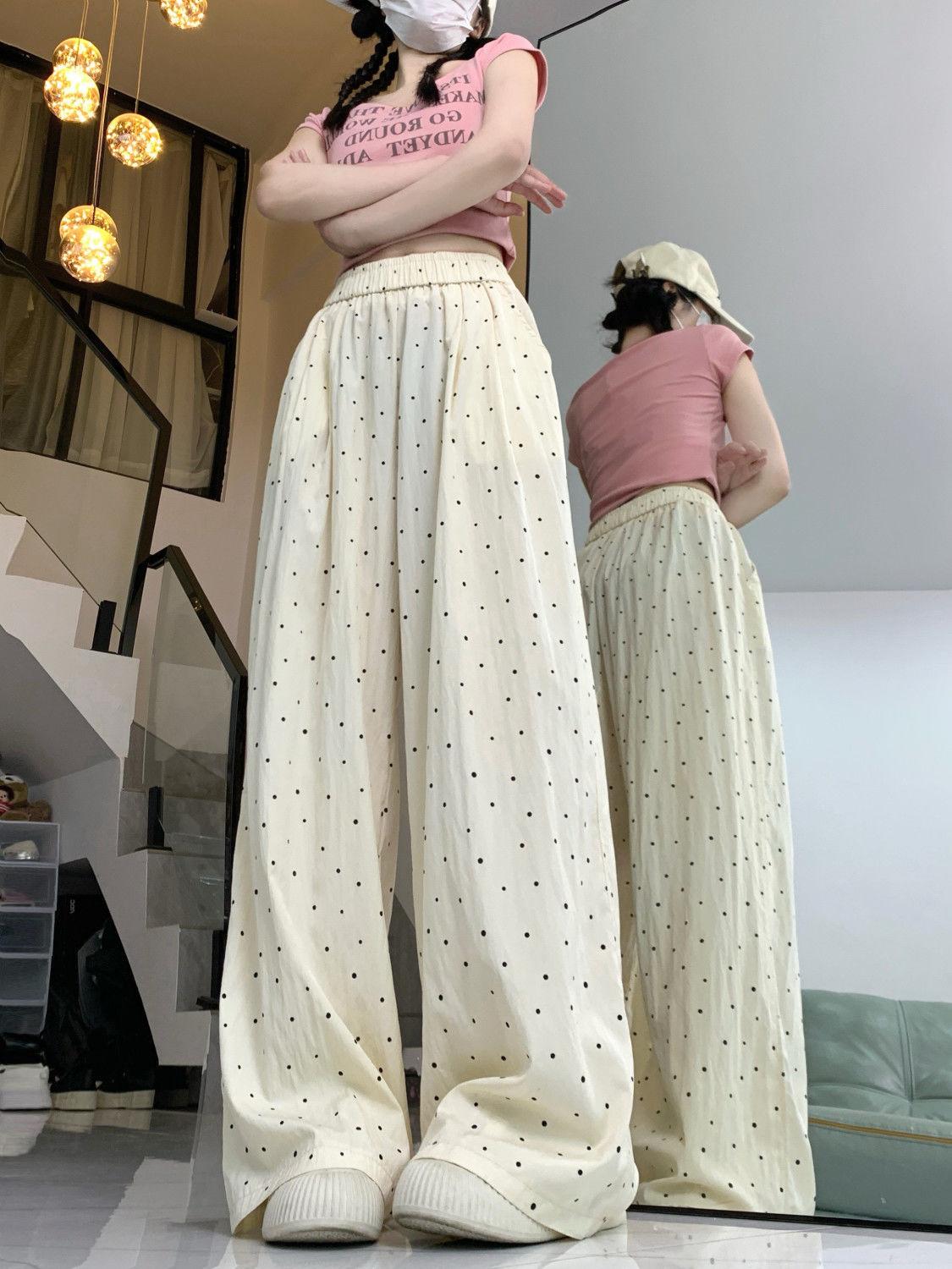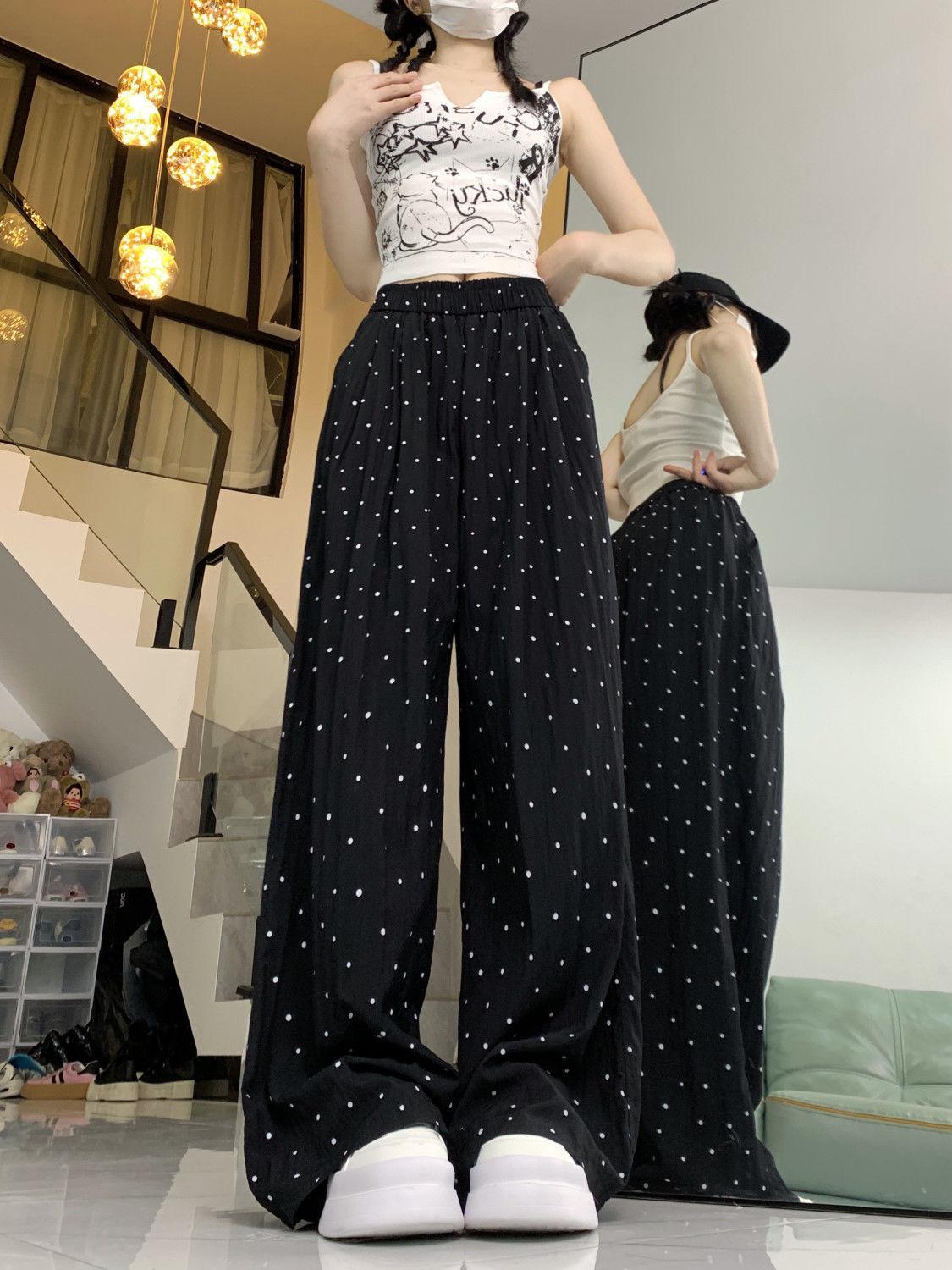 Pantalones Yamamoto de seda de hielo con lunares y ondas para mujer, de verano, finos, holgados, combinables, adelgazantes, casuales, de pierna recta y ancha.