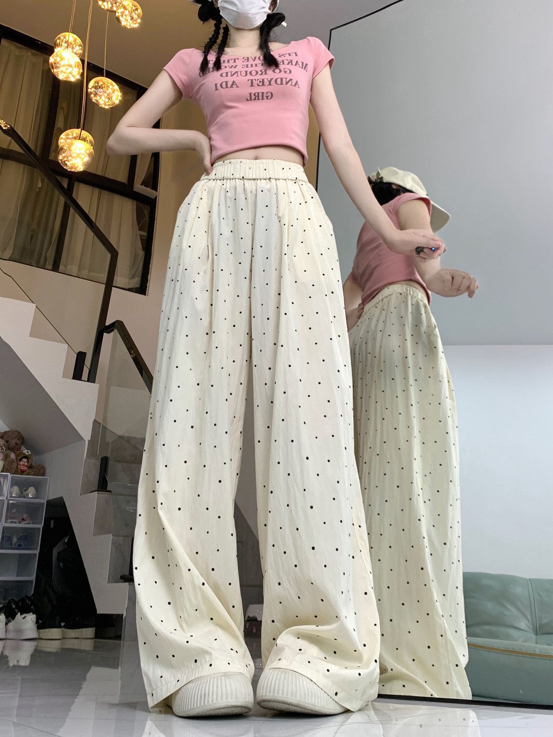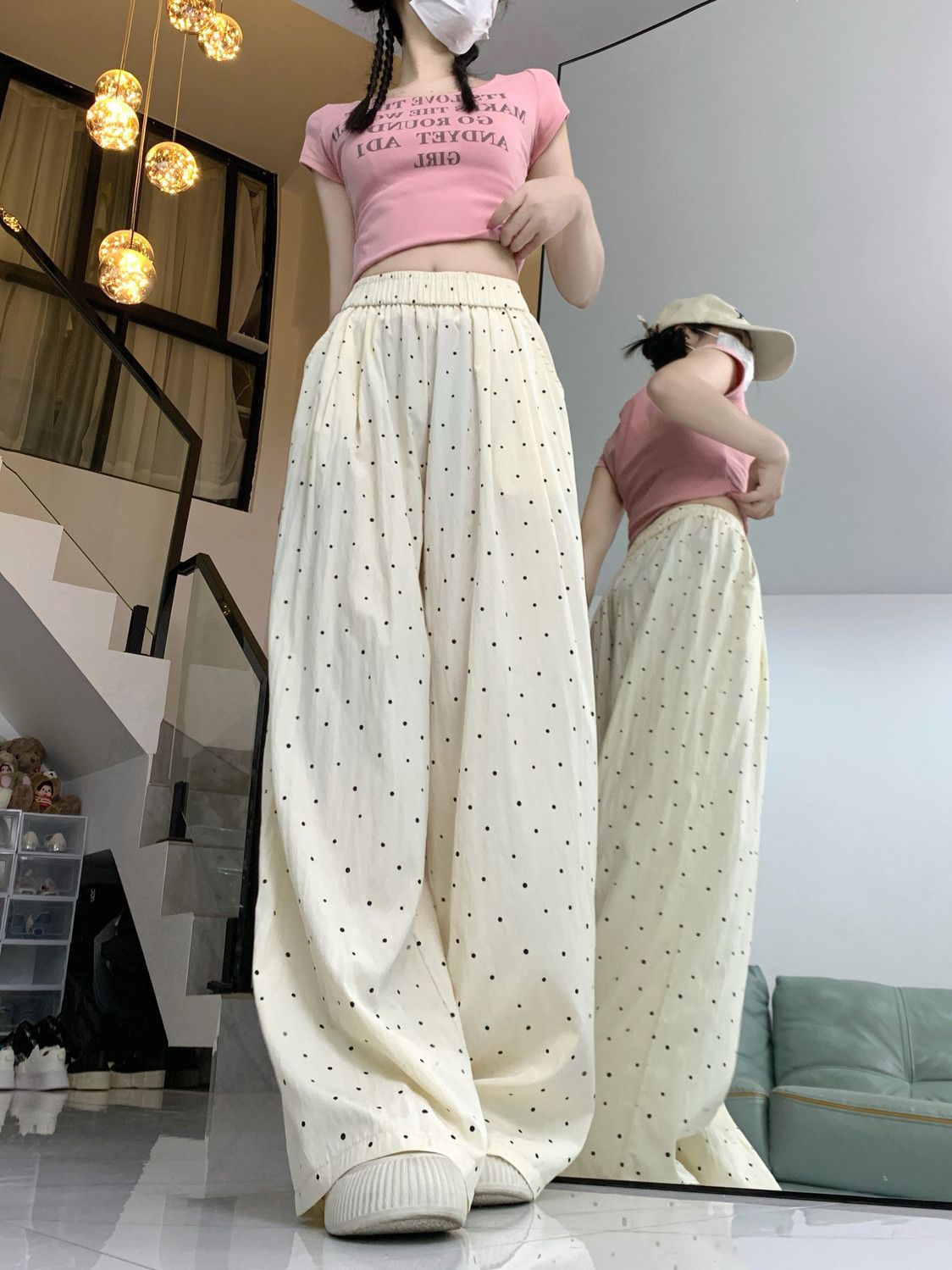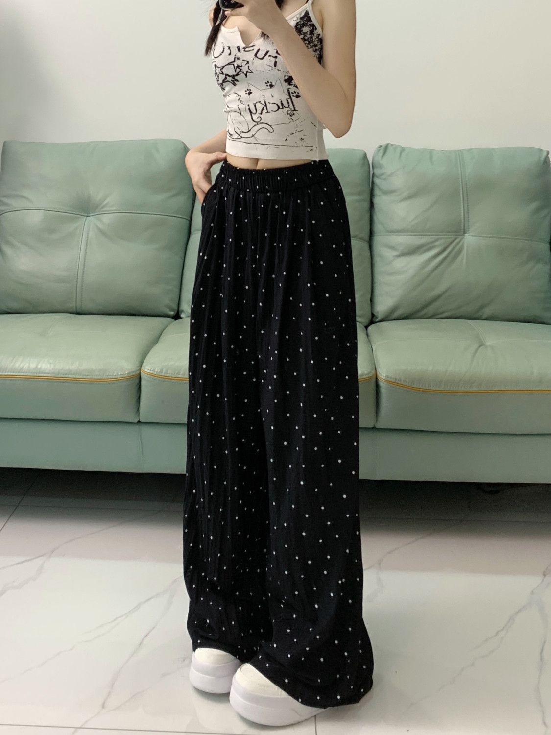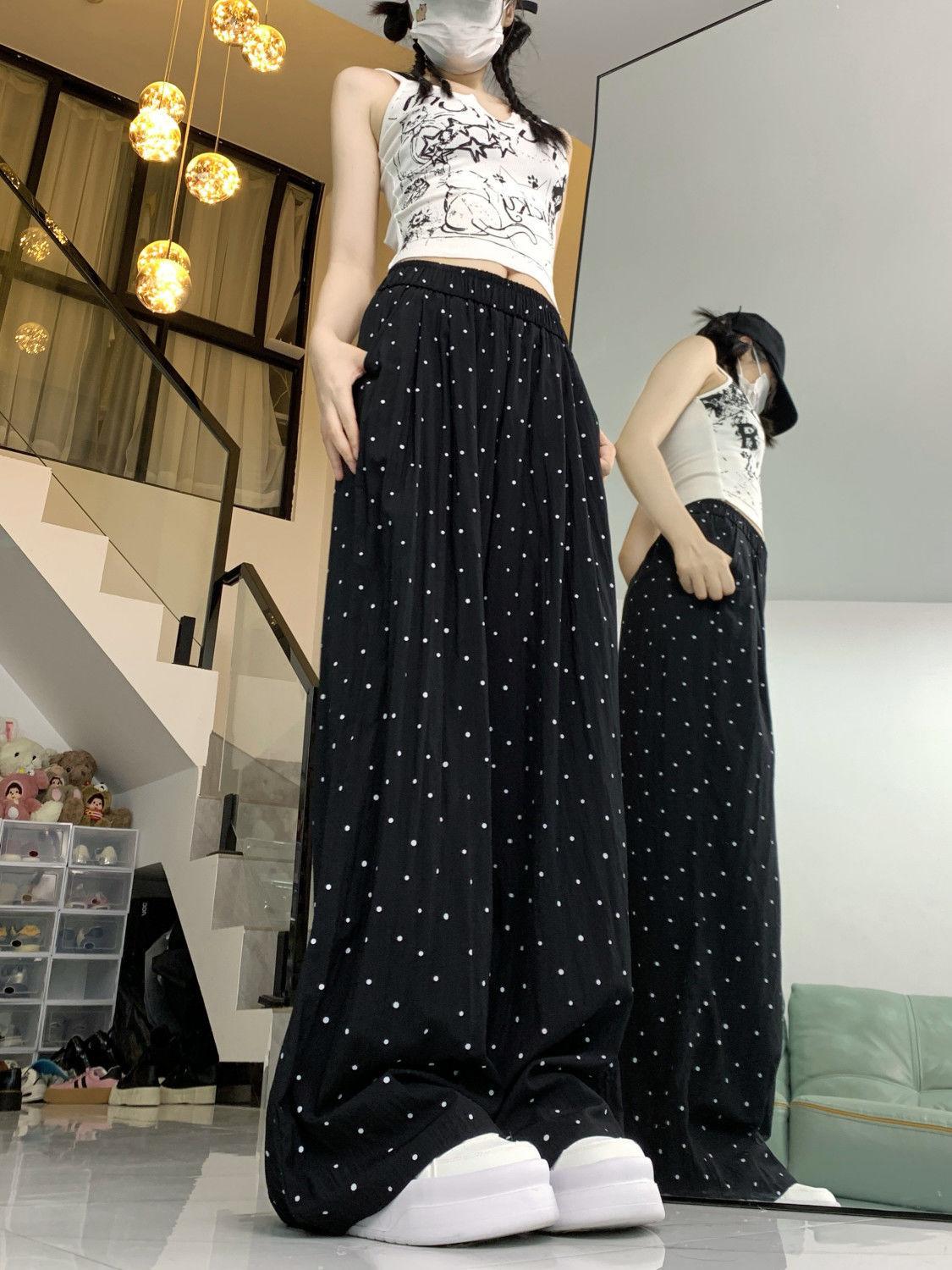 Pantalones Yamamoto de seda de hielo con lunares y ondas para mujer, de verano, finos, holgados, combinables, adelgazantes, casuales, de pierna recta y ancha.
