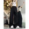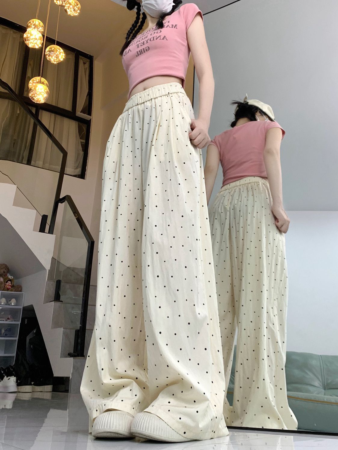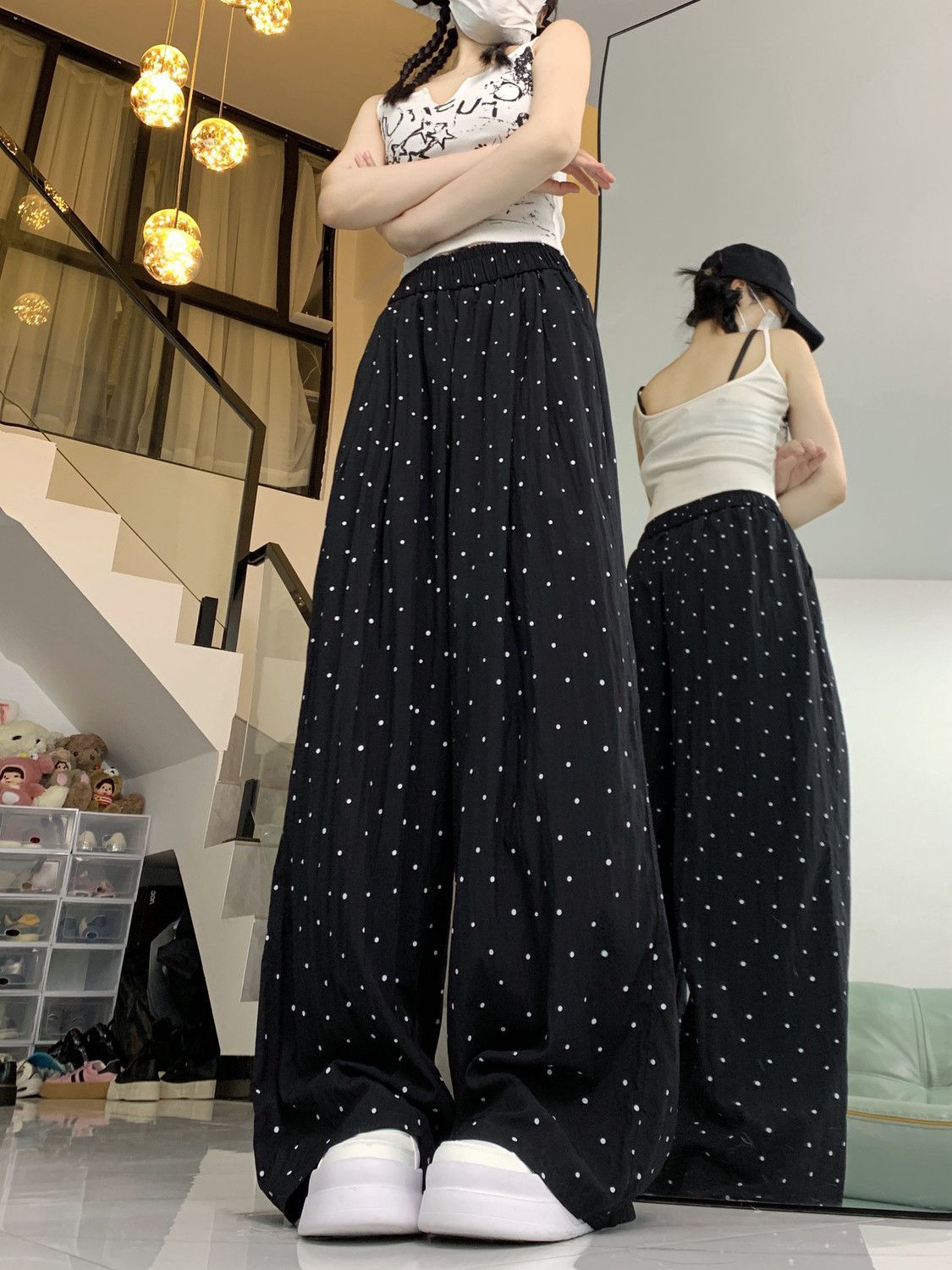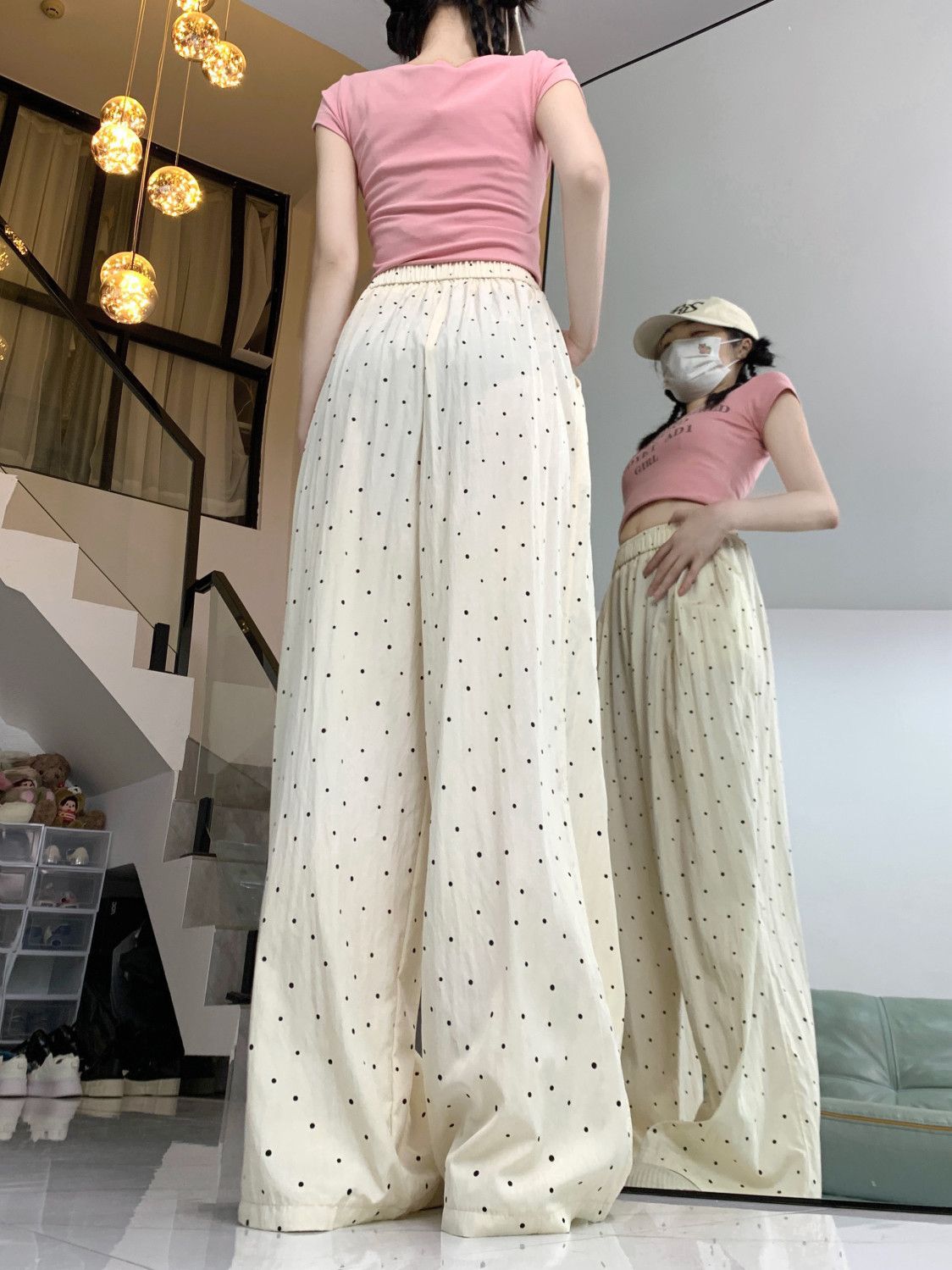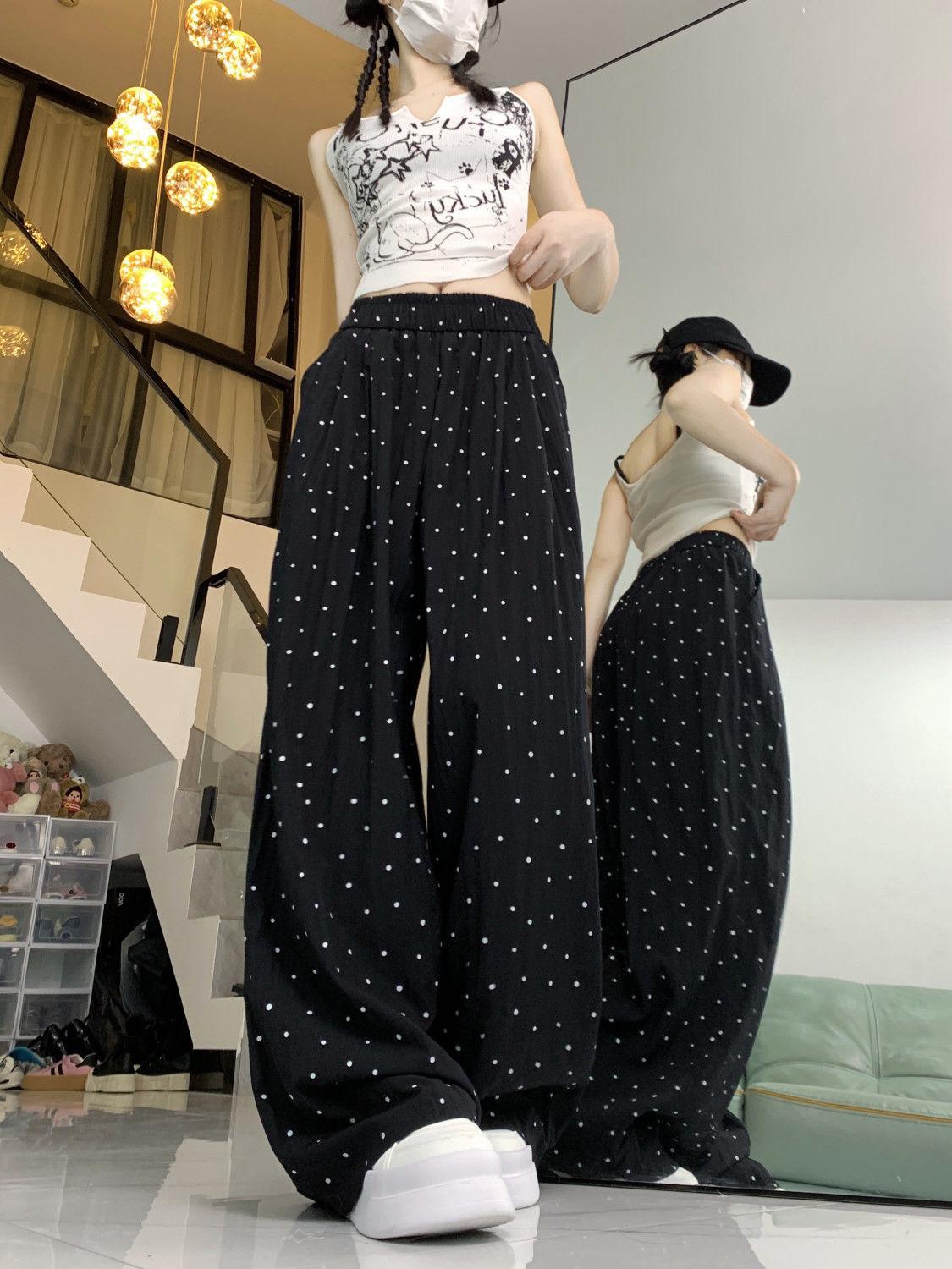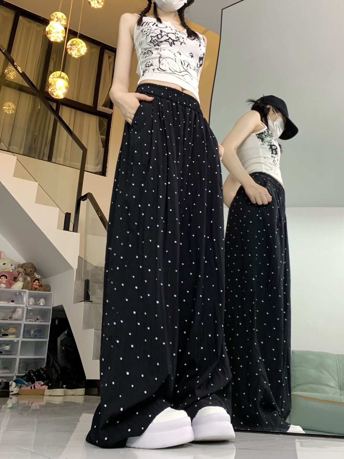 Pantalones Yamamoto de seda de hielo con lunares y ondas para mujer, de verano, finos, holgados, combinables, adelgazantes, casuales, de pierna recta y ancha.