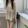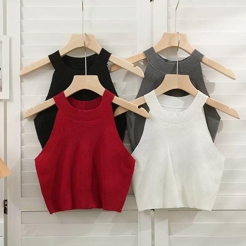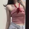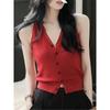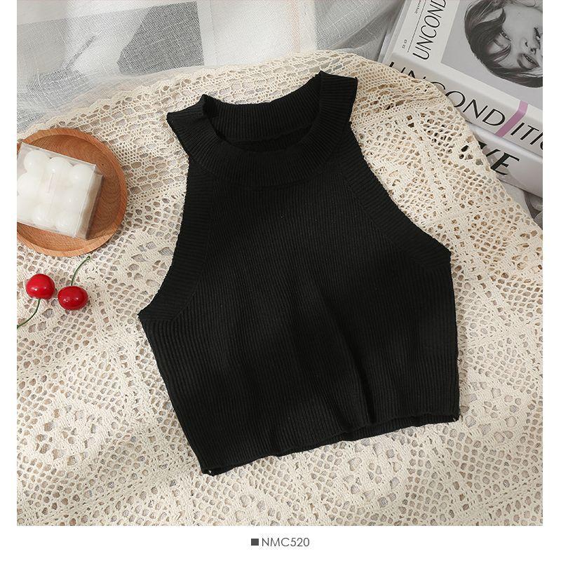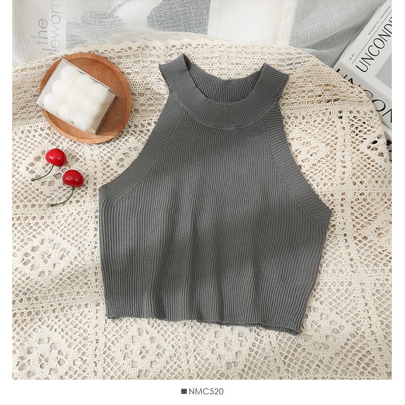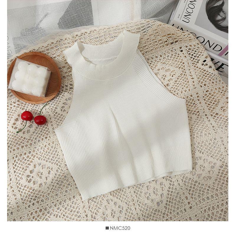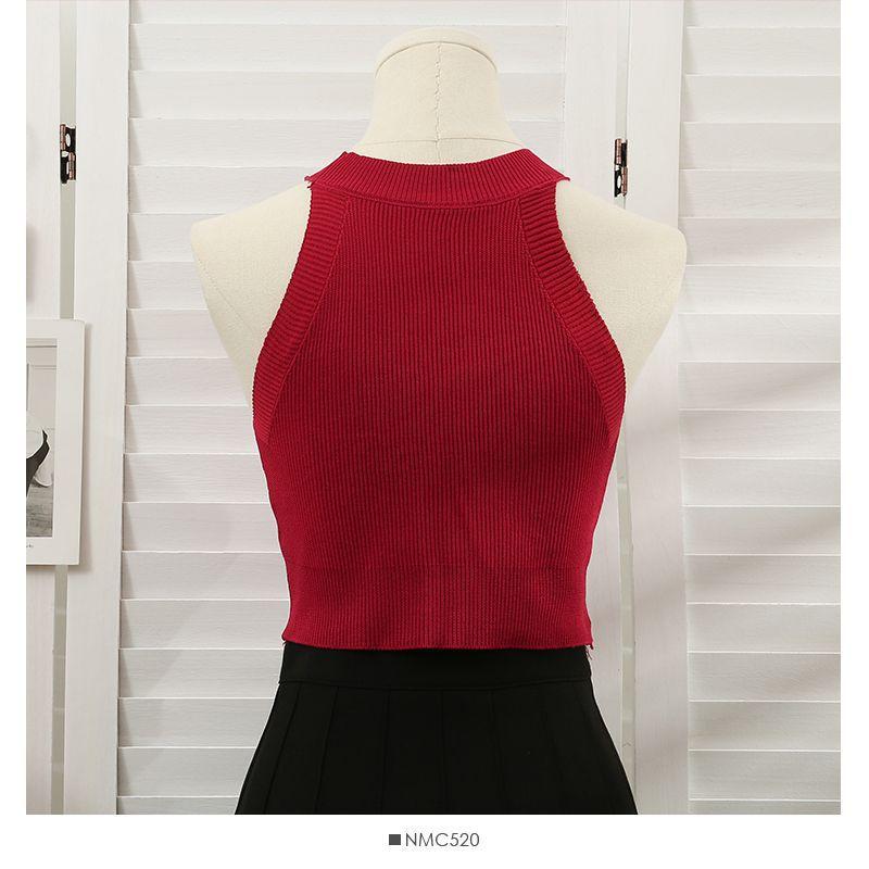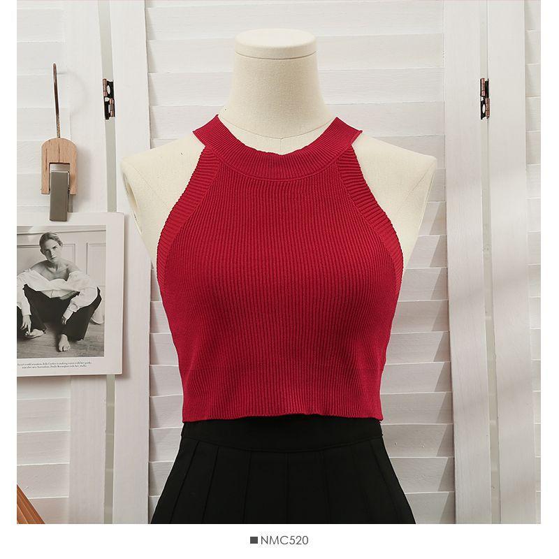 Camisola de estilo Spice Girl vintage estilo cuello halter de Hong Kong, chaleco de punto de verano para exterior, sin mangas, nuevo, entallado, top corto