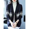 Chaqueta Larga de Suéter Jacquard Versátil Estilo Lazy Europeo y Americano Tejido Suelto Otoño e Invierno 2025 Nuevo Cárdigan Tejido para Mujer