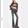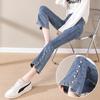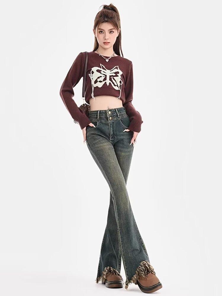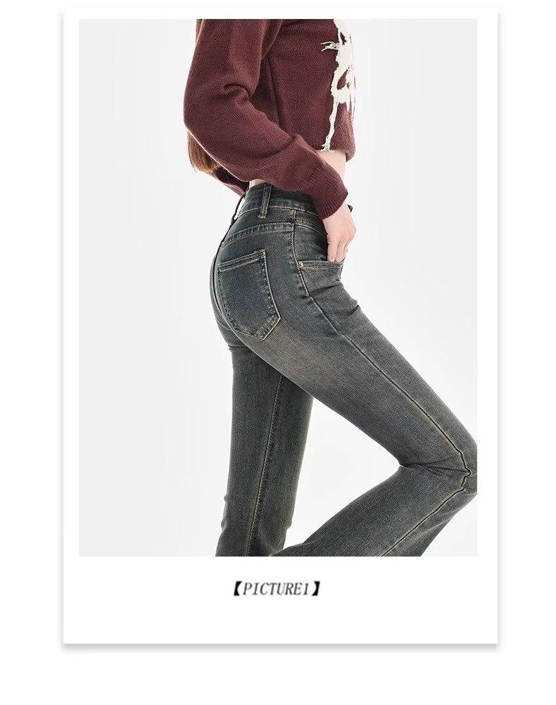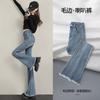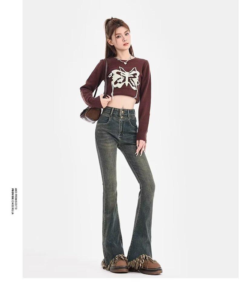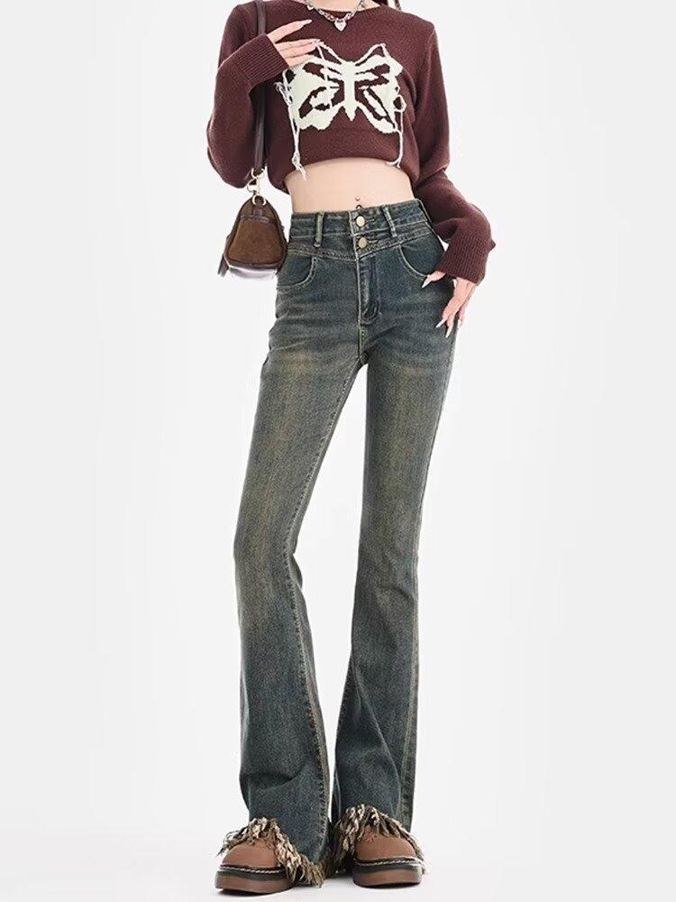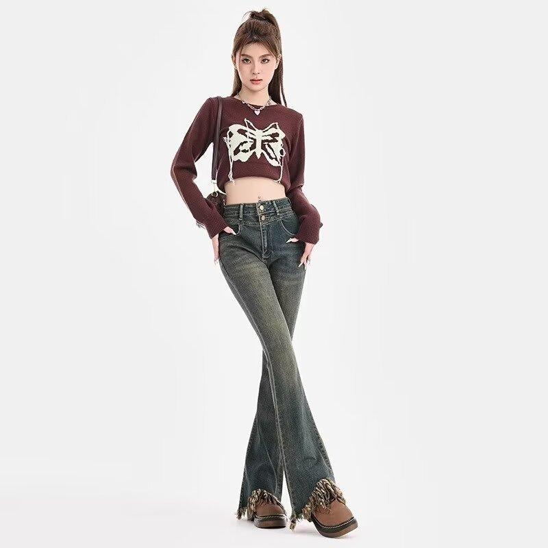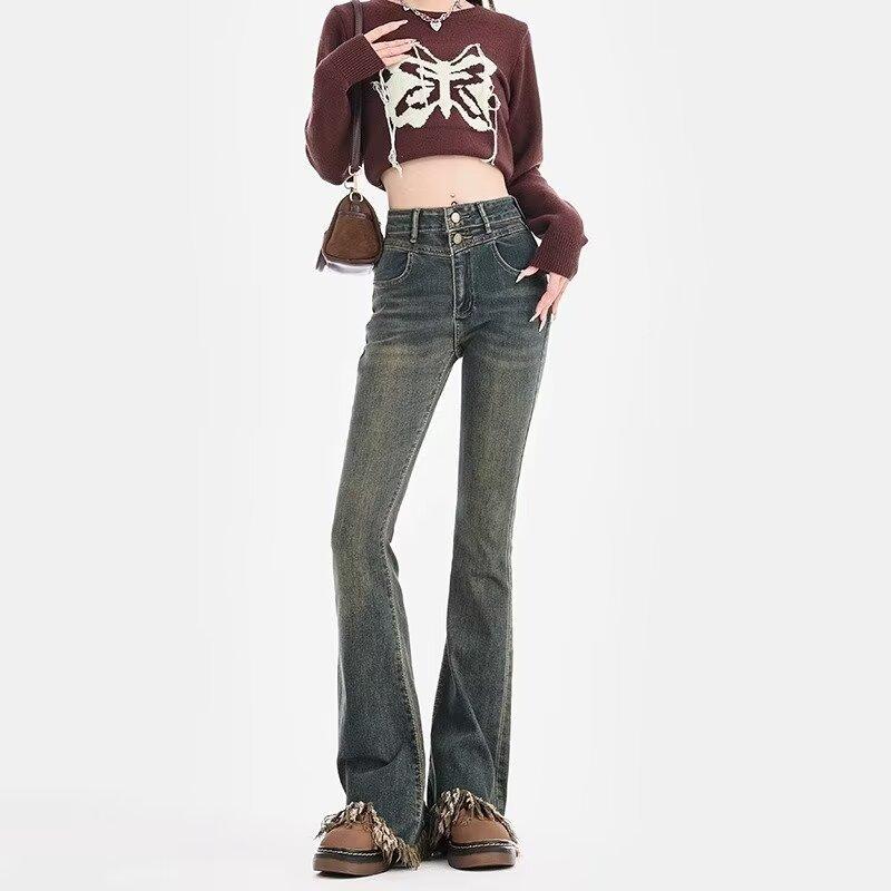 Vaqueros acampanados de cintura alta para mujer, diseño nuevo de primavera y otoño, pantalones de herradura deshilachados con borlas vintage que adelgazan.