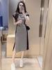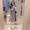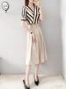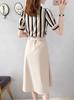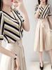 Vestido a rayas de dos piezas para mujer, verano 2023, largo medio, nuevo, elegante, a la moda, informal, adelgazante, con falda de cintura alta