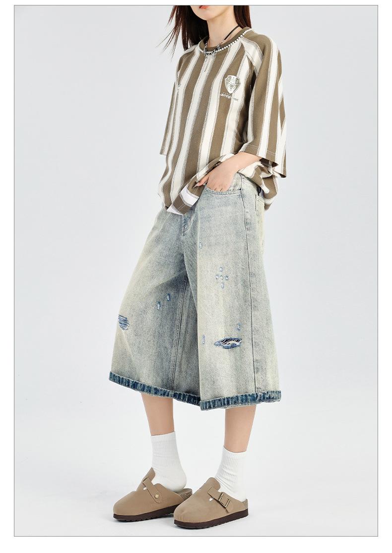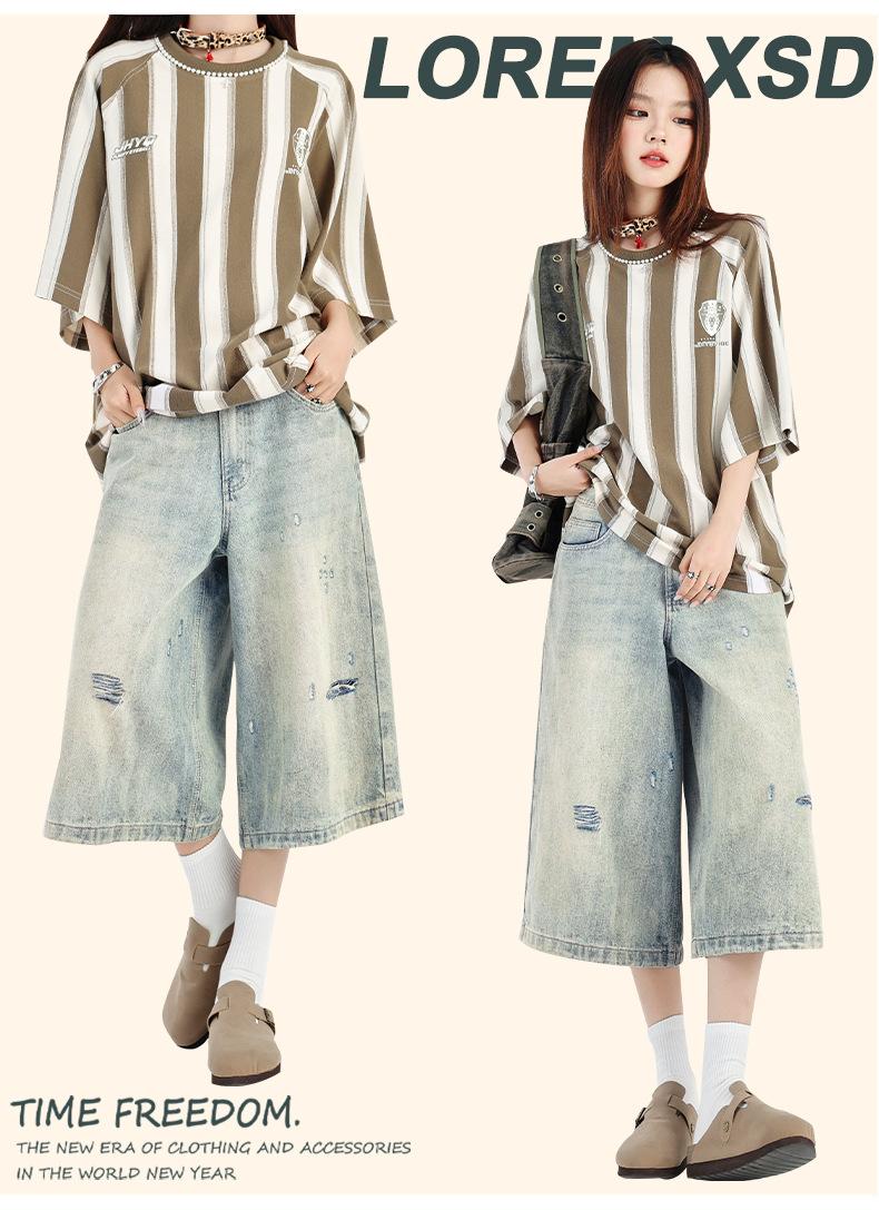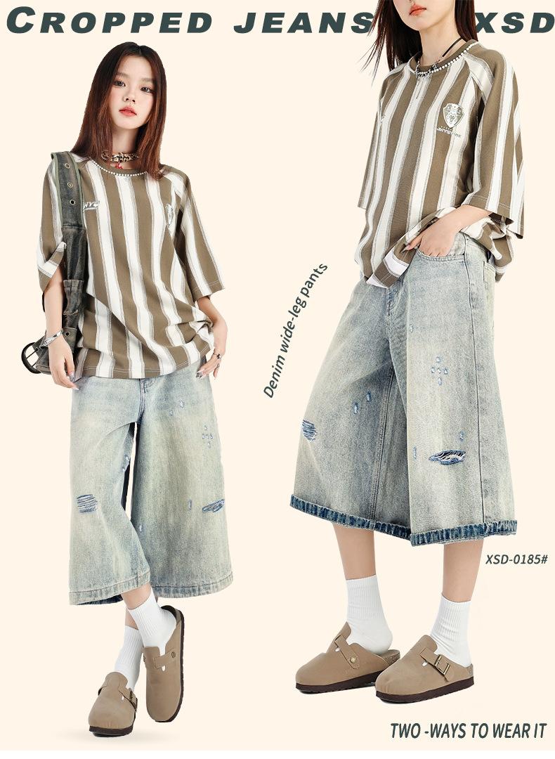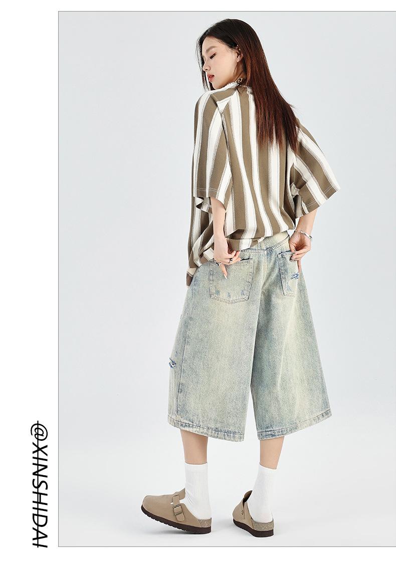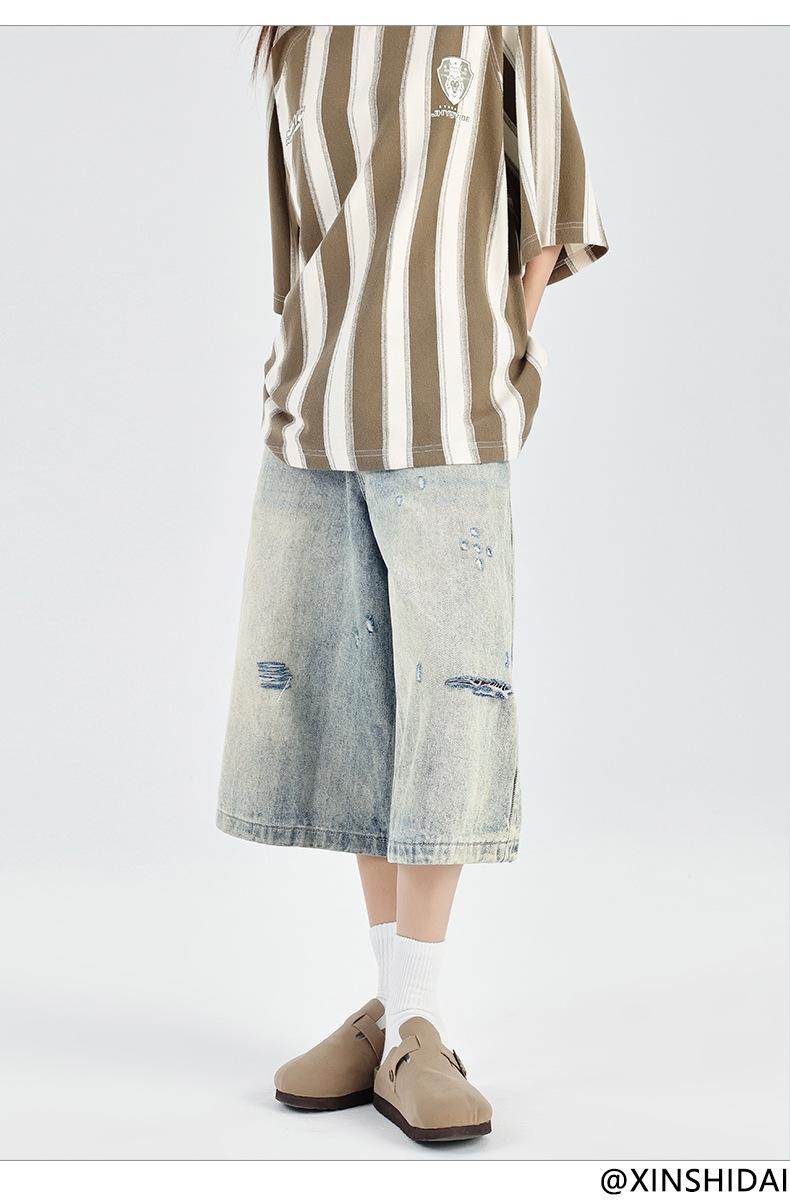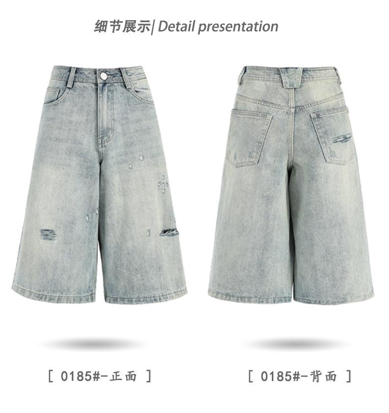 ¡24º día! Estilo Callejero Americano | Pantalones Cortos Vintage Rotos Unisex Jeans Sueltos de Pierna Ancha
