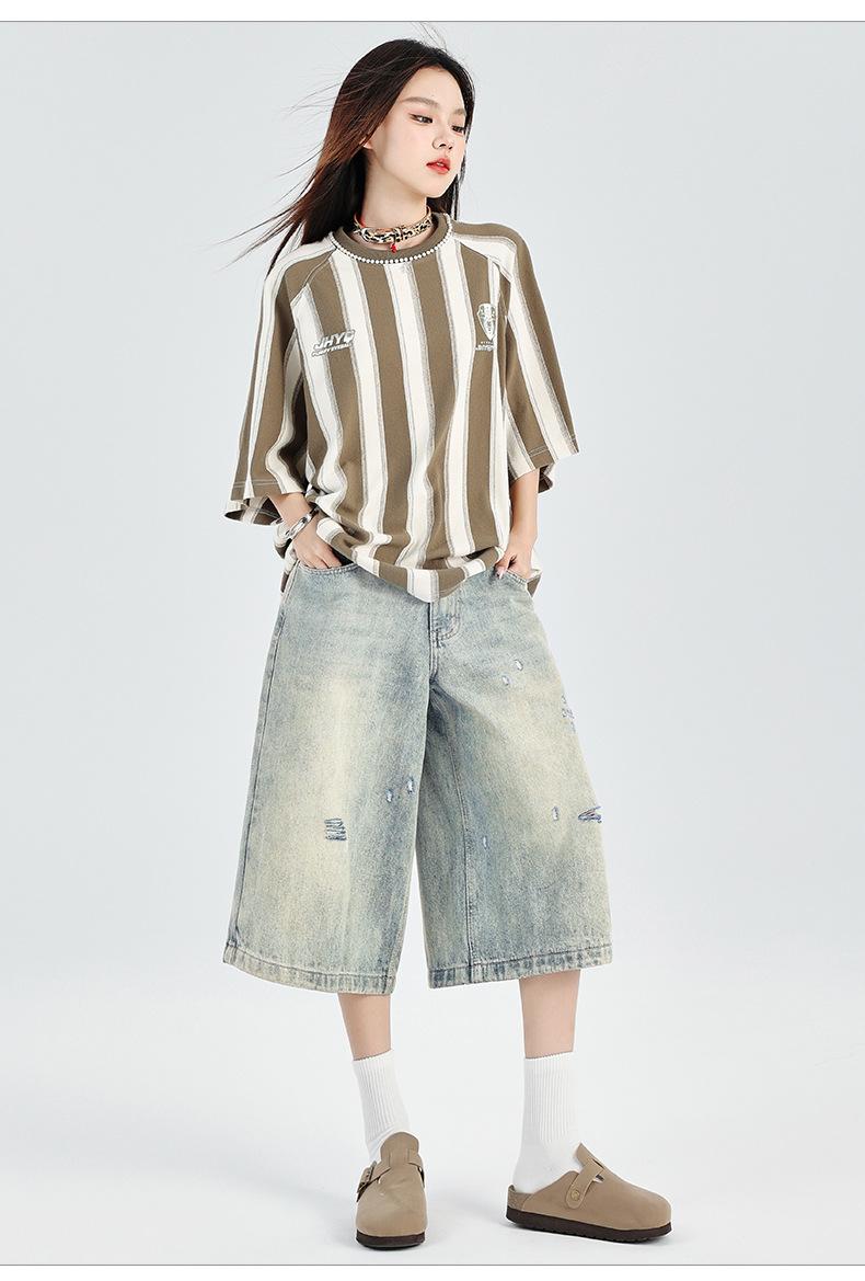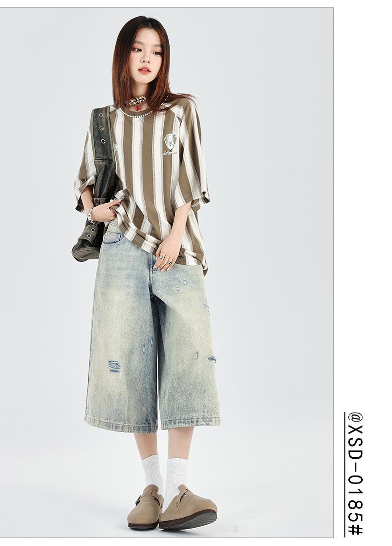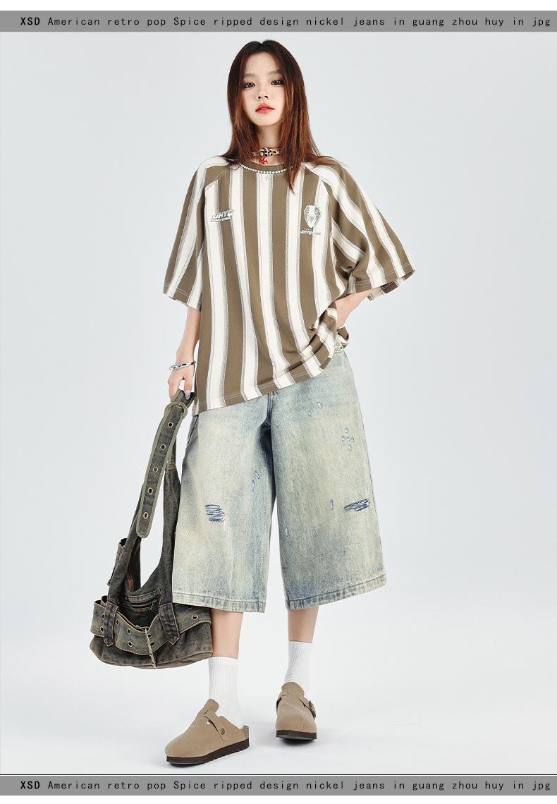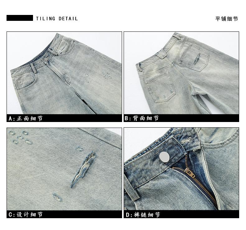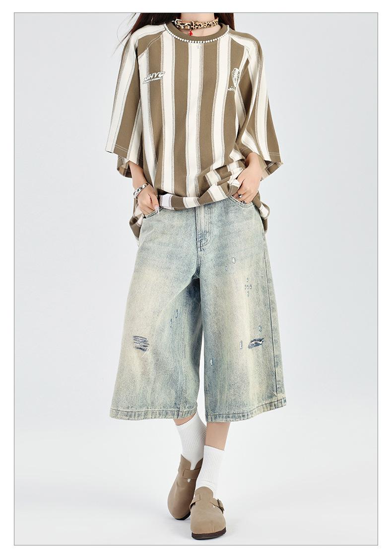 ¡24º día! Estilo Callejero Americano | Pantalones Cortos Vintage Rotos Unisex Jeans Sueltos de Pierna Ancha