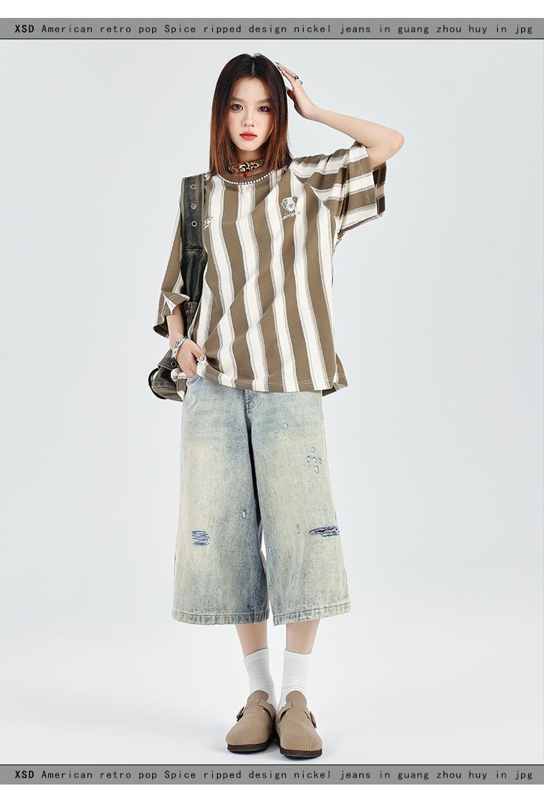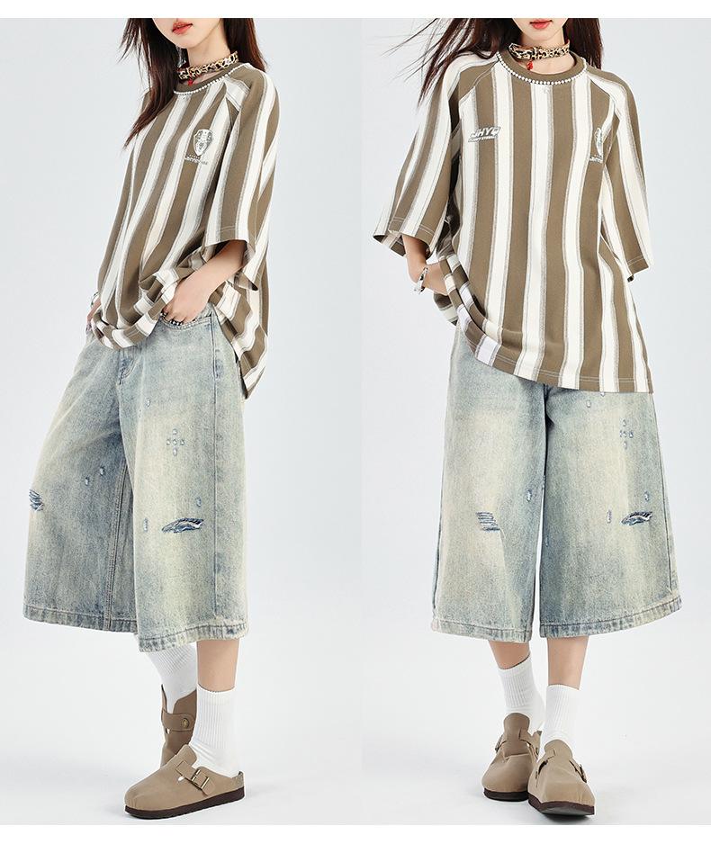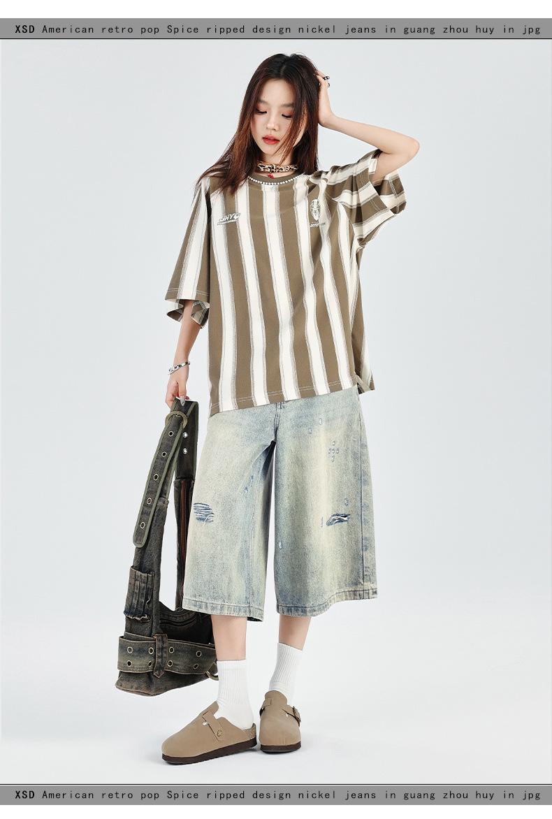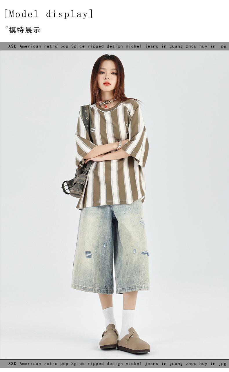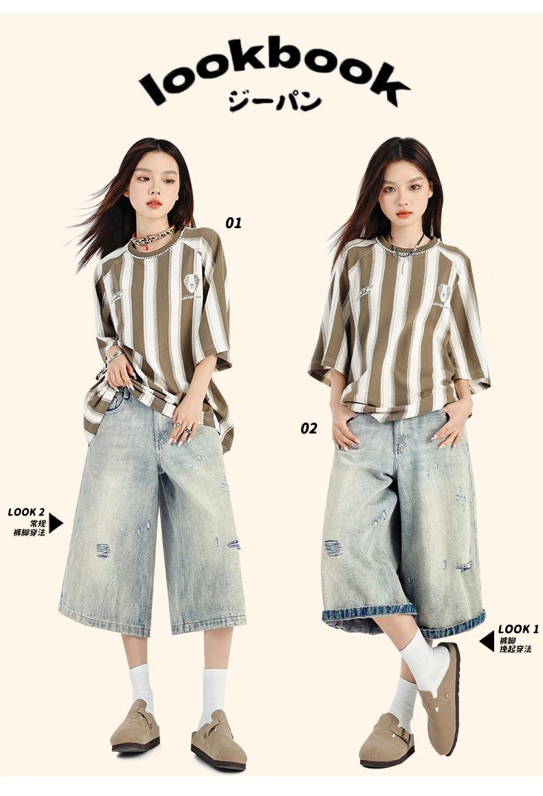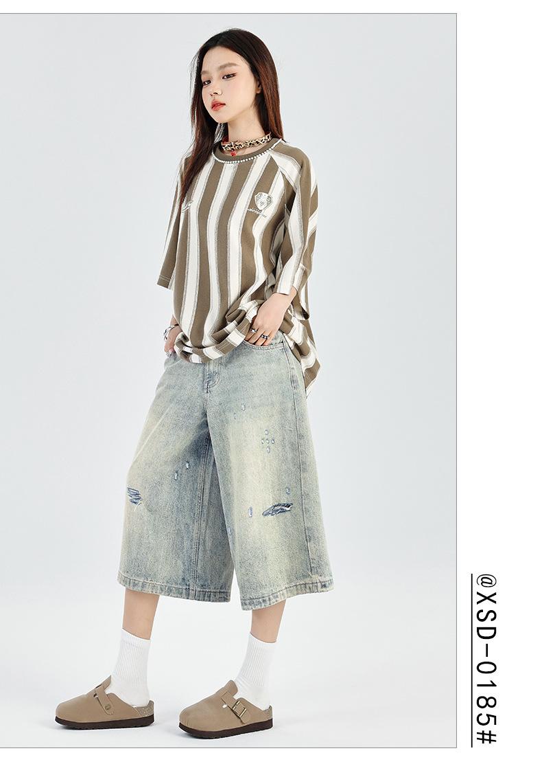 ¡24º día! Estilo Callejero Americano | Pantalones Cortos Vintage Rotos Unisex Jeans Sueltos de Pierna Ancha