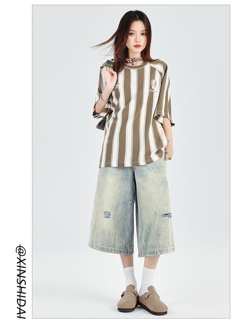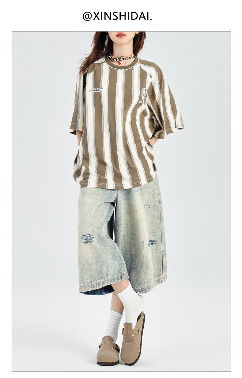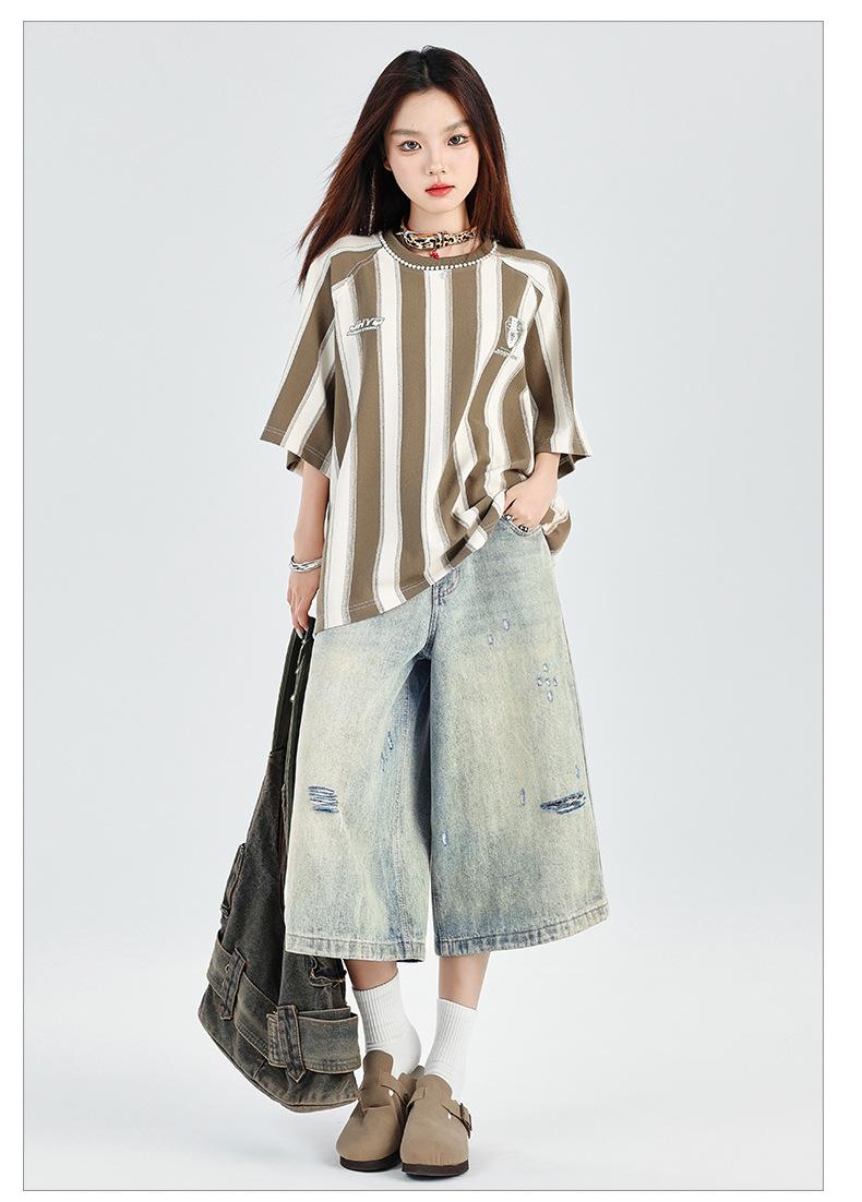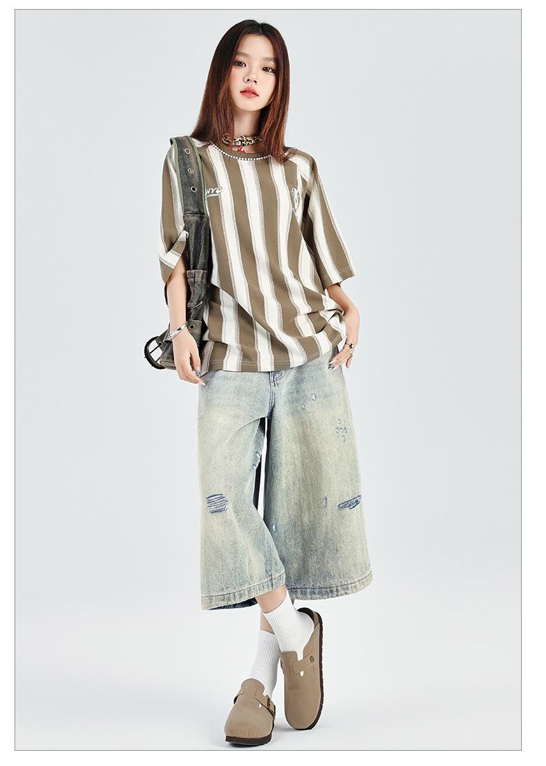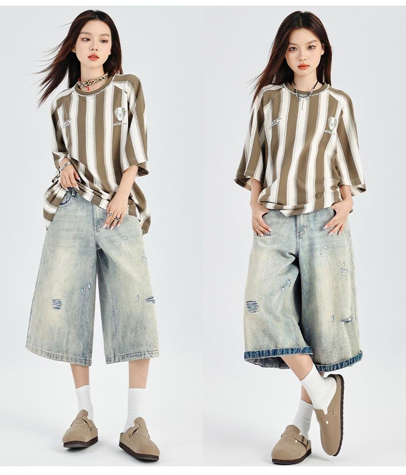 ¡24º día! Estilo Callejero Americano | Pantalones Cortos Vintage Rotos Unisex Jeans Sueltos de Pierna Ancha