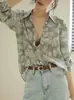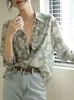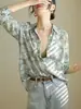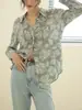 Camisa de seda estampada lisa para mujer, de primavera y verano de 2024, de manga larga, holgada, sencilla, para ir al trabajo y a la moda.