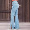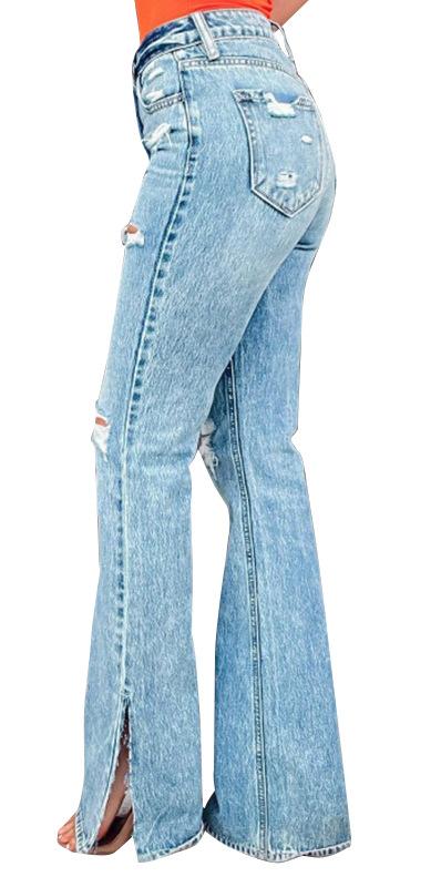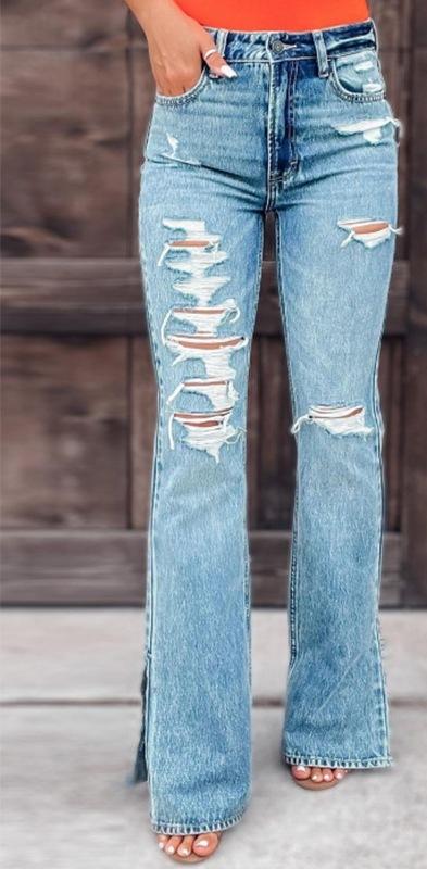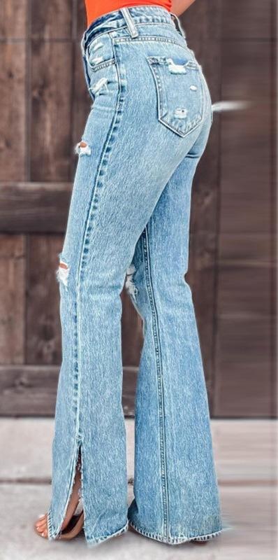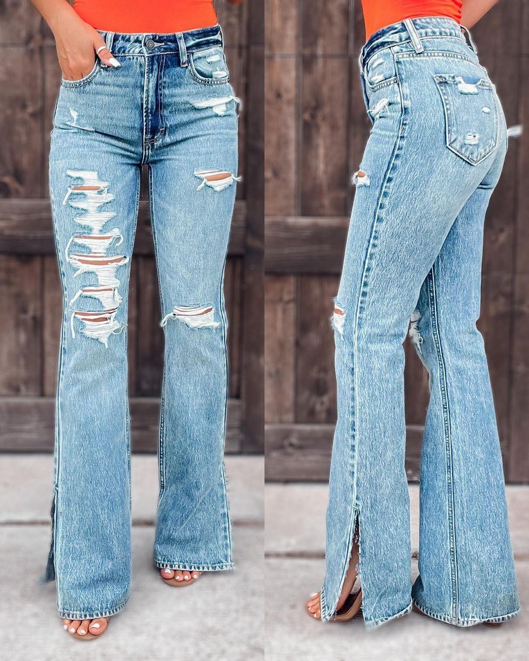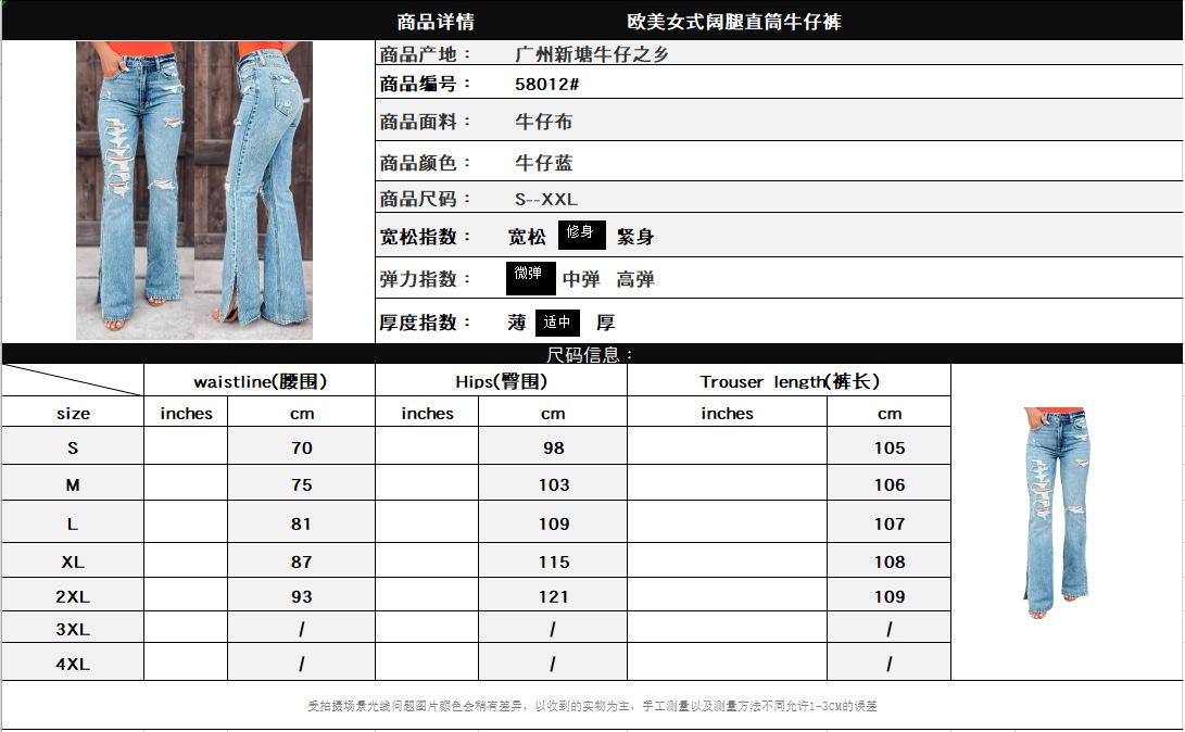 Directo de fábrica 2025 nuevo comercio exterior transfronterizo europeo y americano jeans de dama cintura alta pantalones rotos pantalones micro acampanados