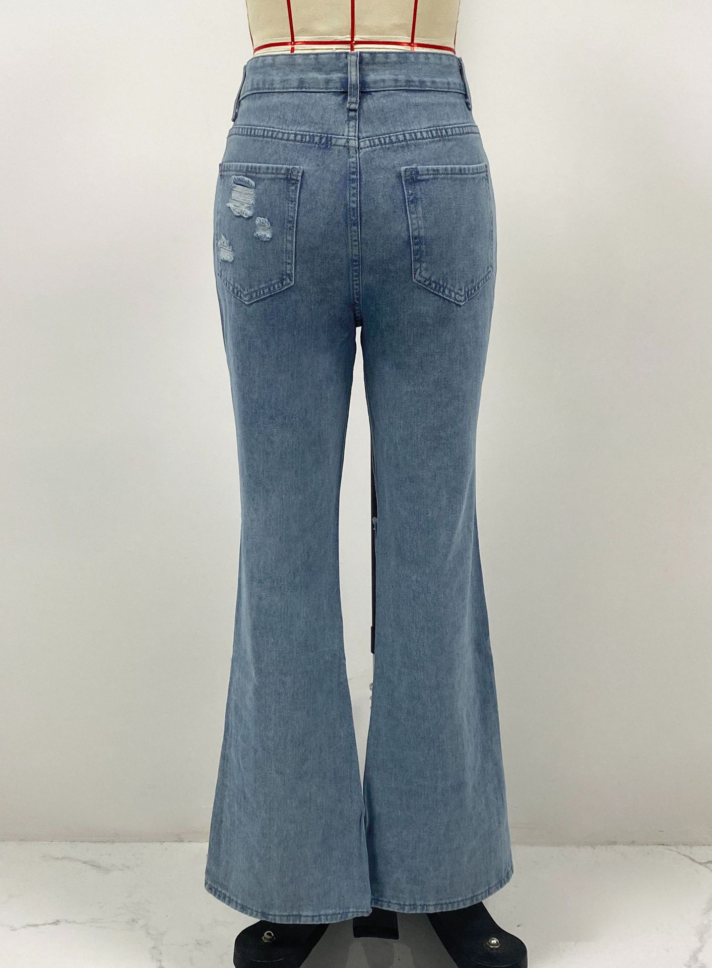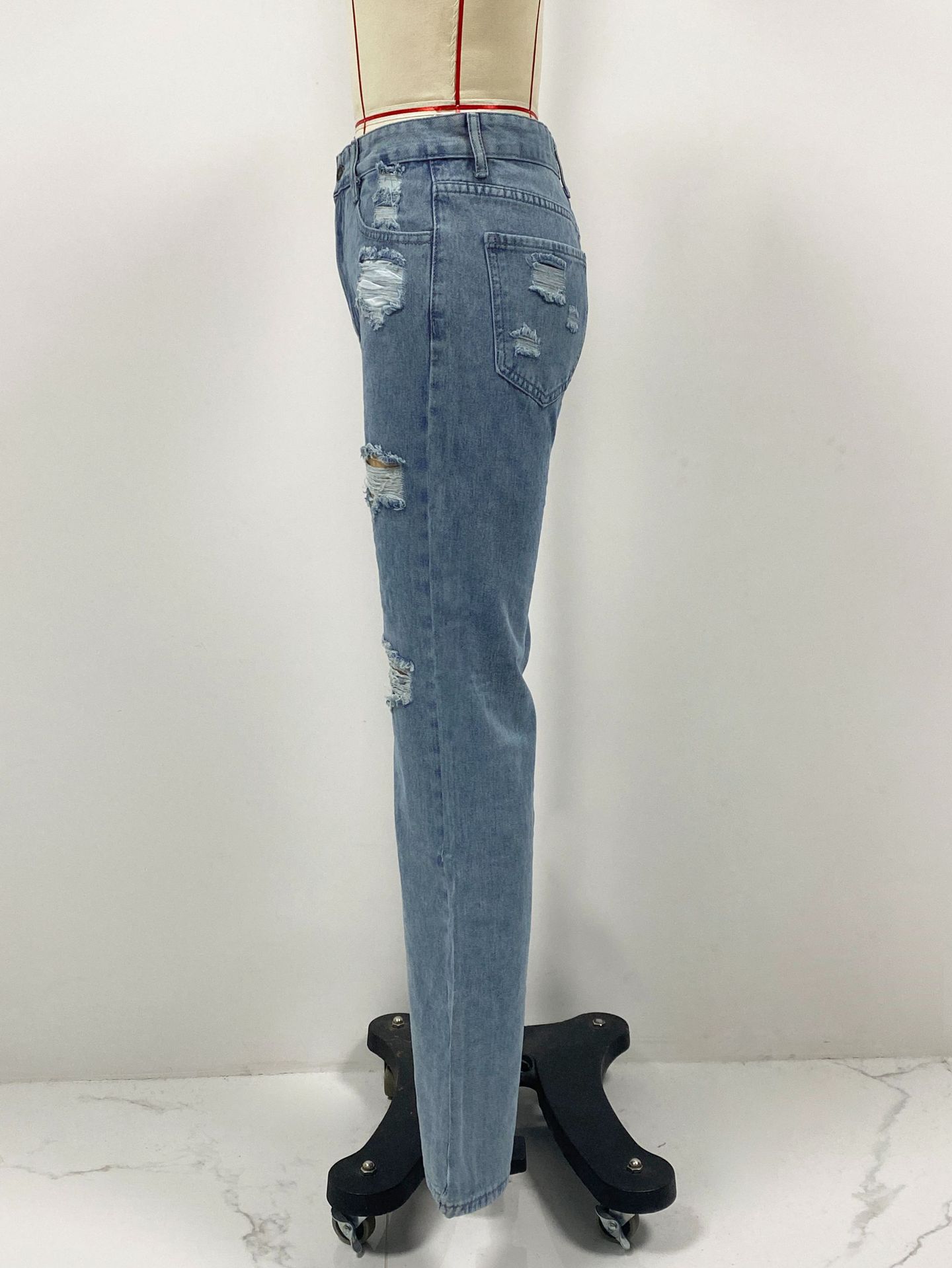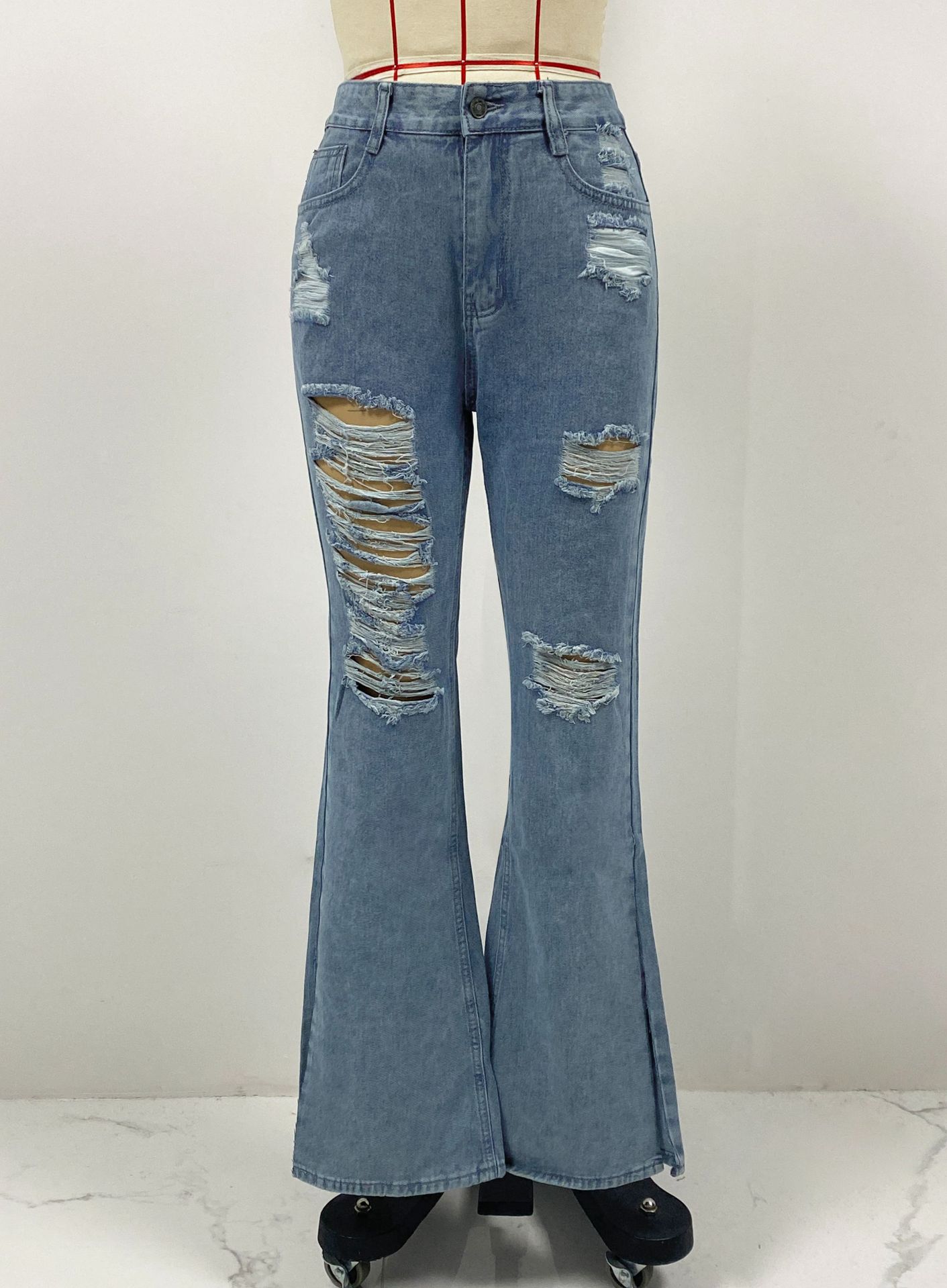 Directo de fábrica 2025 nuevo comercio exterior transfronterizo europeo y americano jeans de dama cintura alta pantalones rotos pantalones micro acampanados