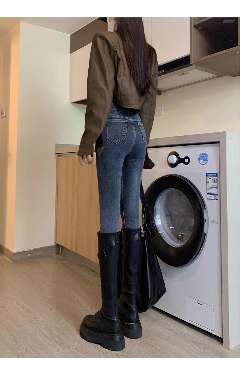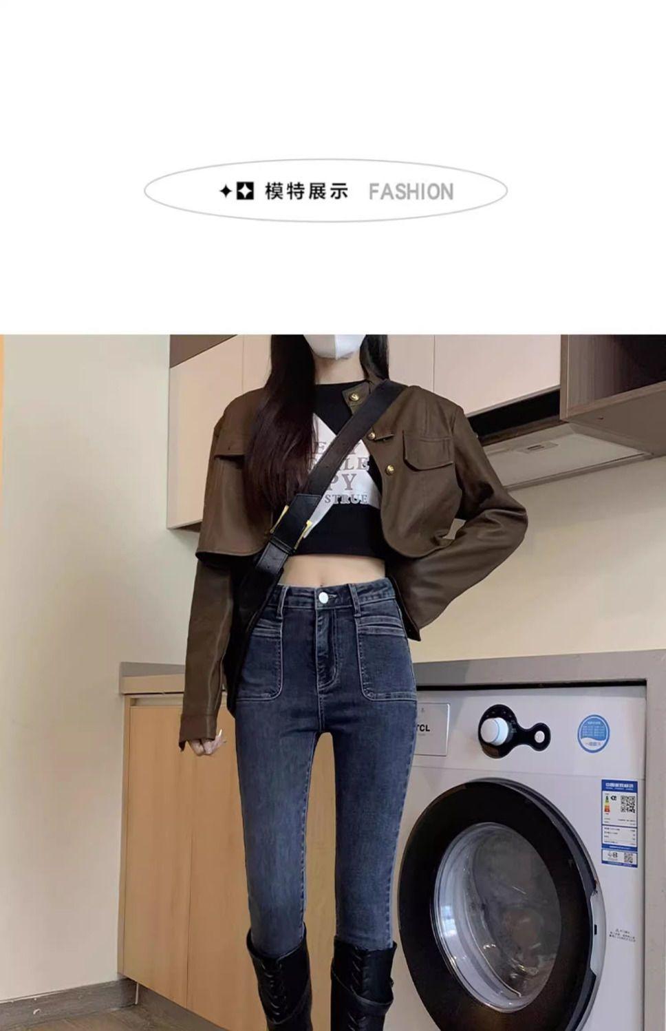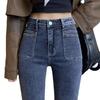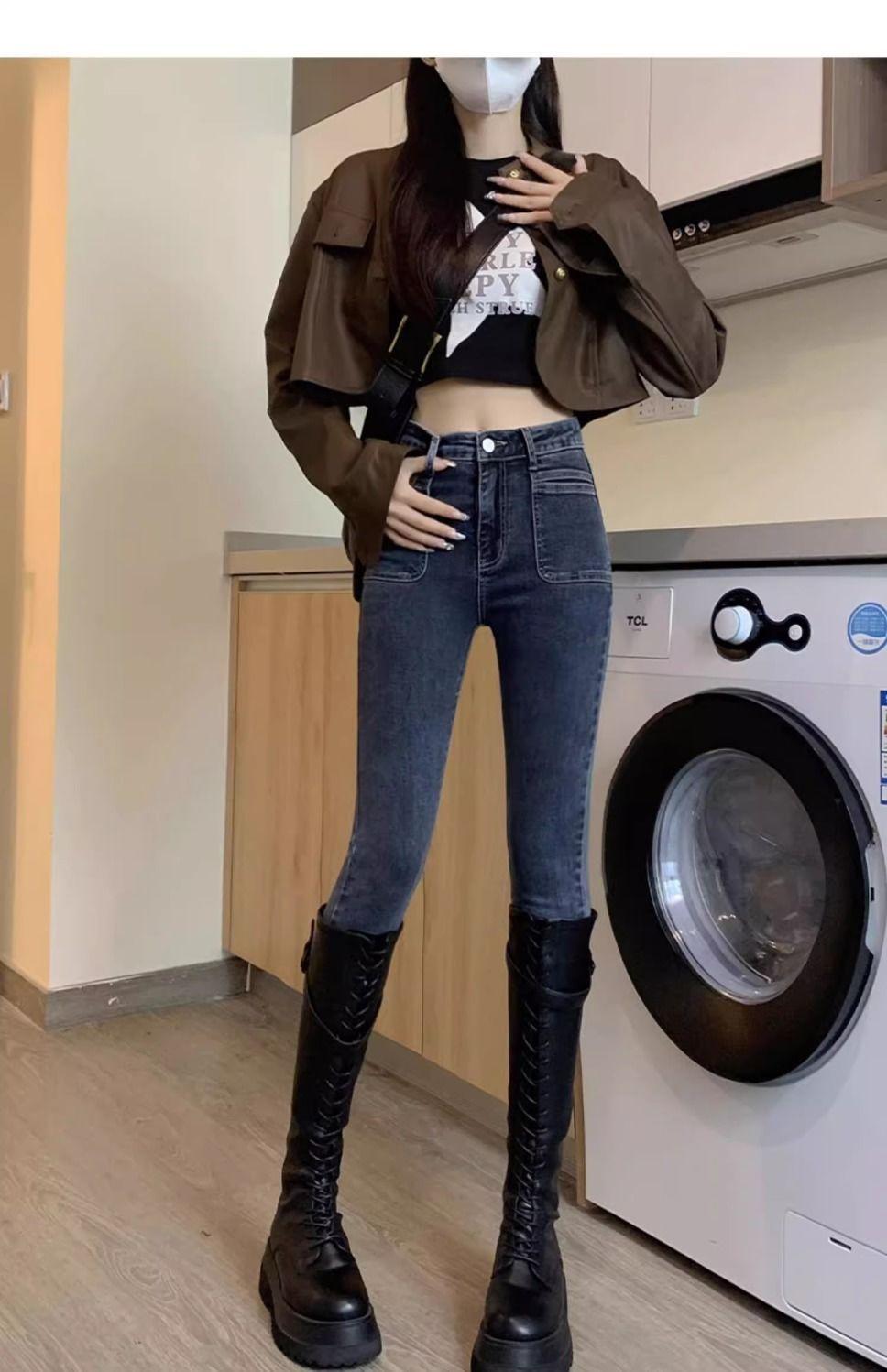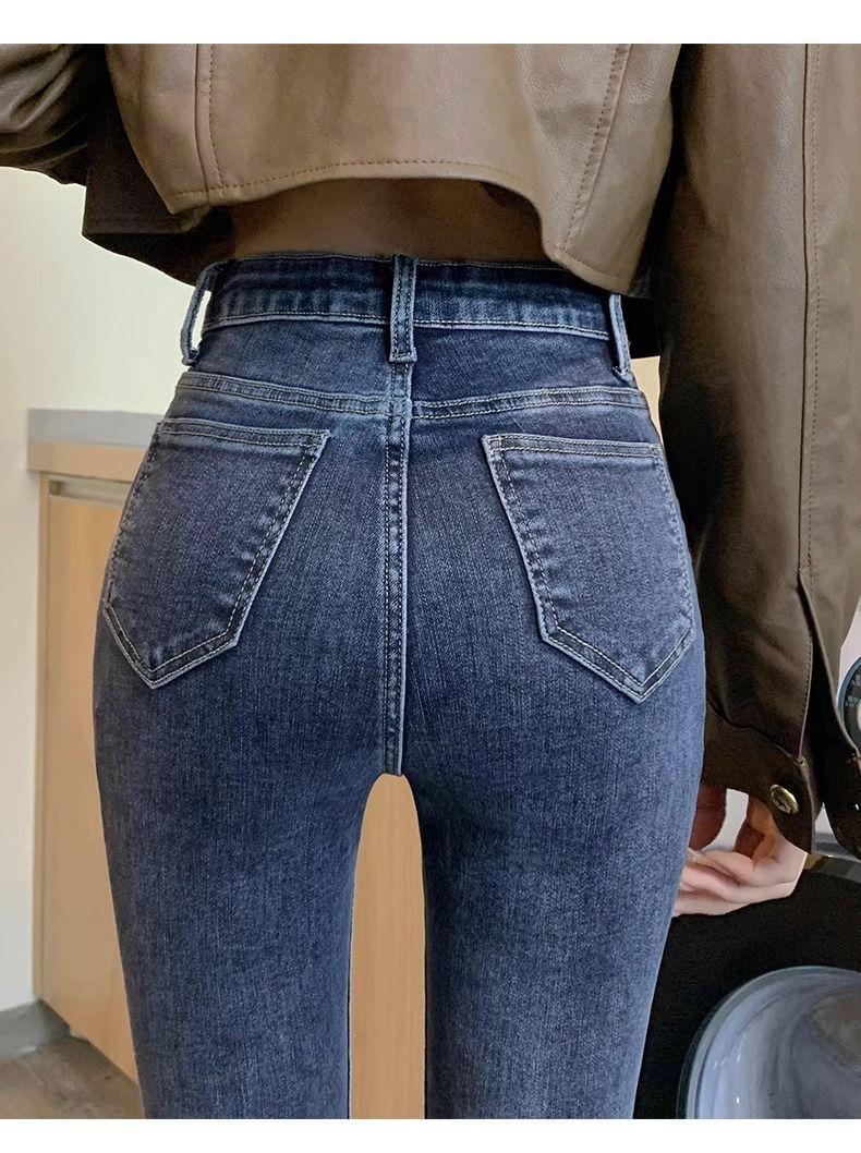 Diseño jeans pitillo azul grisáceo para mujer 2024 primavera nuevo nicho cintura alta adelgazantes pitillo pantalones lápiz