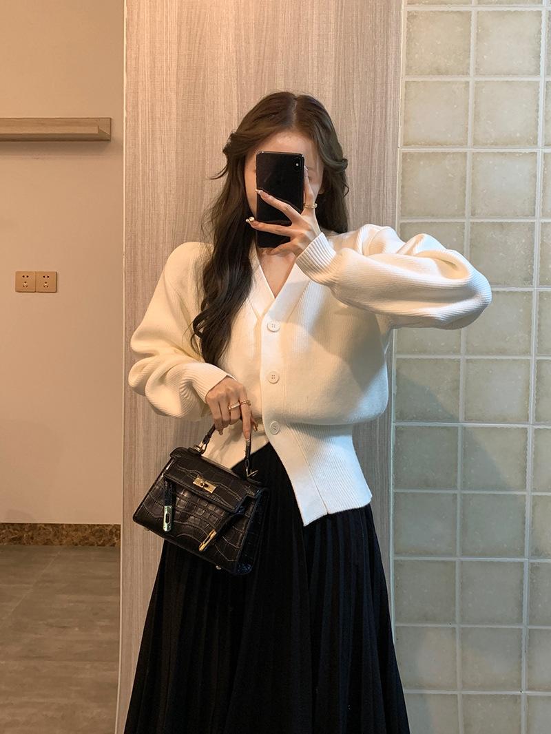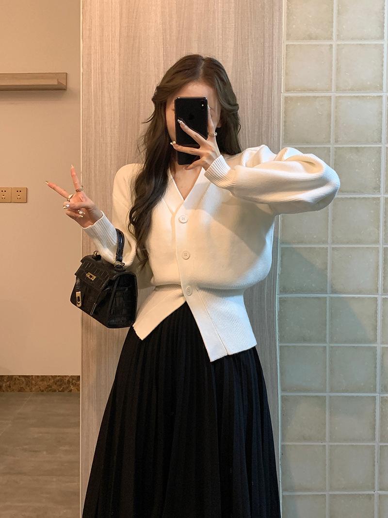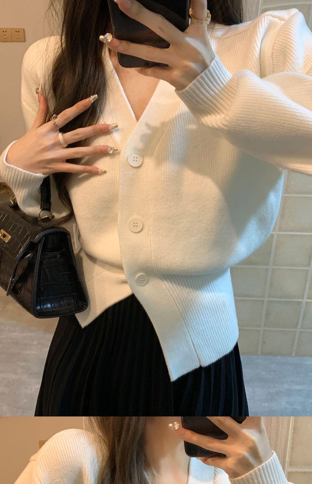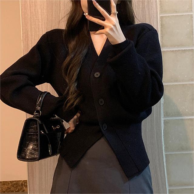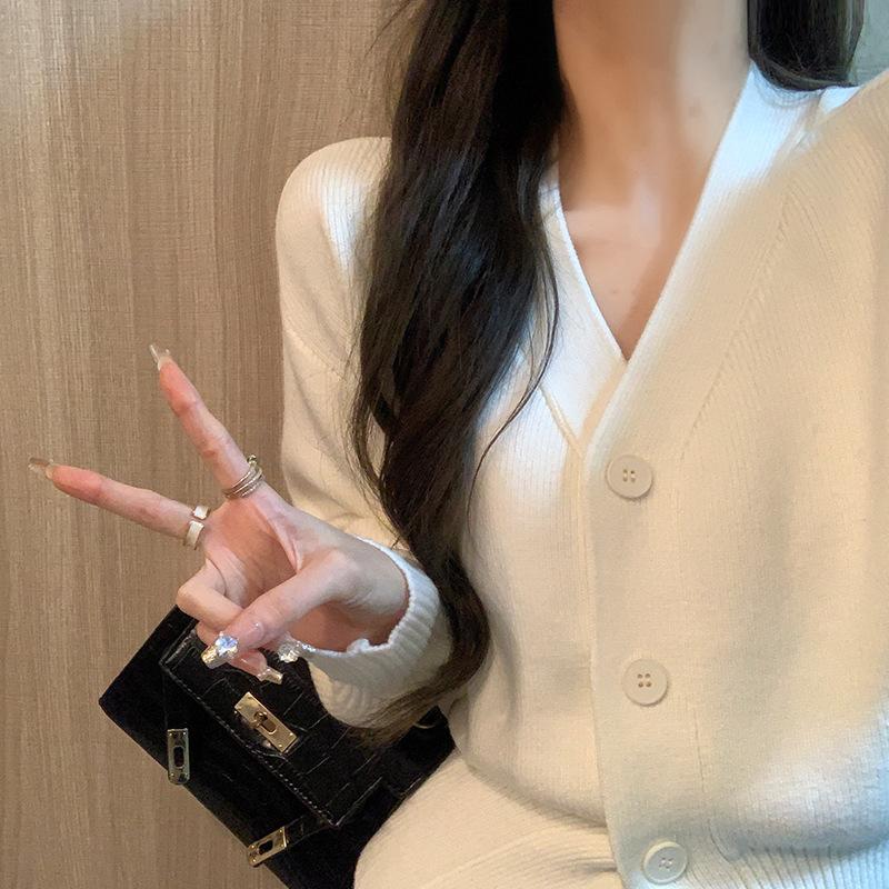Suéter de nicho estilo coreano otoño e invierno Nuevo cárdigan de punto con cuello en V abrigo exterior de diseño de manga larga ajustado para mujer