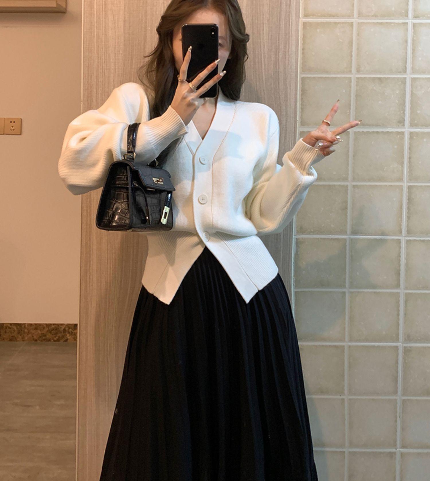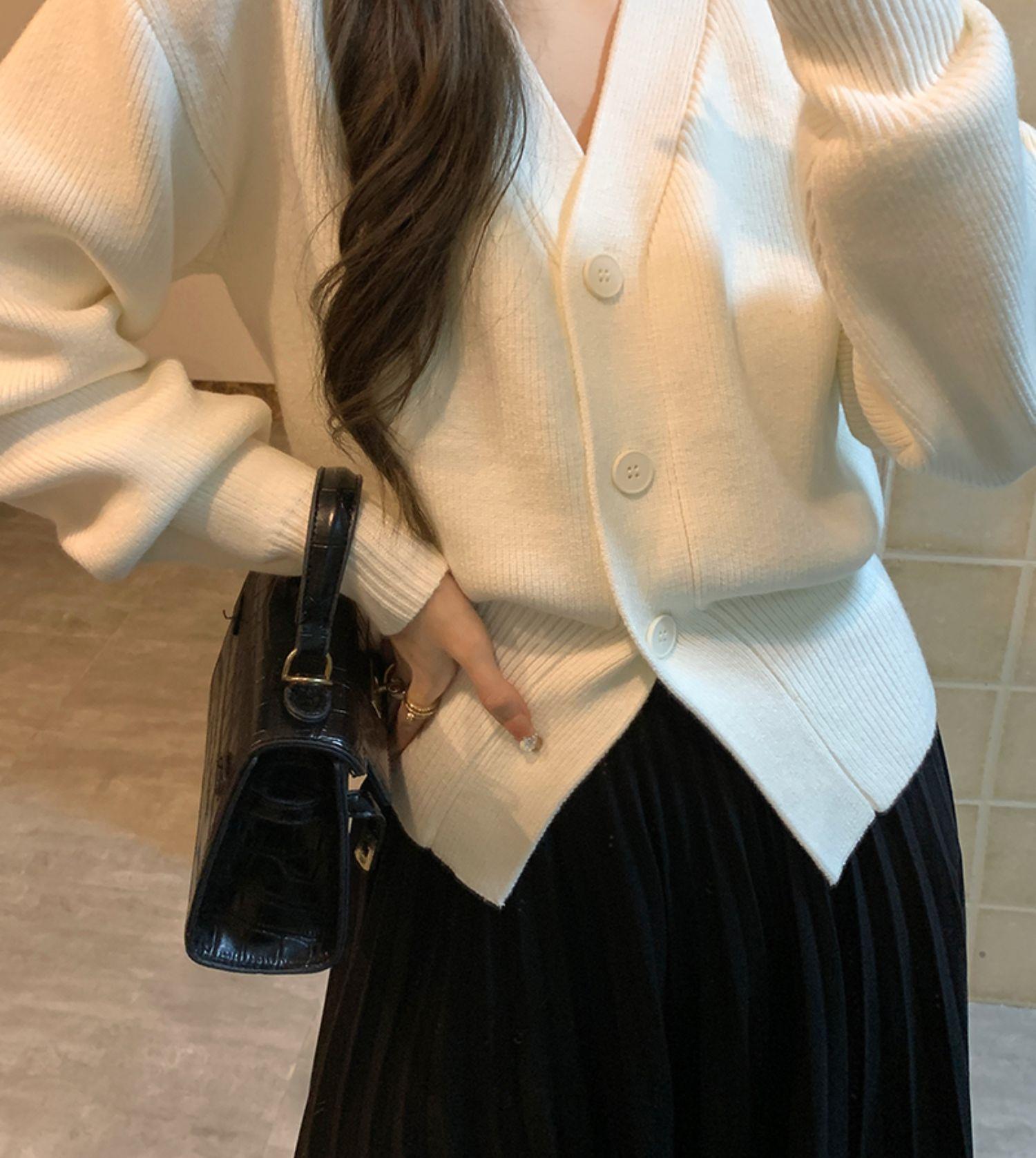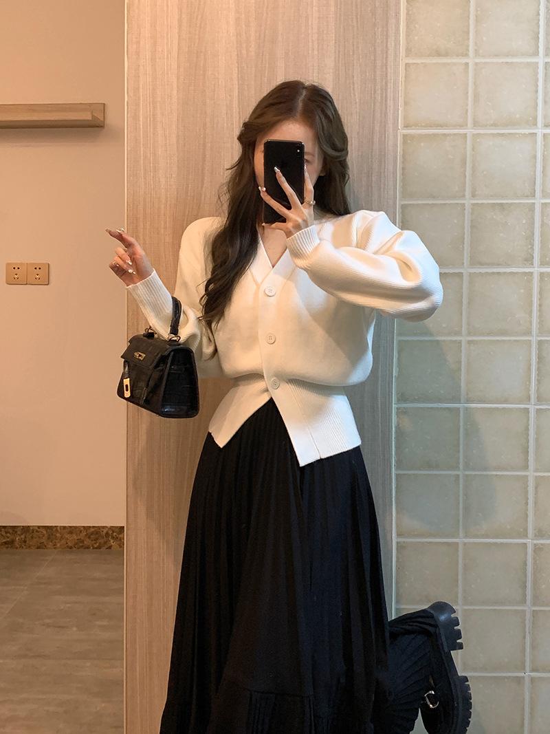 Suéter de nicho estilo coreano otoño e invierno Nuevo cárdigan de punto con cuello en V abrigo exterior de diseño de manga larga ajustado para mujer