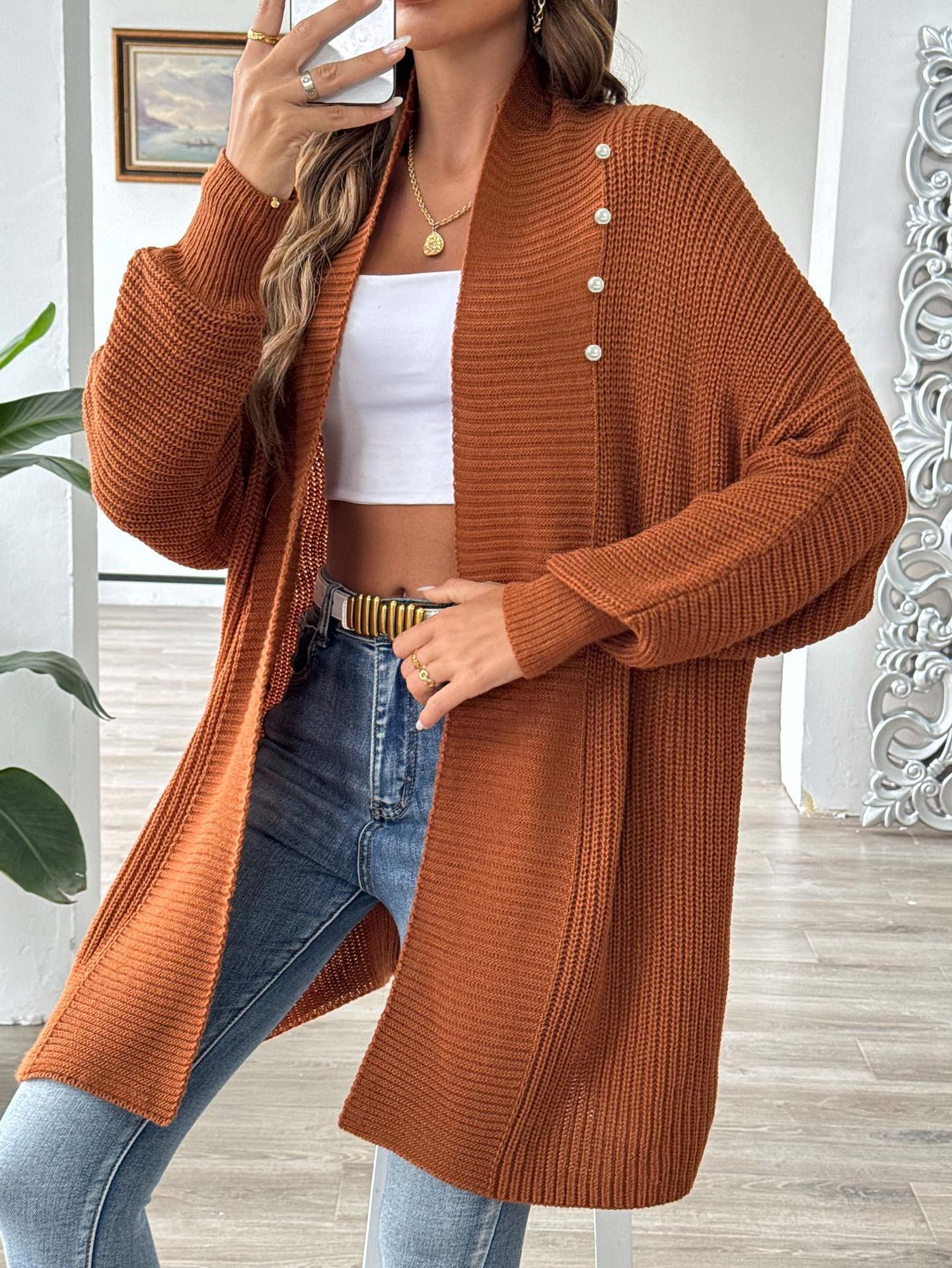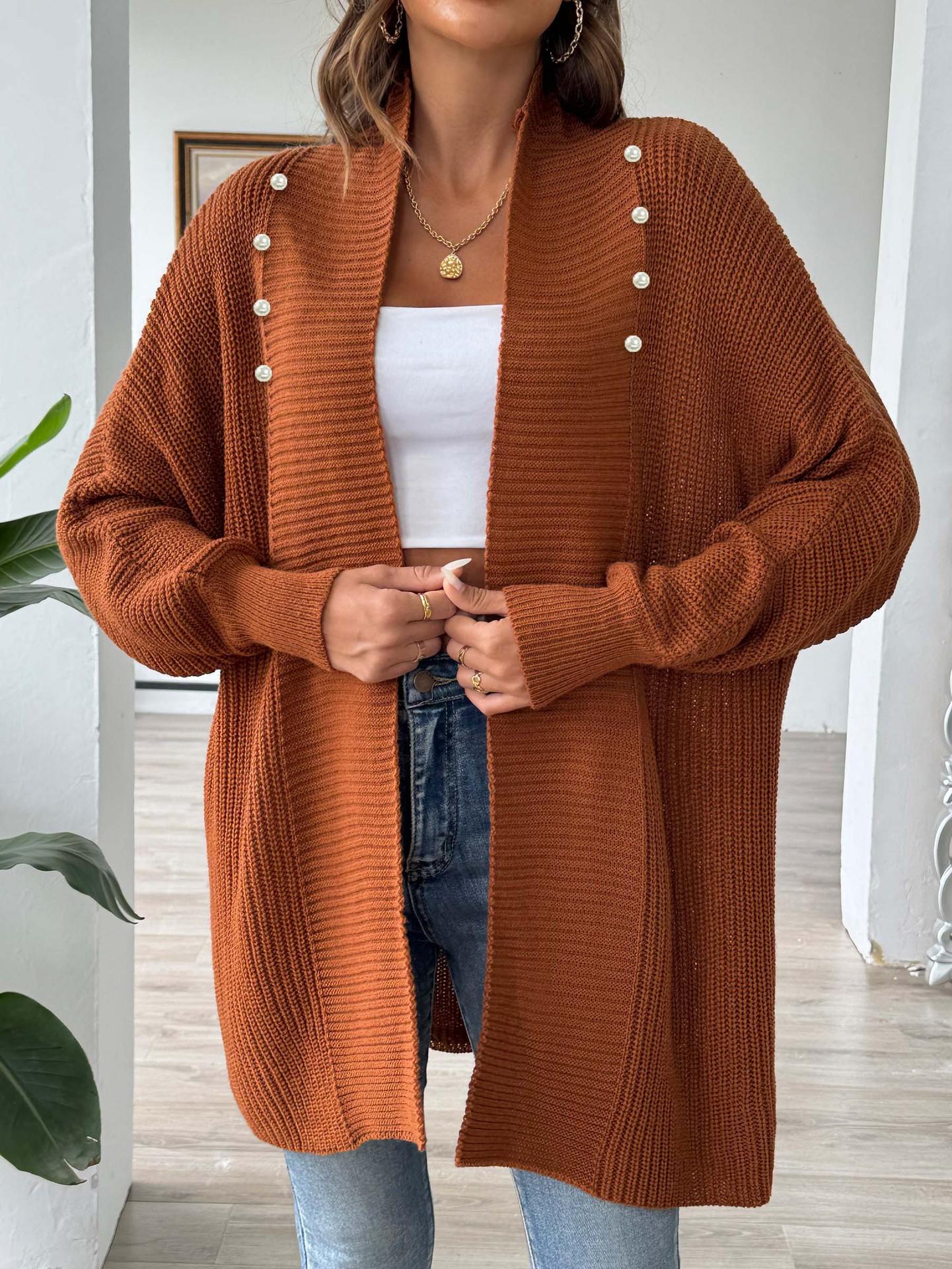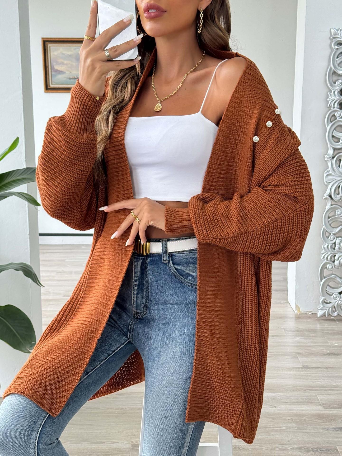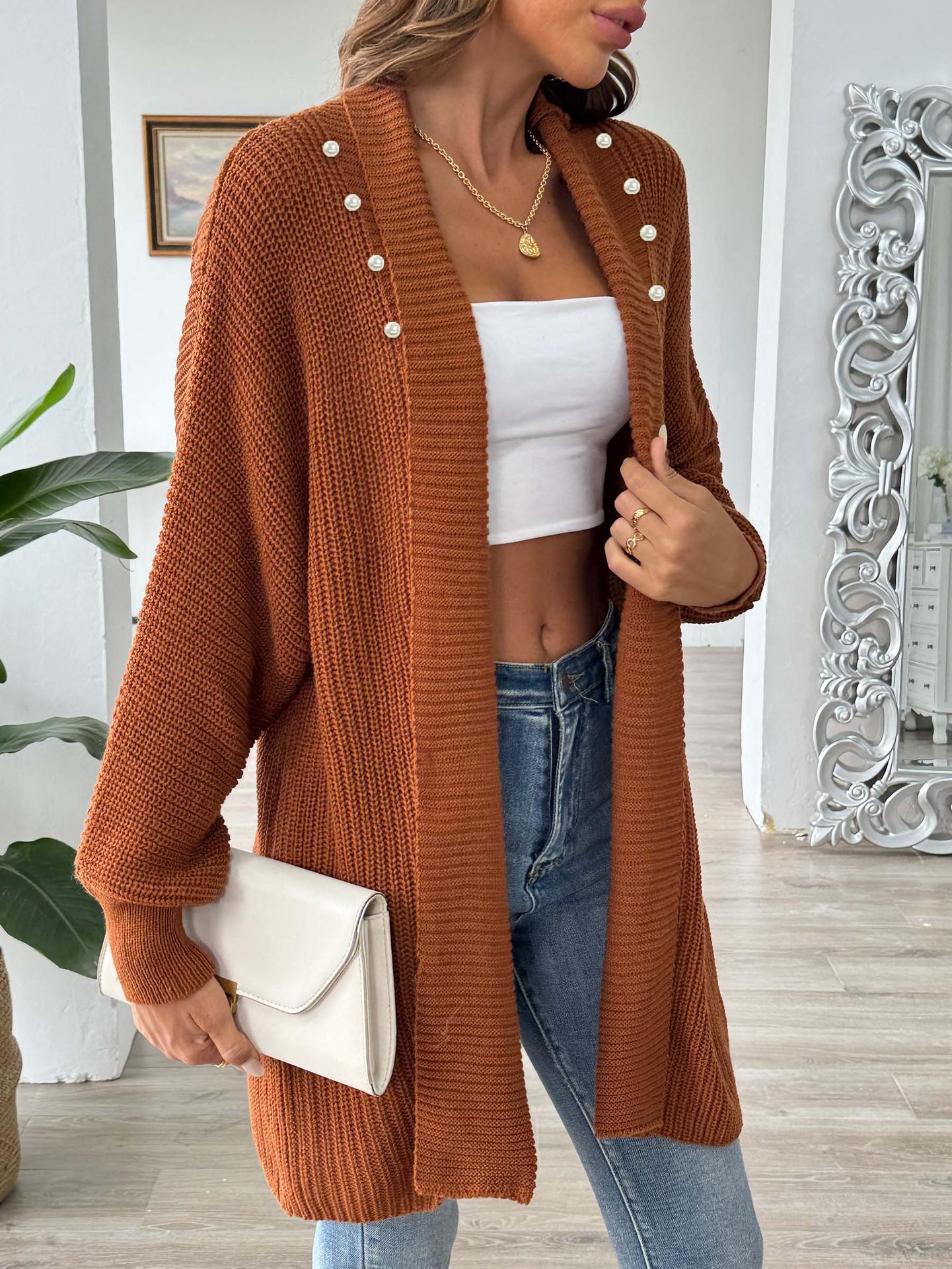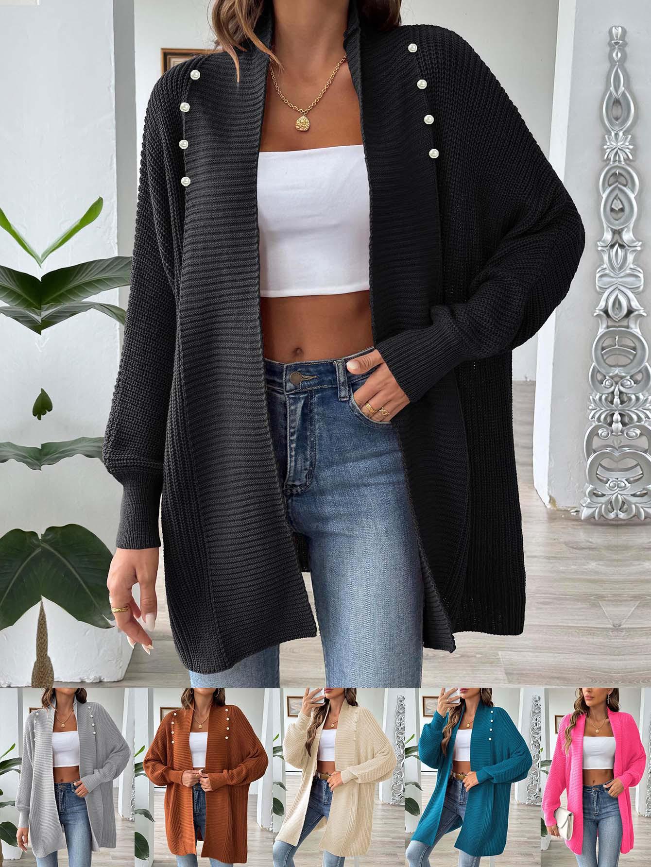 Abrigo Nuevo de Otoño e Invierno para Mujer Transfronterizo Europeo y Americano para Mujer Cárdigan de Punto Suelto Sencillo y a la Moda con Cuentas de Perlas
