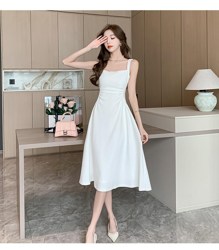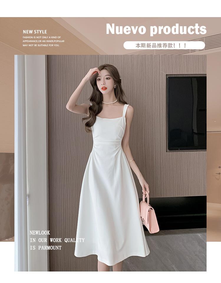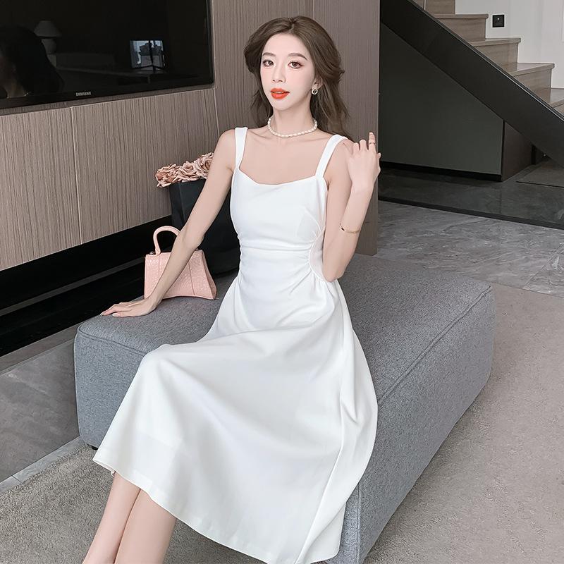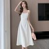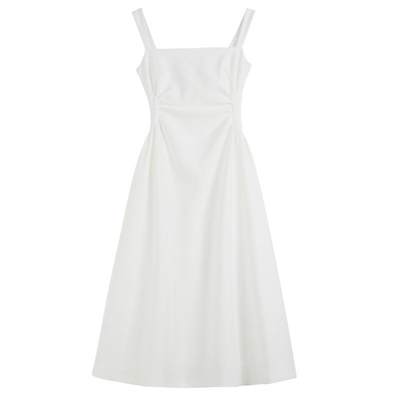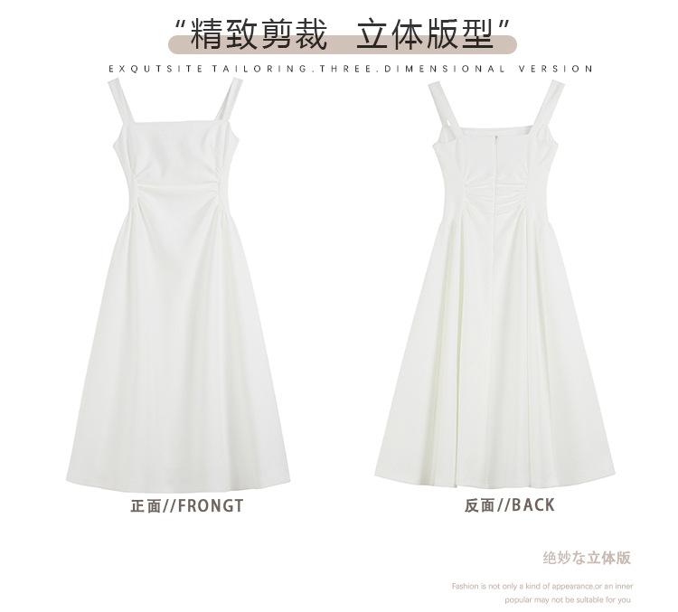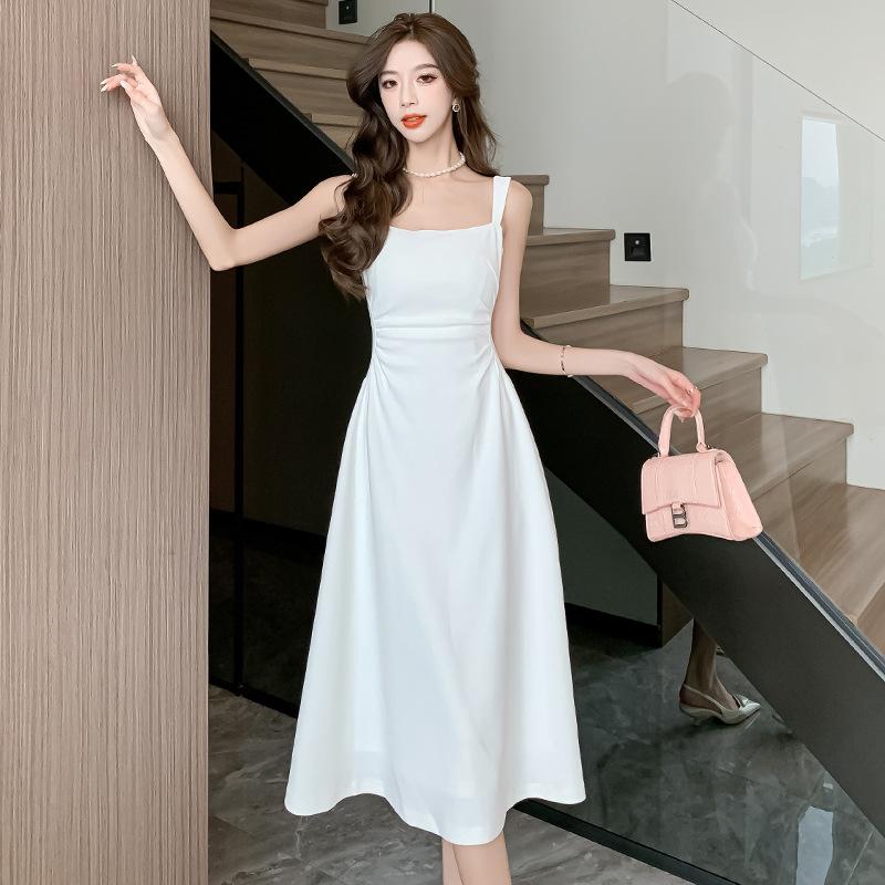 Vestido Blanco de Tirantes Estilo Francés Suave para Mujer 2024 Verano Nueva Moda Cuello Cuadrado Cintura Nicho Falda Larga