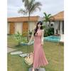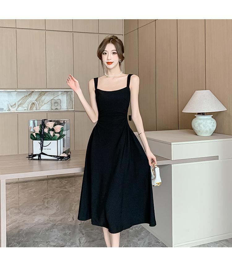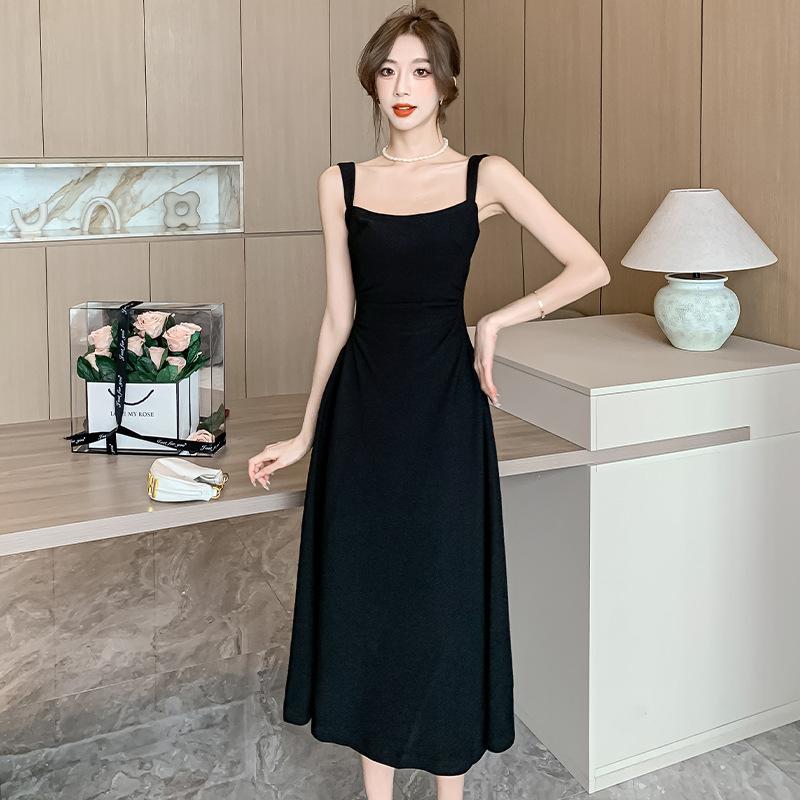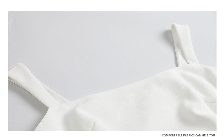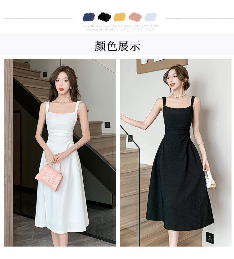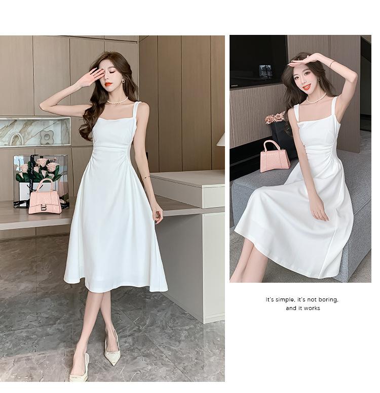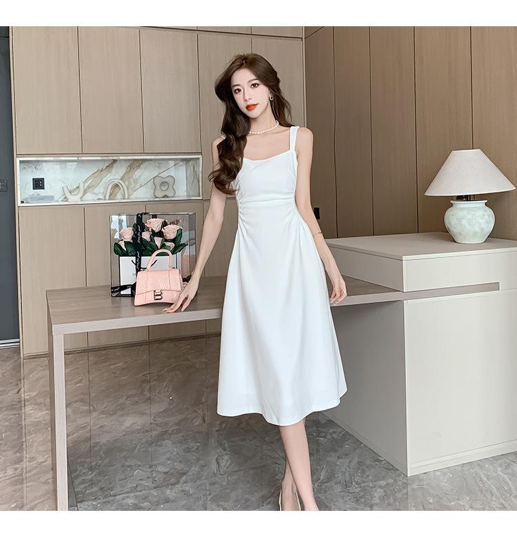 Vestido Blanco de Tirantes Estilo Francés Suave para Mujer 2024 Verano Nueva Moda Cuello Cuadrado Cintura Nicho Falda Larga