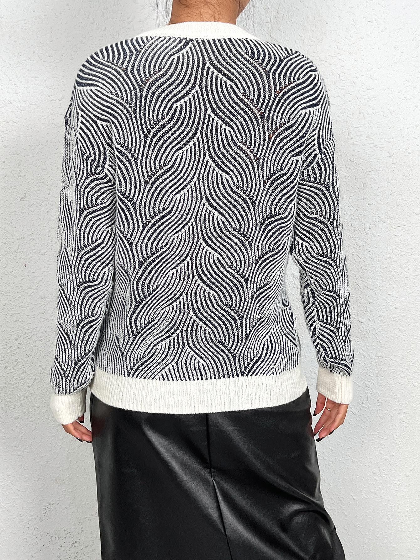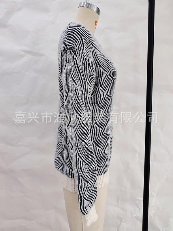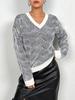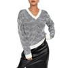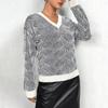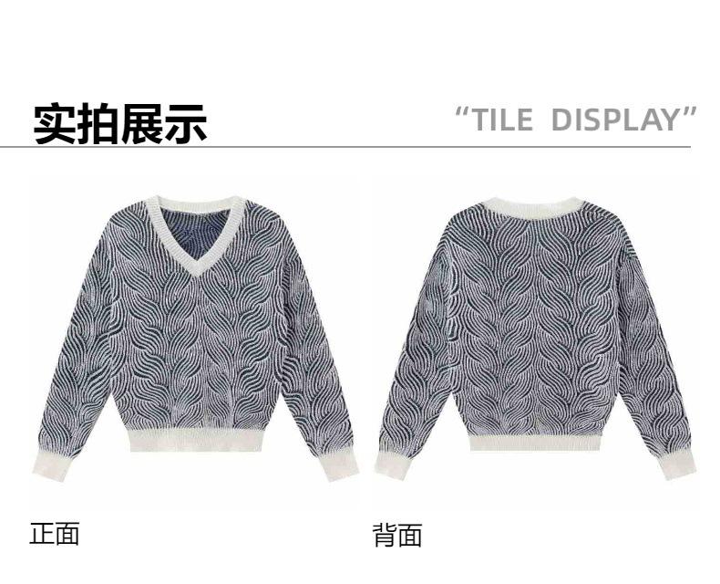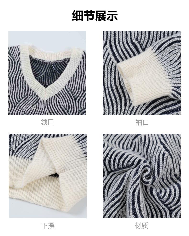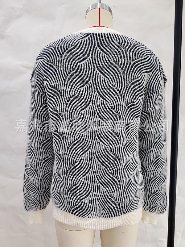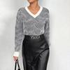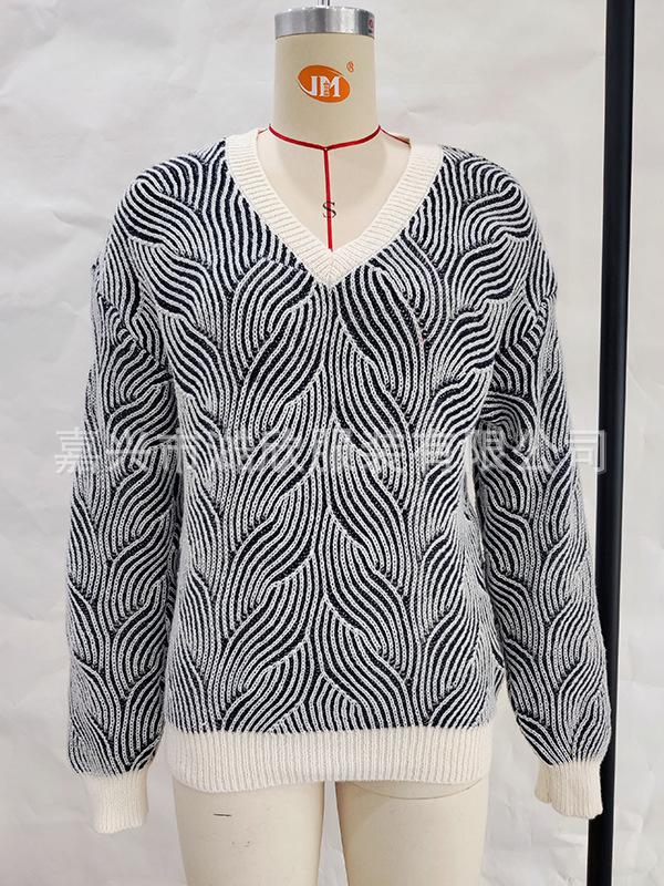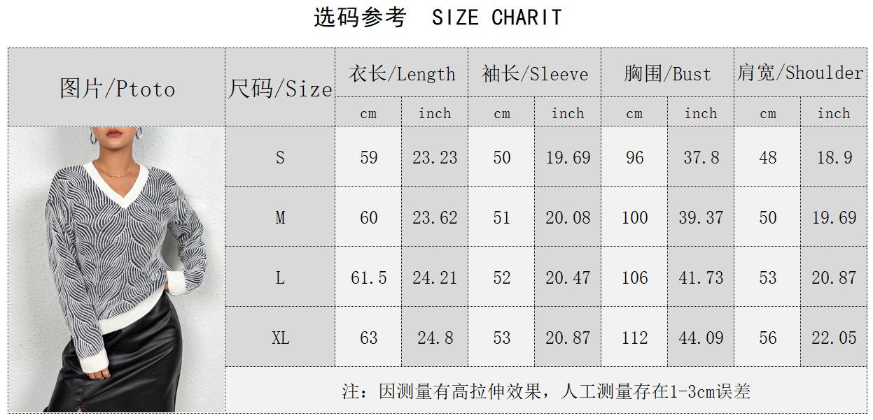 Suéter de punto fino con cuello en V y bordes blancos para mujer, estilo europeo y americano, con estampado geométrico de comercio exterior transfronterizo, Jacquard