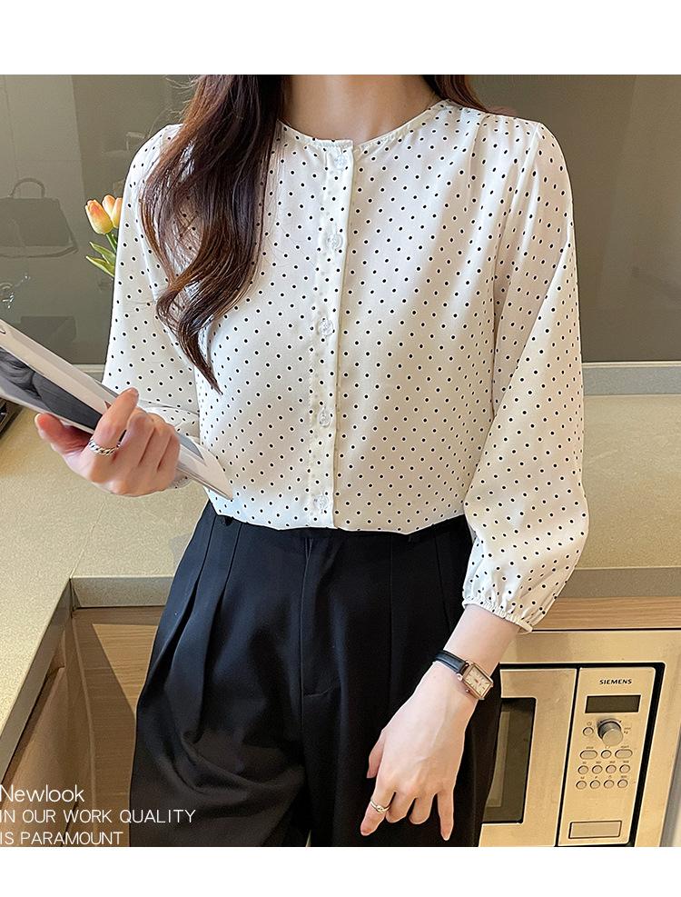 Hermosa camisa de gasa francesa de verano para mujer, nueva versión coreana de blusa informal holgada con ondas.