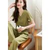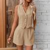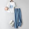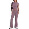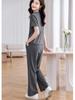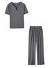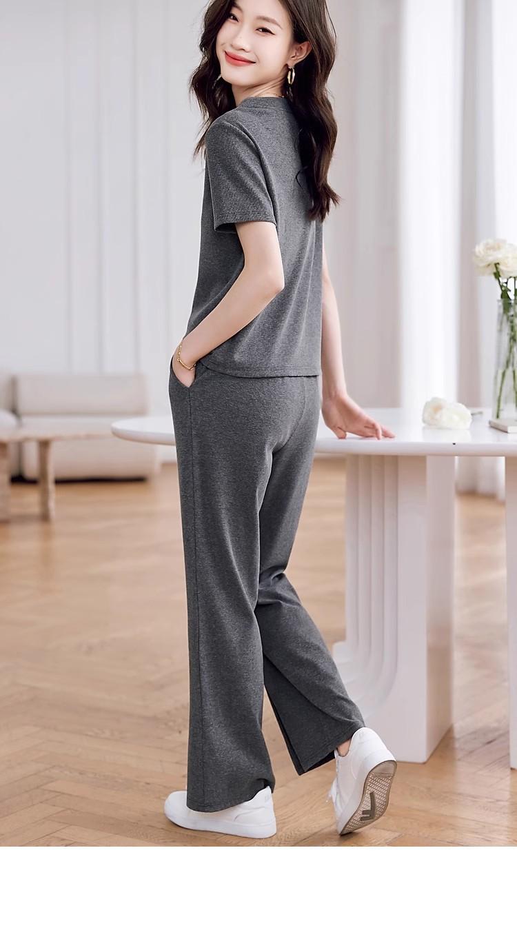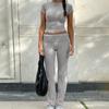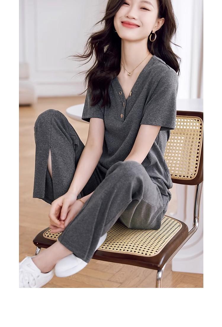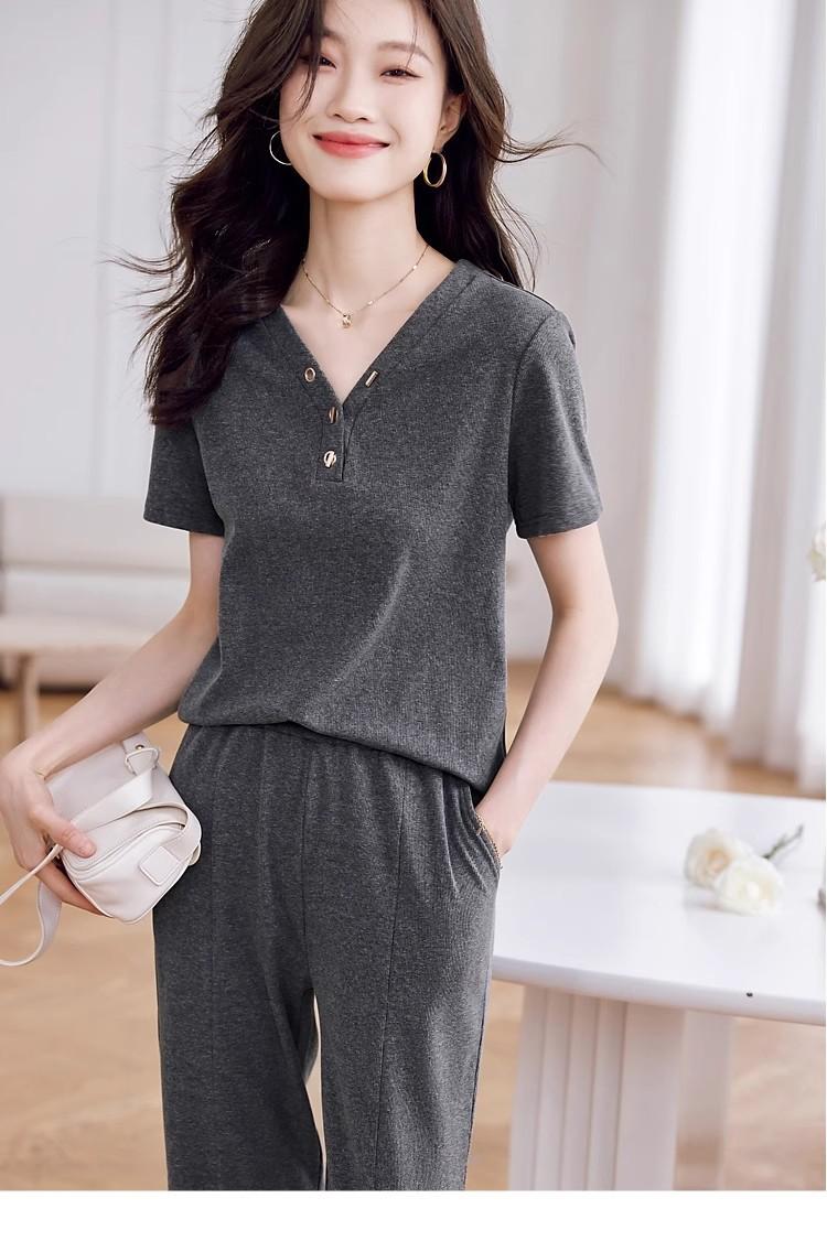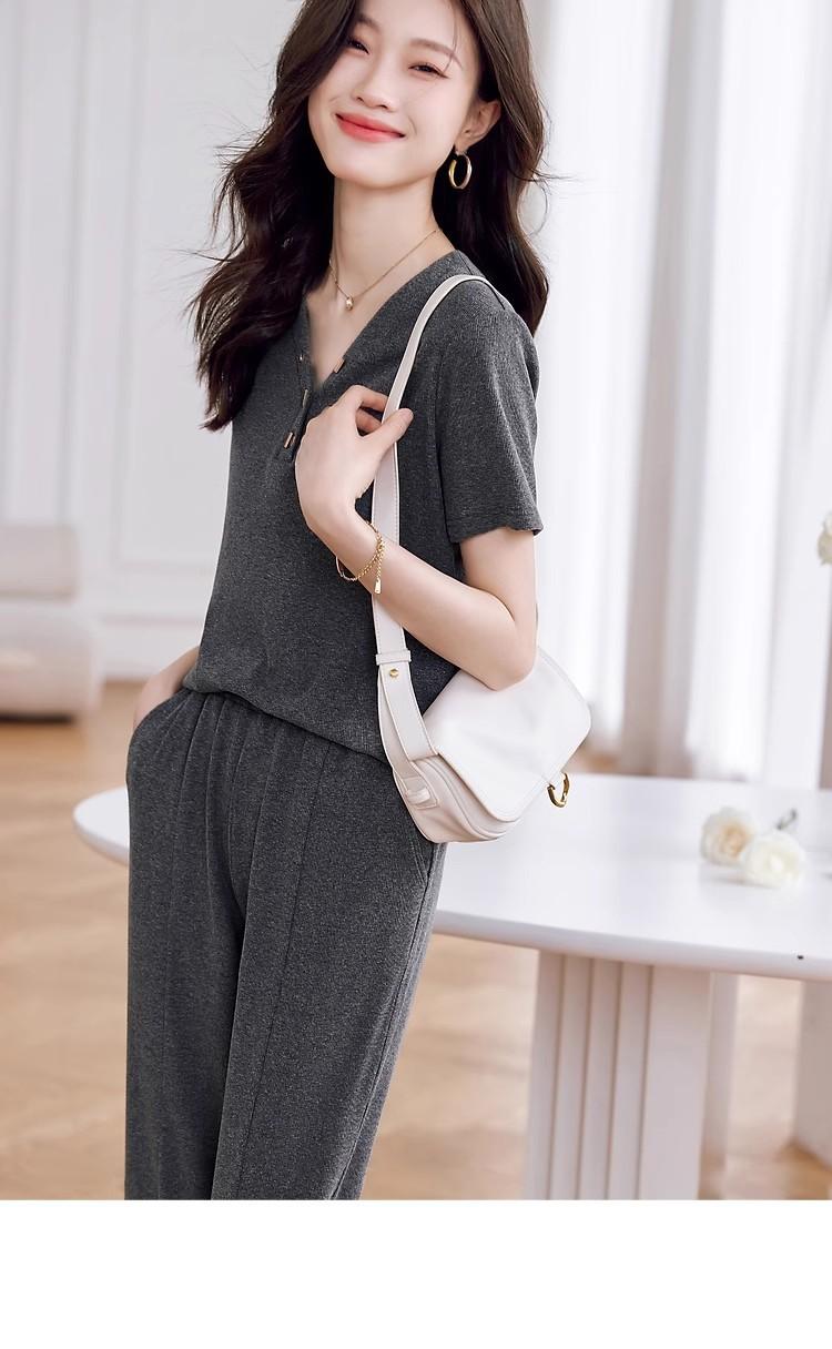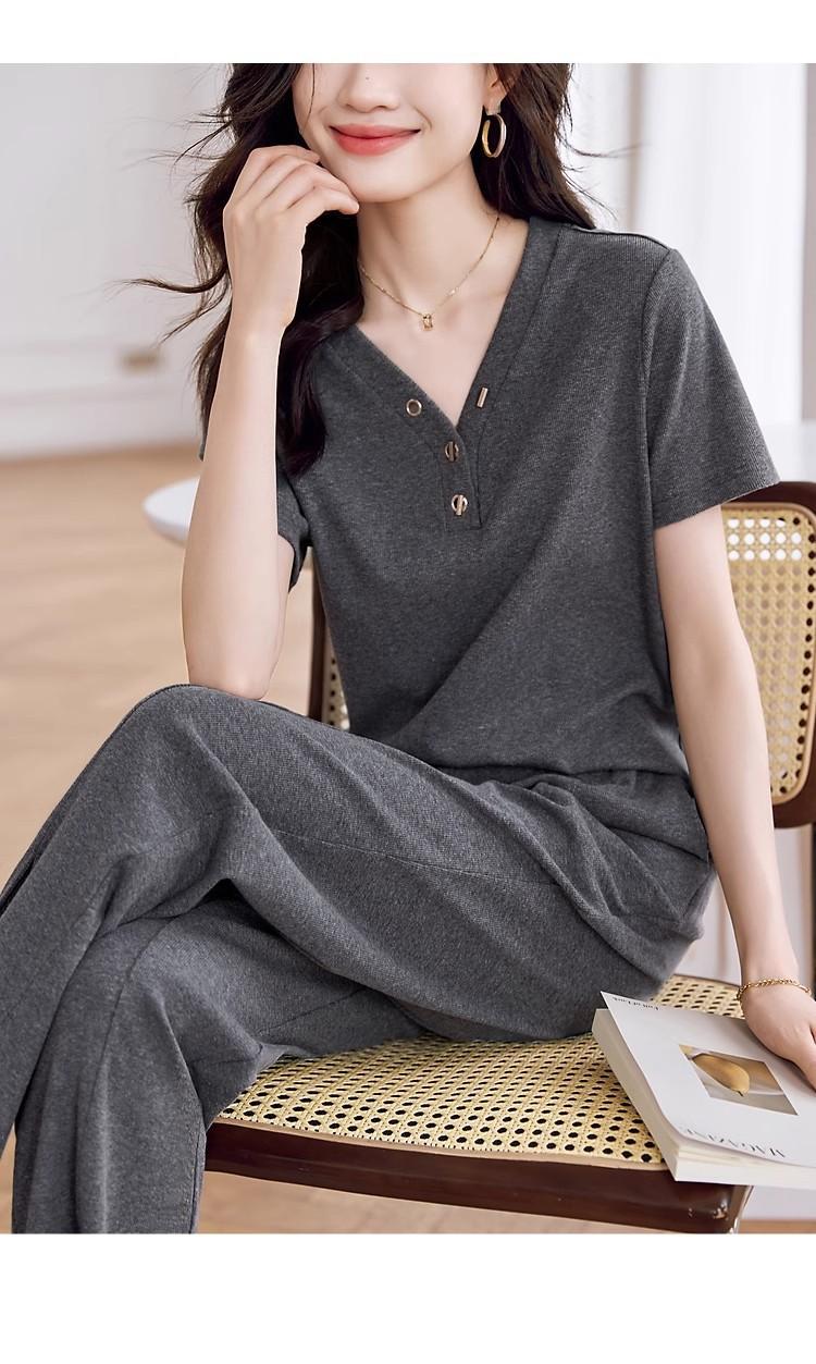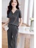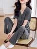 Conjunto de dos piezas de camiseta y pantalones con cuello en V elásticos, novedad de verano 23, traje informal de moda para mujer