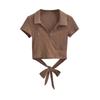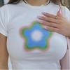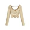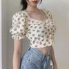 Camiseta de verano para mujer con diseño corto, escote cuadrado, manga corta, encaje floral y mangas abullonadas