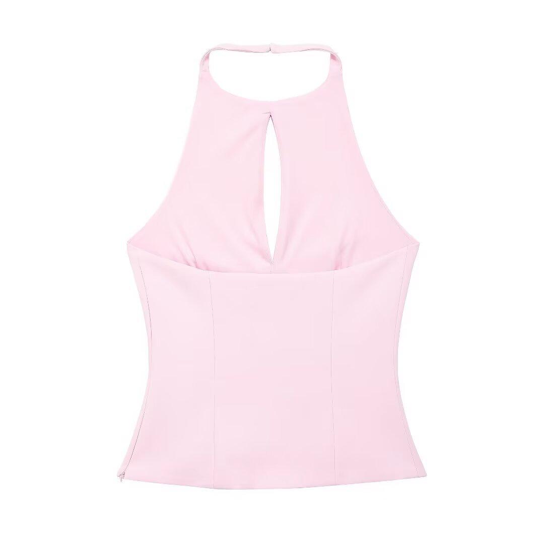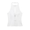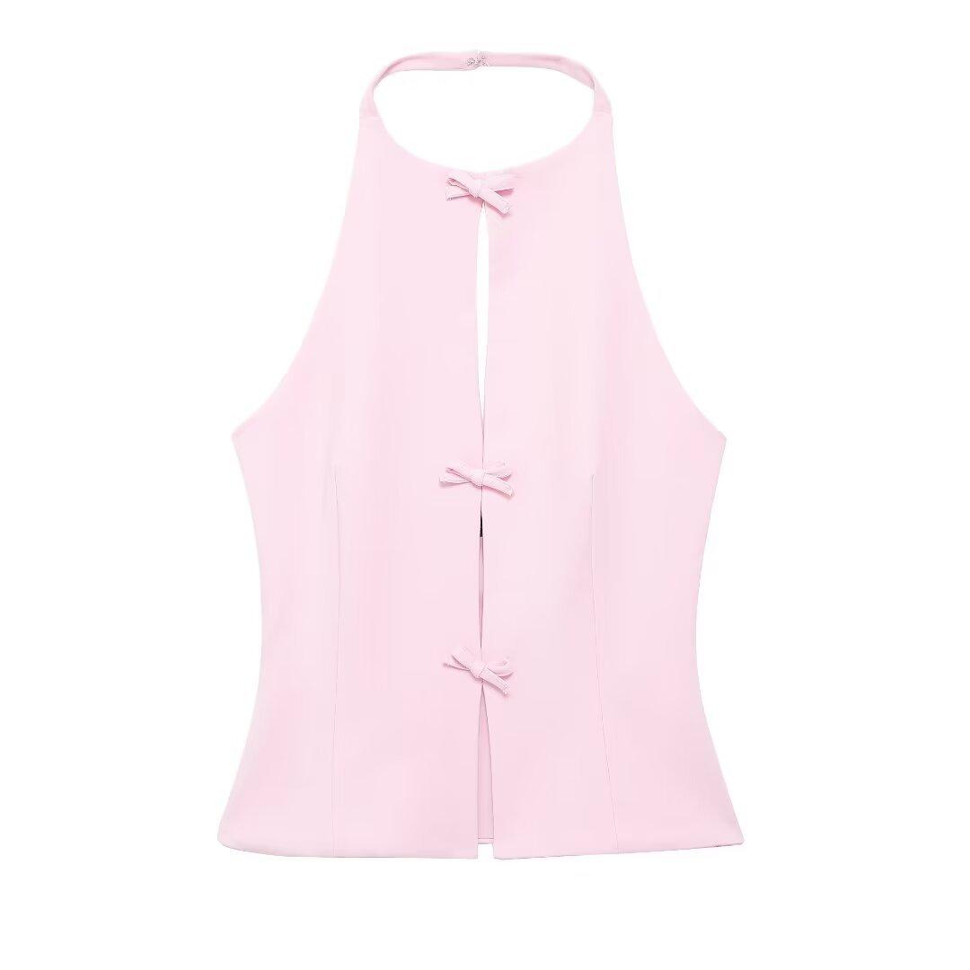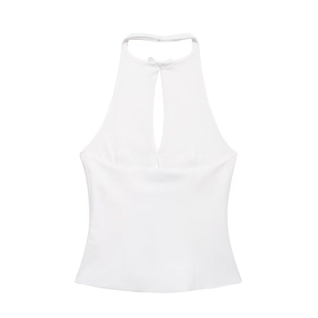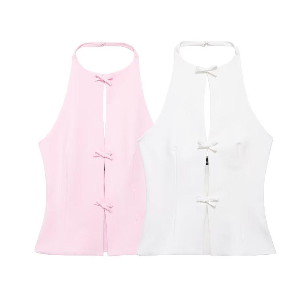 Ropa de Mujer Estilo Europeo y Americano Exportación Verano Nuevo Estilo Halter con Decoración de Lazo Color Puro Moda Slim Sexy Top sin Espalda
