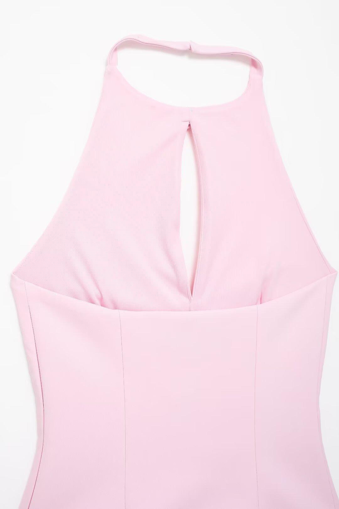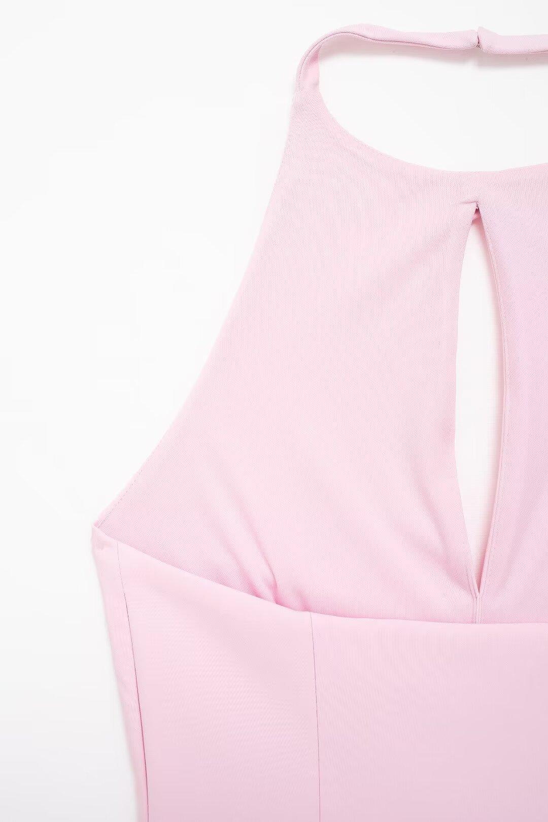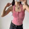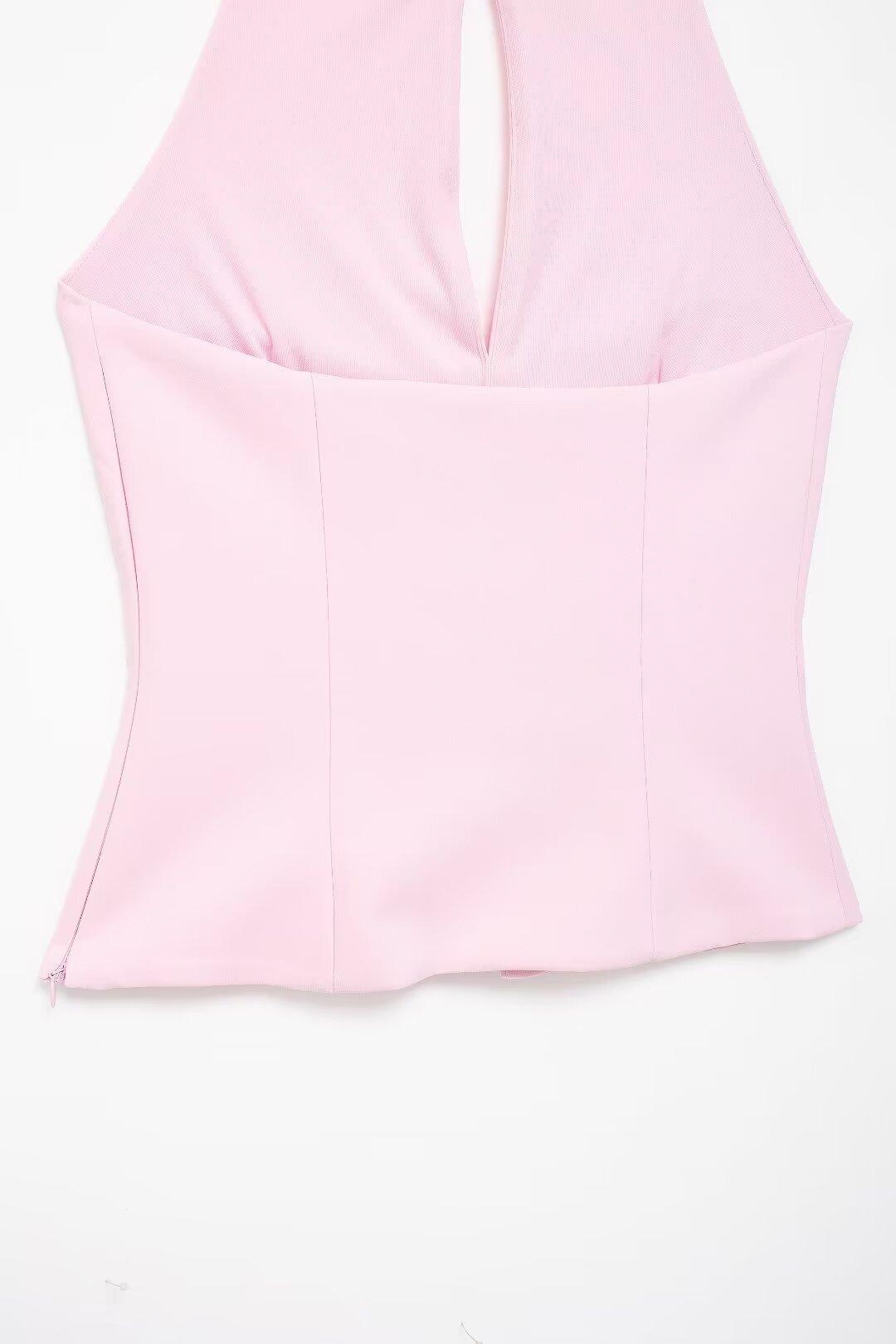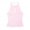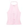 Ropa de Mujer Estilo Europeo y Americano Exportación Verano Nuevo Estilo Halter con Decoración de Lazo Color Puro Moda Slim Sexy Top sin Espalda