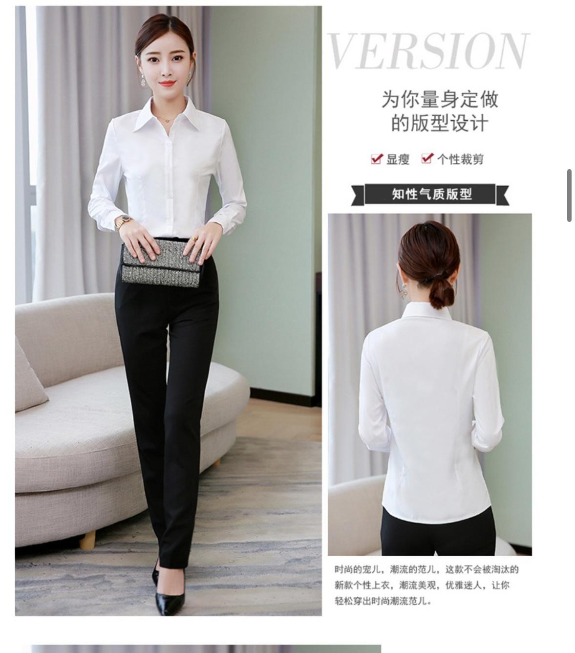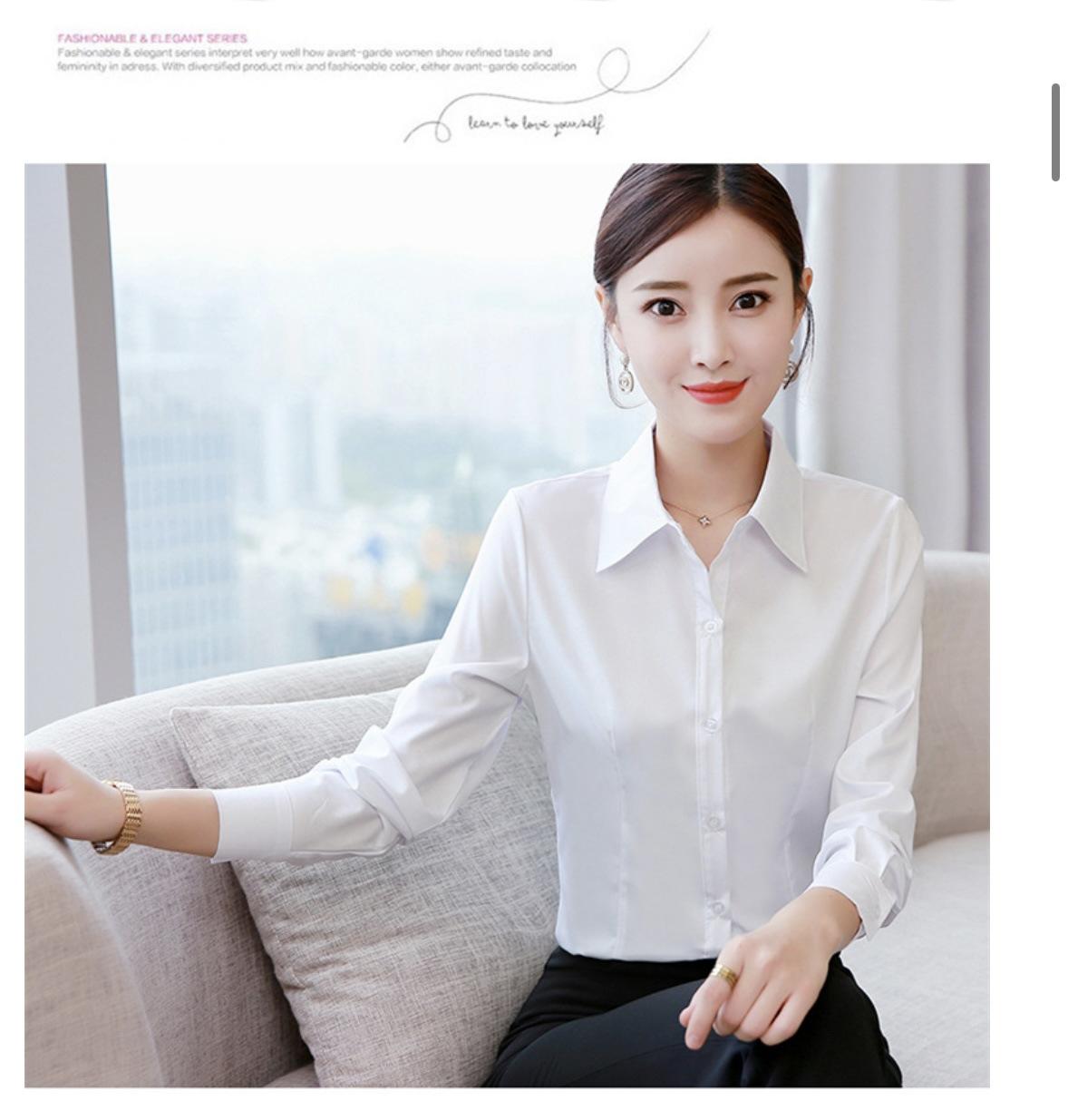 Camisa blanca de manga larga de alta elasticidad para mujer Camisa blanca de manga larga de corte entallado para mujer de talla grande Camisa para mujer