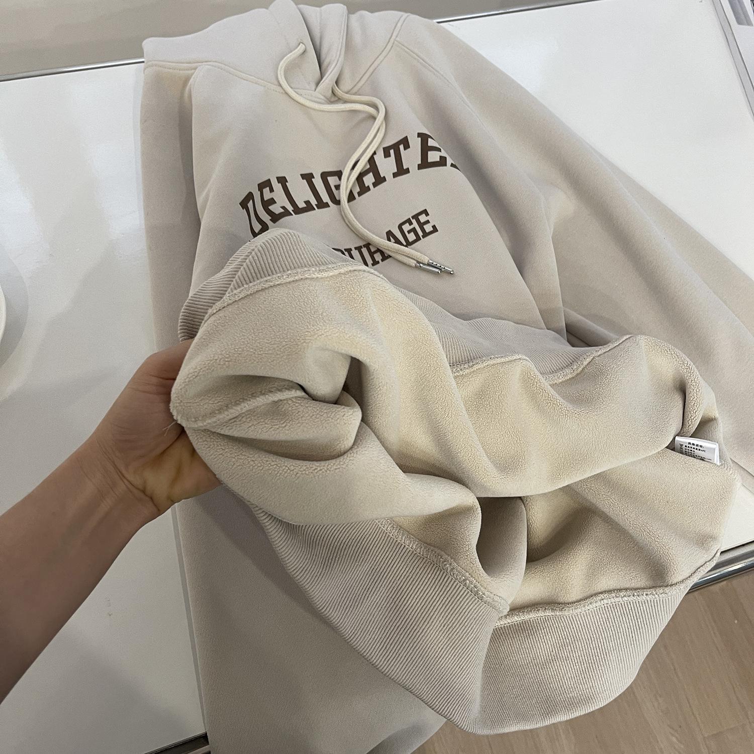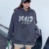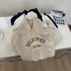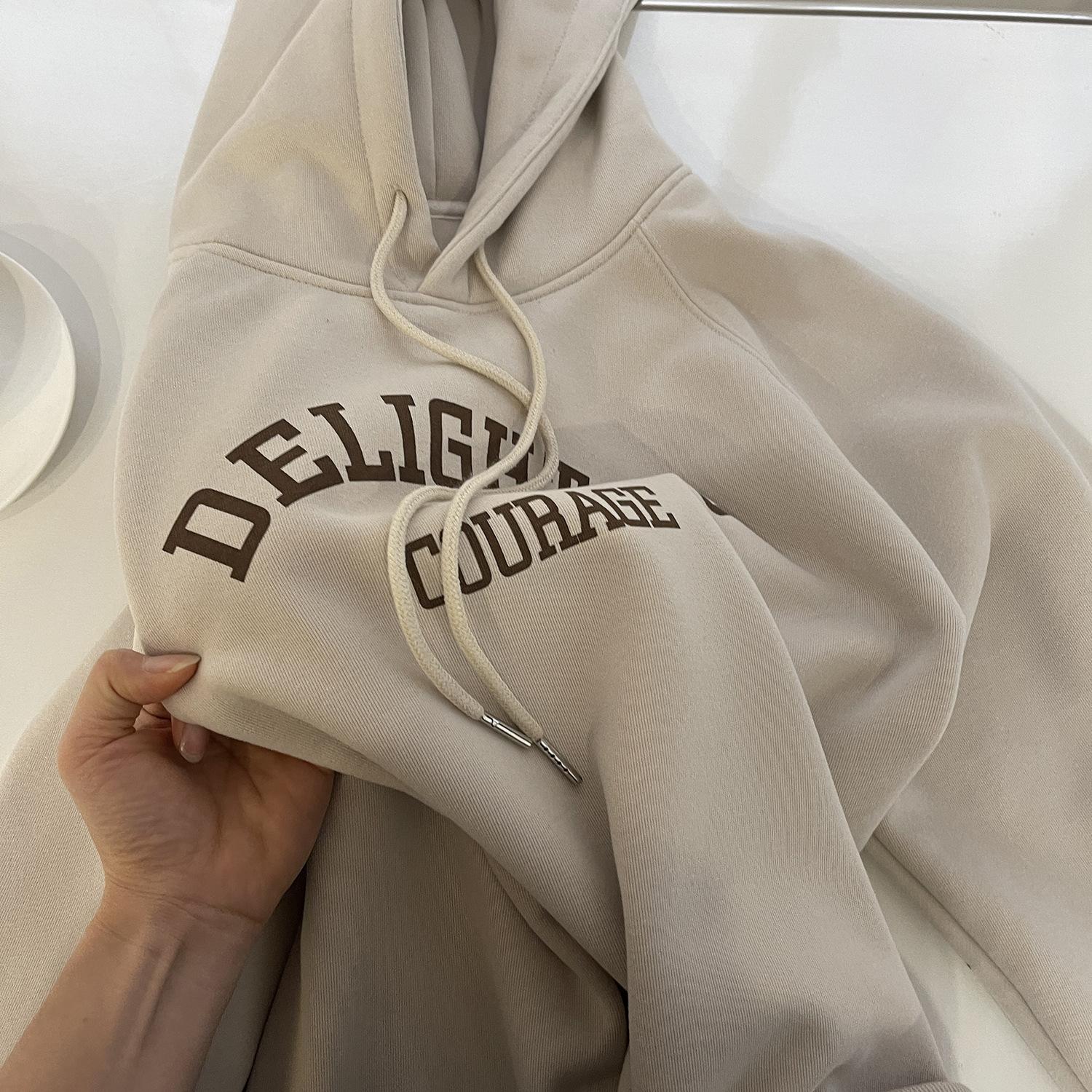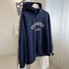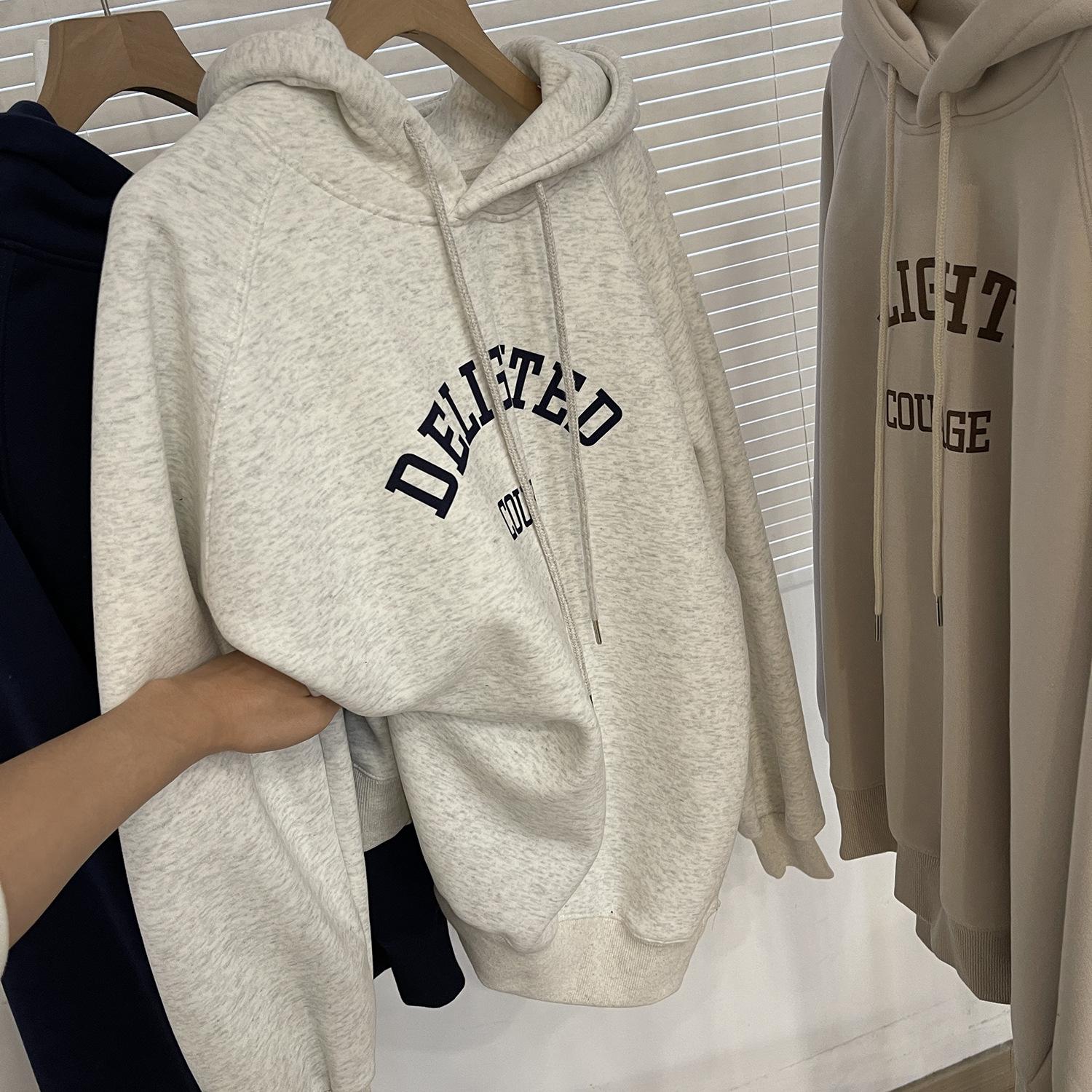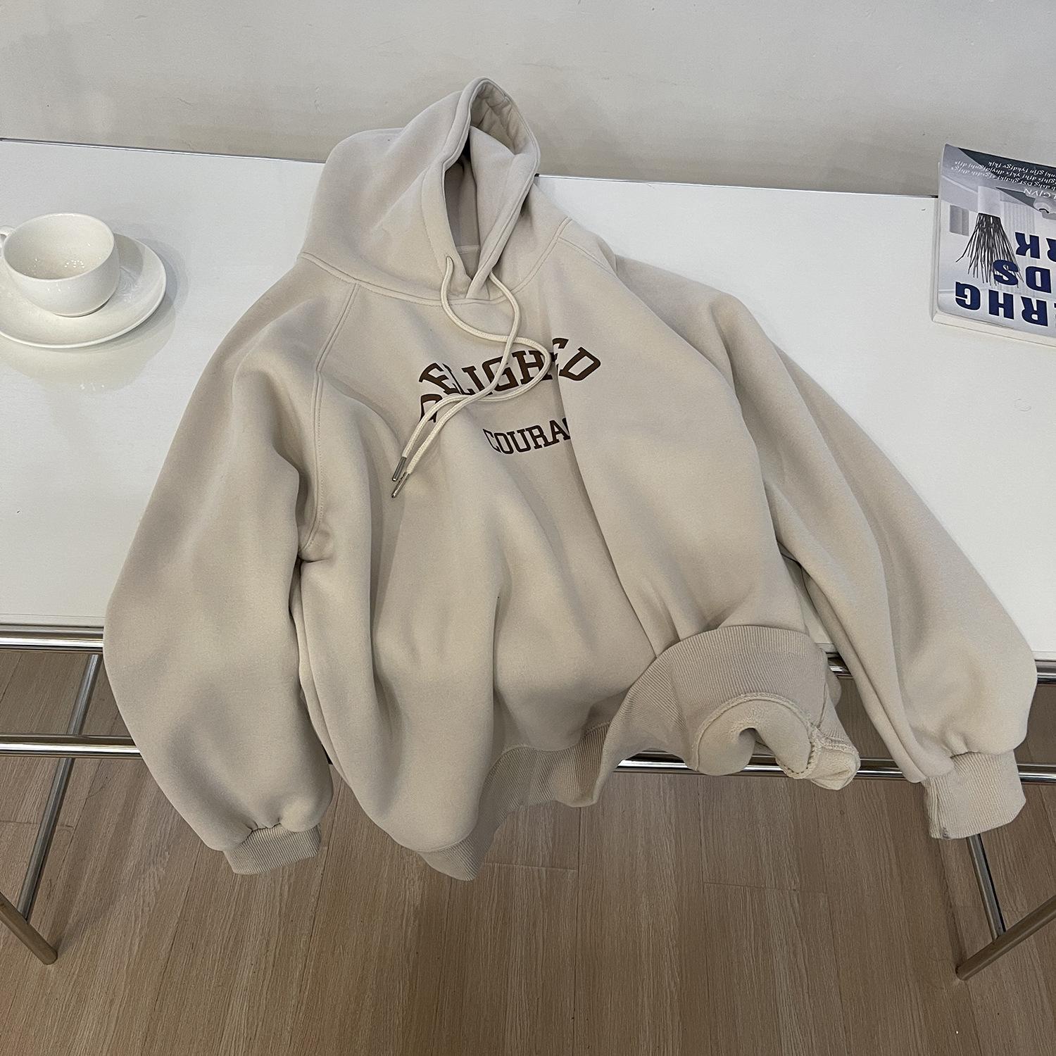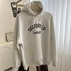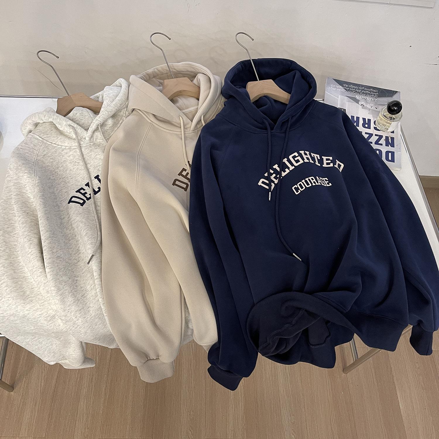 Suéter con capucha y estampado de letras de estilo coreano para mujer, abrigo holgado y grueso con forro polar para estudiantes de otoño e invierno