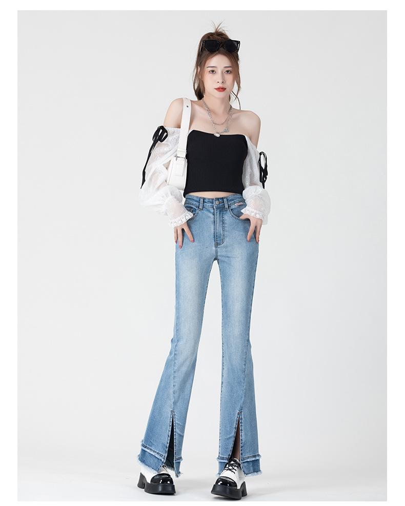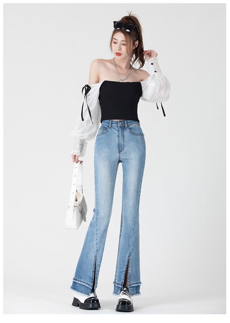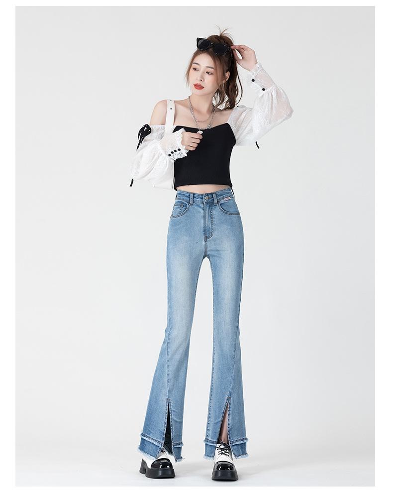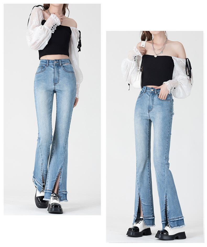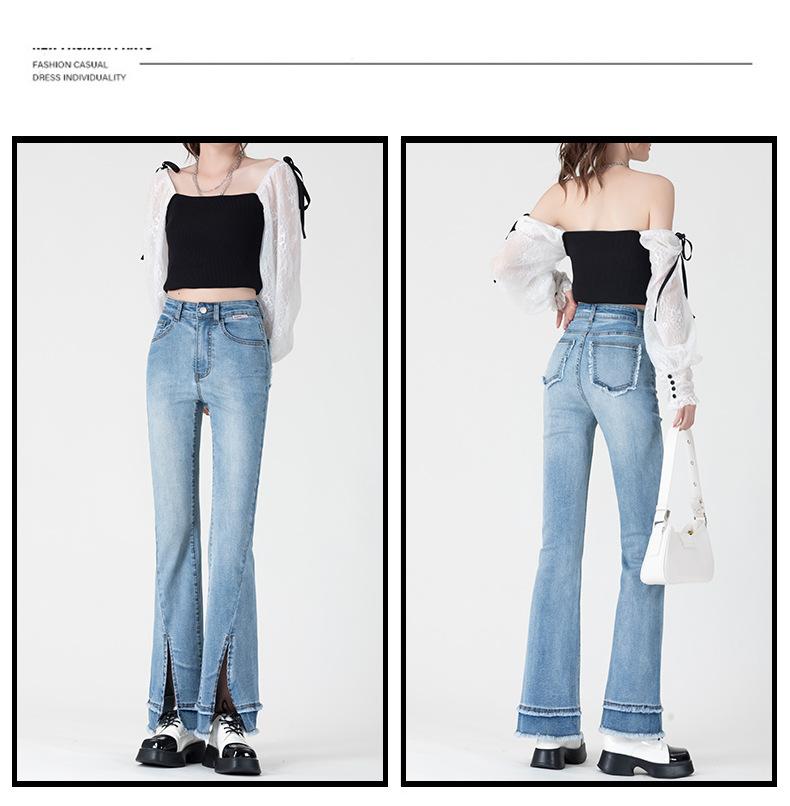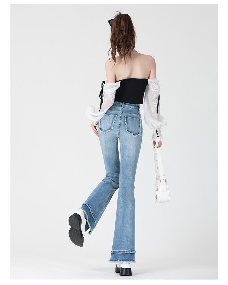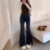 Jeans Retro Acampanados Azules para Mujer Verano 2025 Nuevo Estilo Cintura Alta Pequeña Ajustados Elásticos Bota Ancha