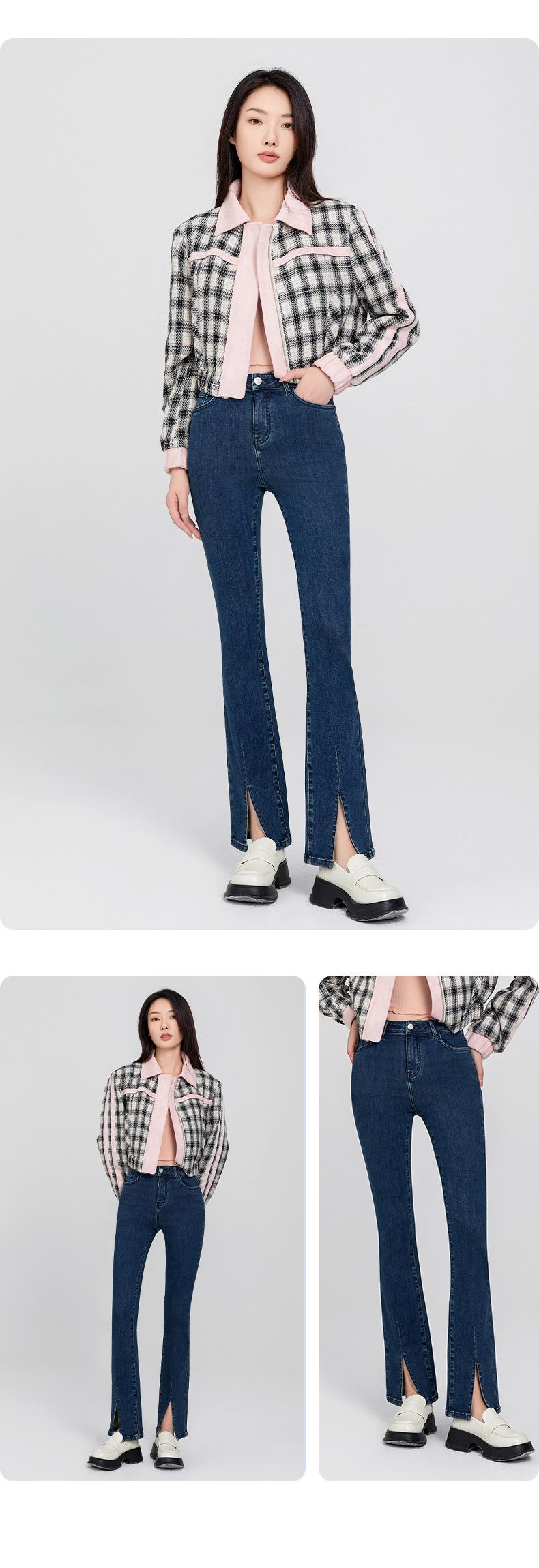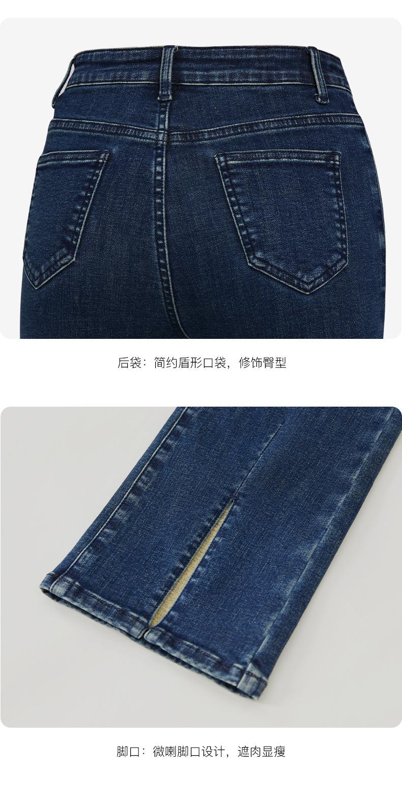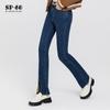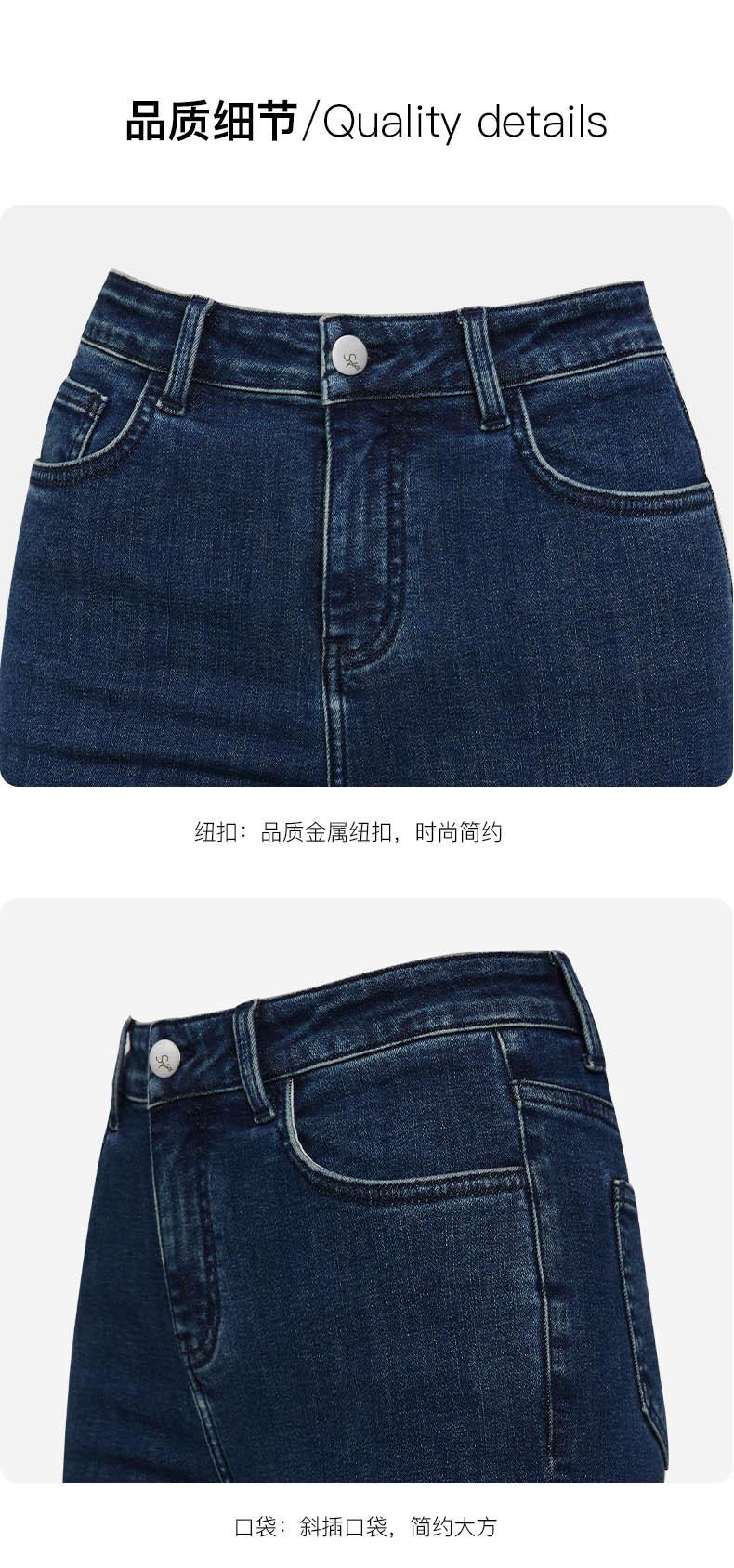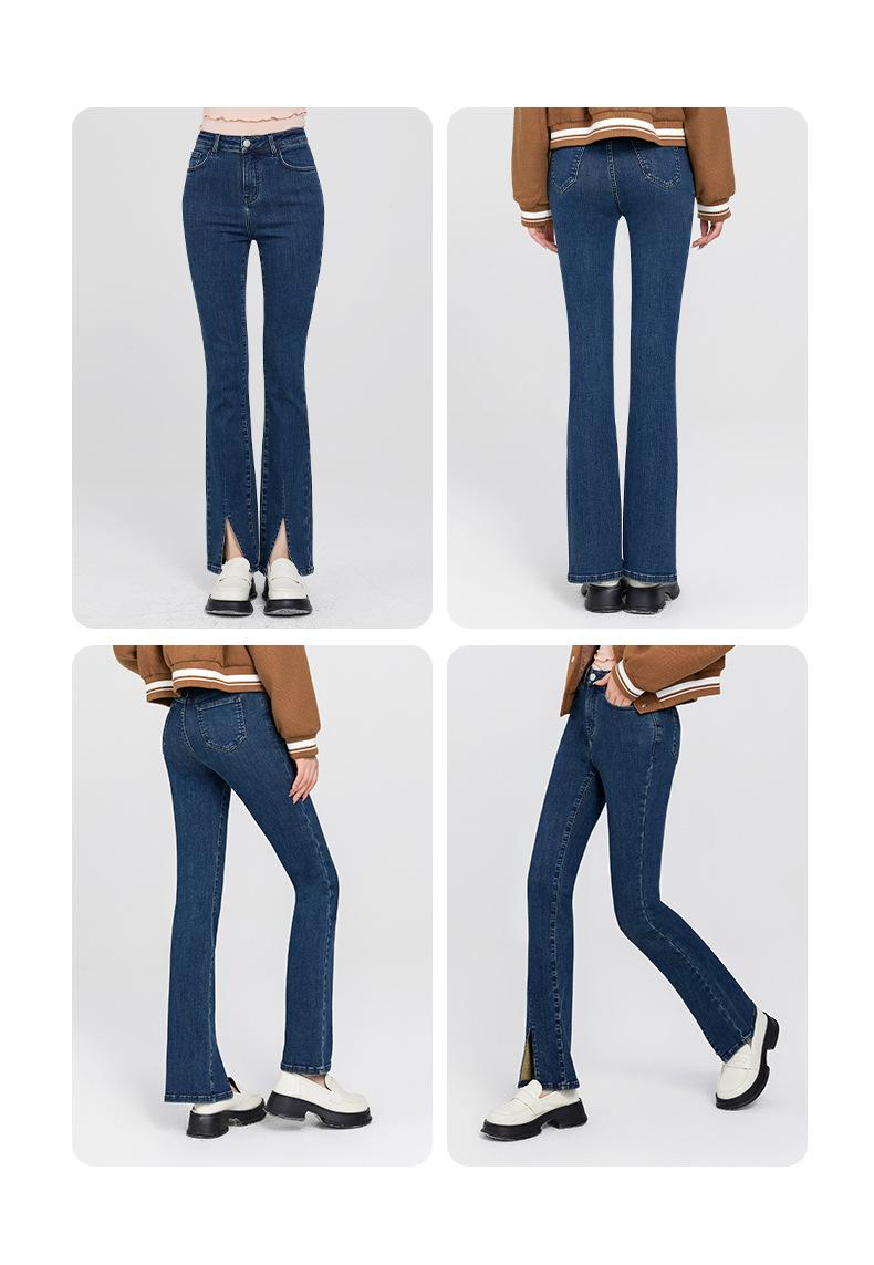 SP68 Otoño Nuevo Un Botón Boca de Pie Abertura Azul Oscuro Jeans Forrados de Felpa K-NZ408