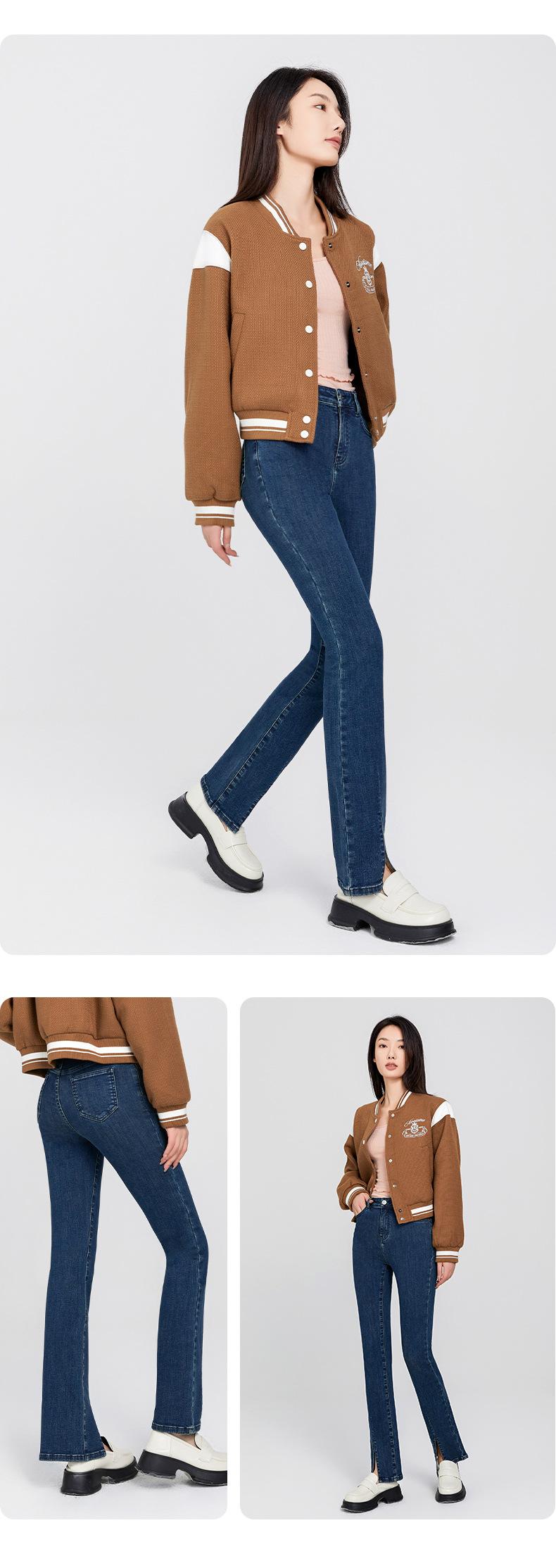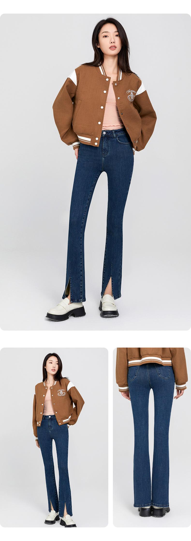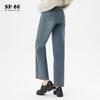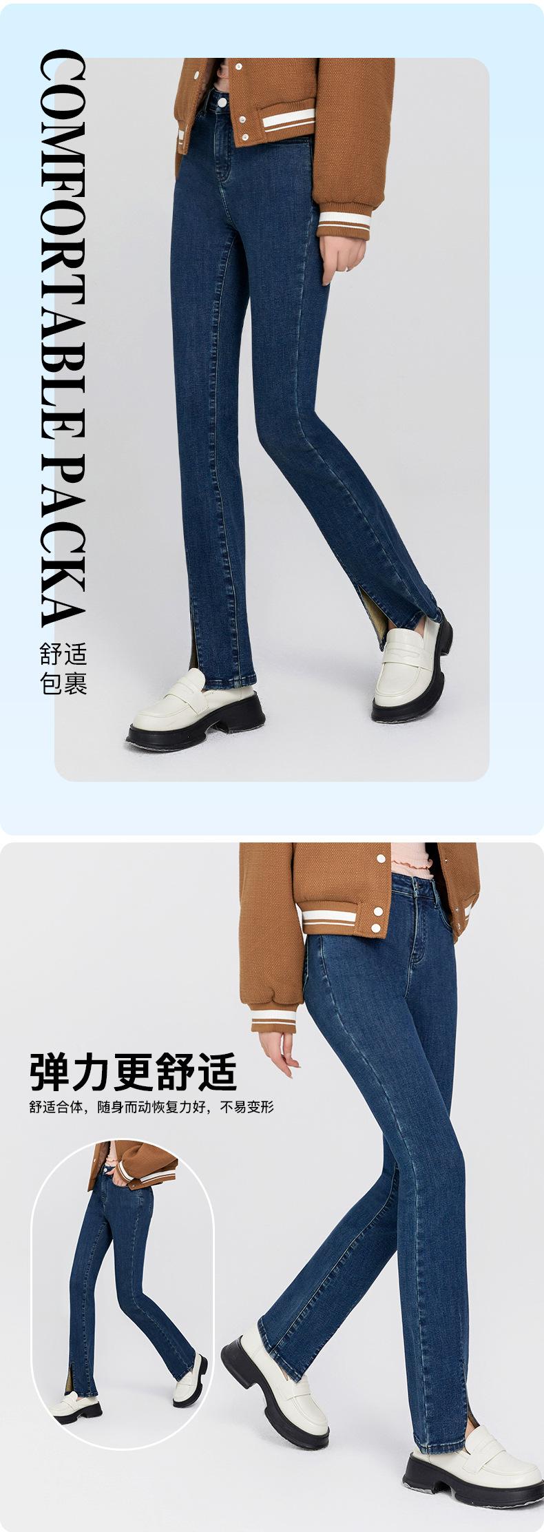 SP68 Otoño Nuevo Un Botón Boca de Pie Abertura Azul Oscuro Jeans Forrados de Felpa K-NZ408