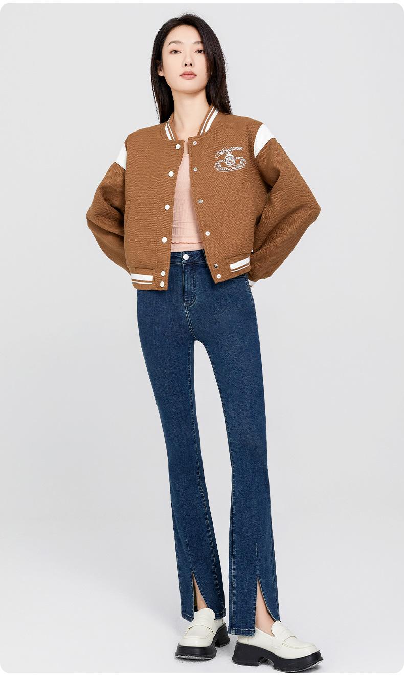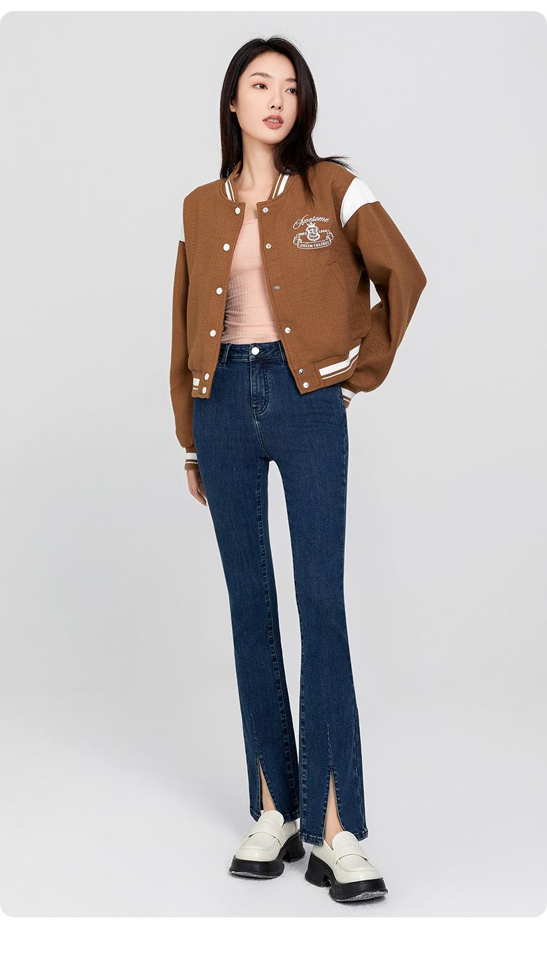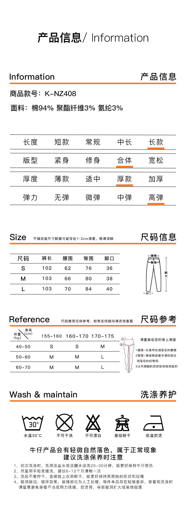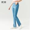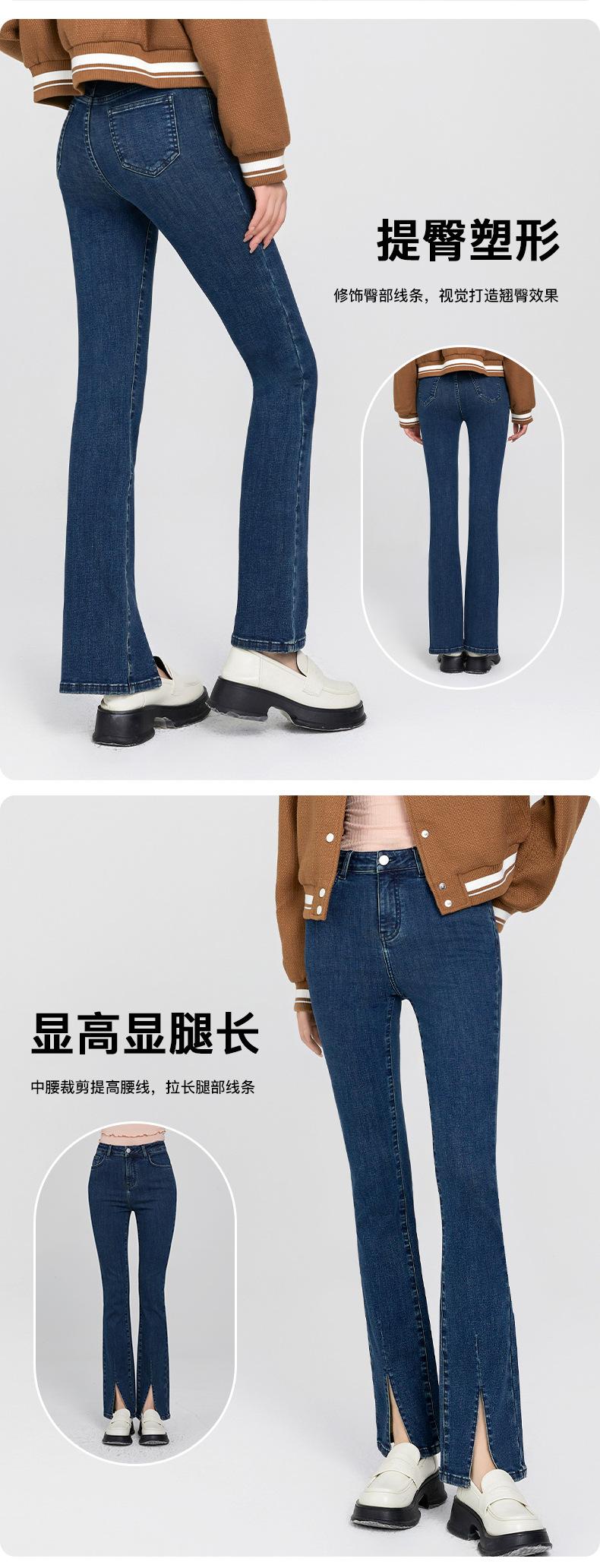 SP68 Otoño Nuevo Un Botón Boca de Pie Abertura Azul Oscuro Jeans Forrados de Felpa K-NZ408