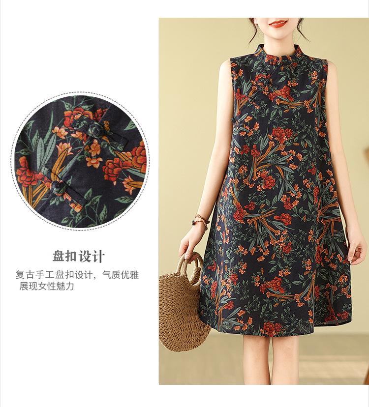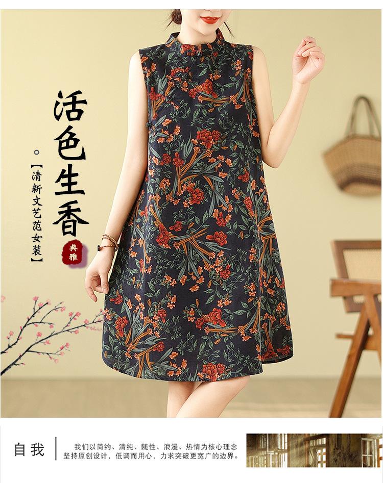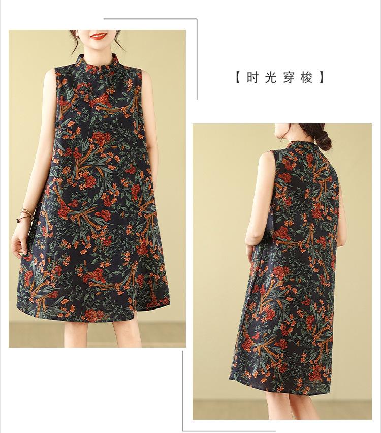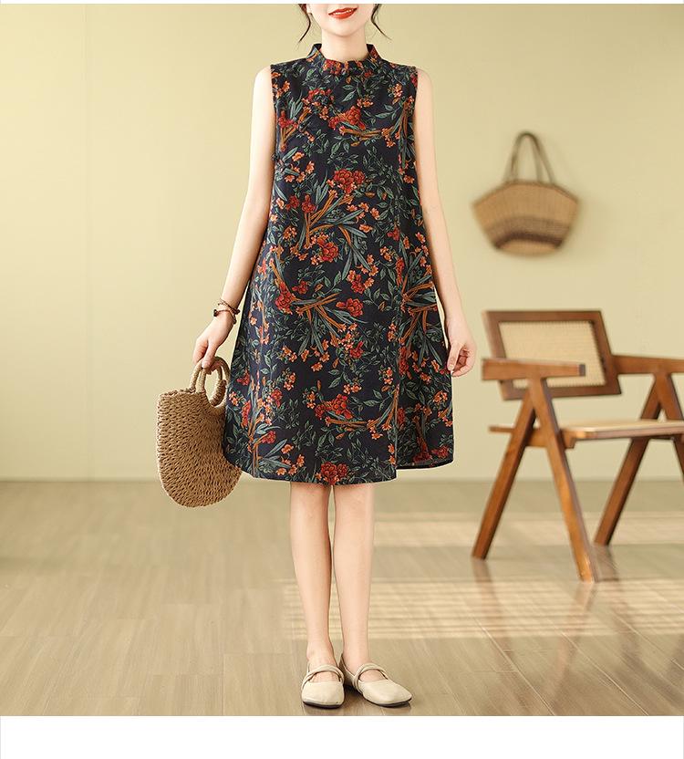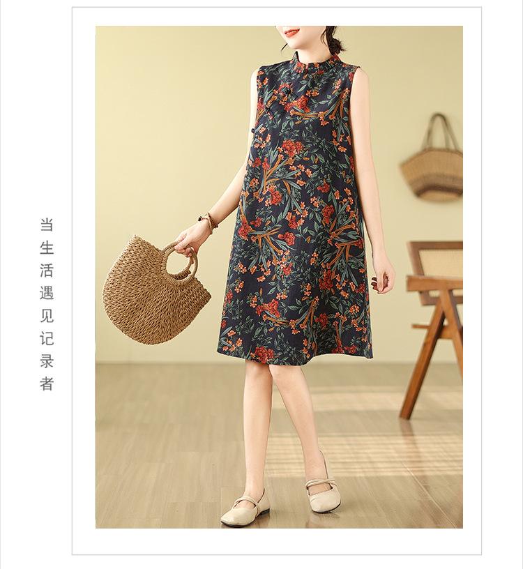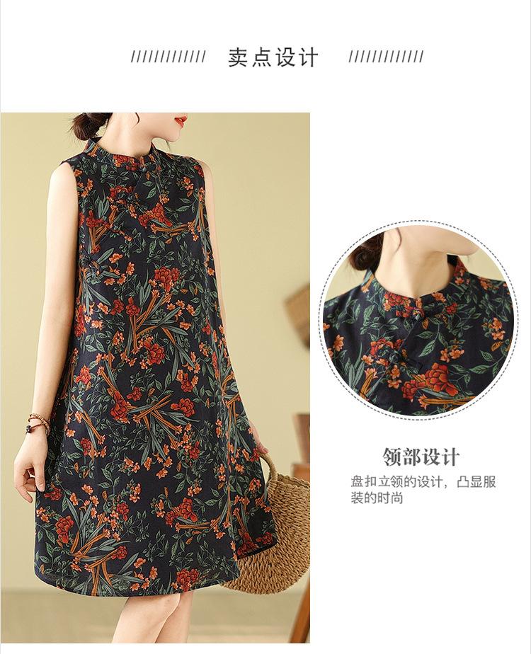 Foto Real de Cheongsam Mejorado de Verano 2025 de Estilo Chino, Vestido Artístico Retro Suelto de Largo Medio para Mujer